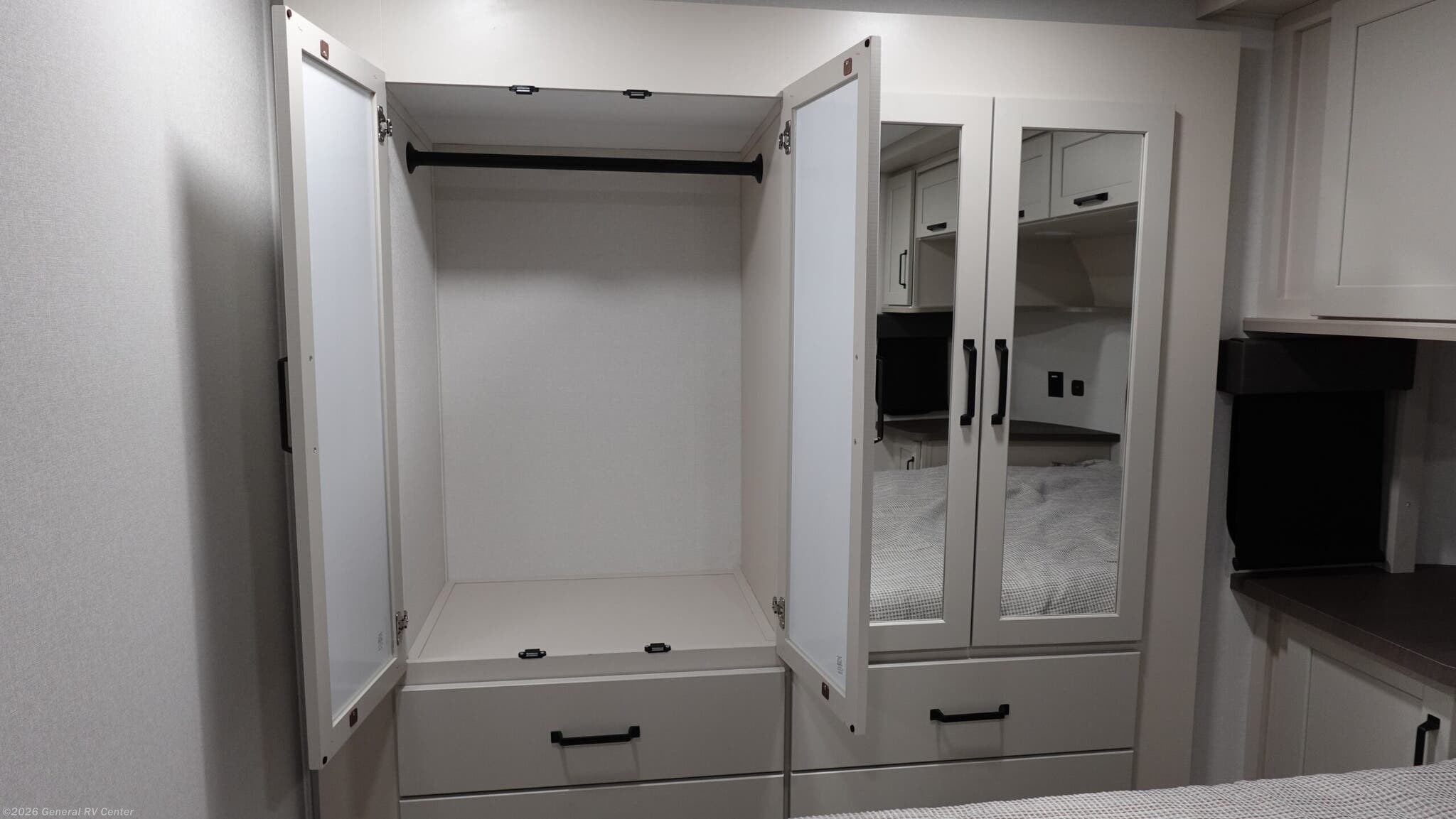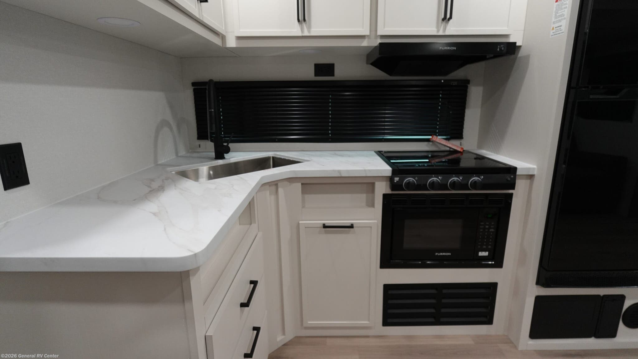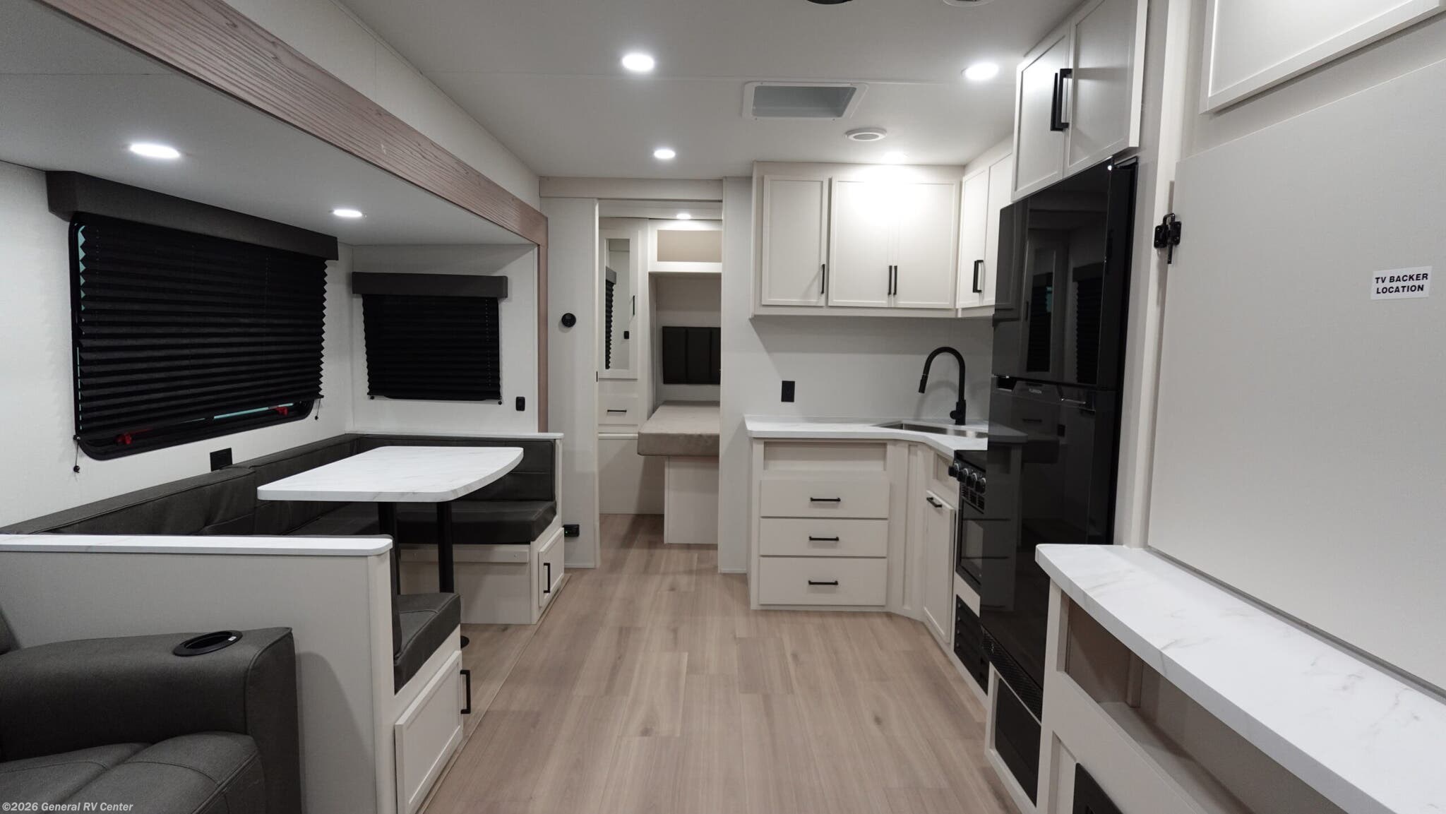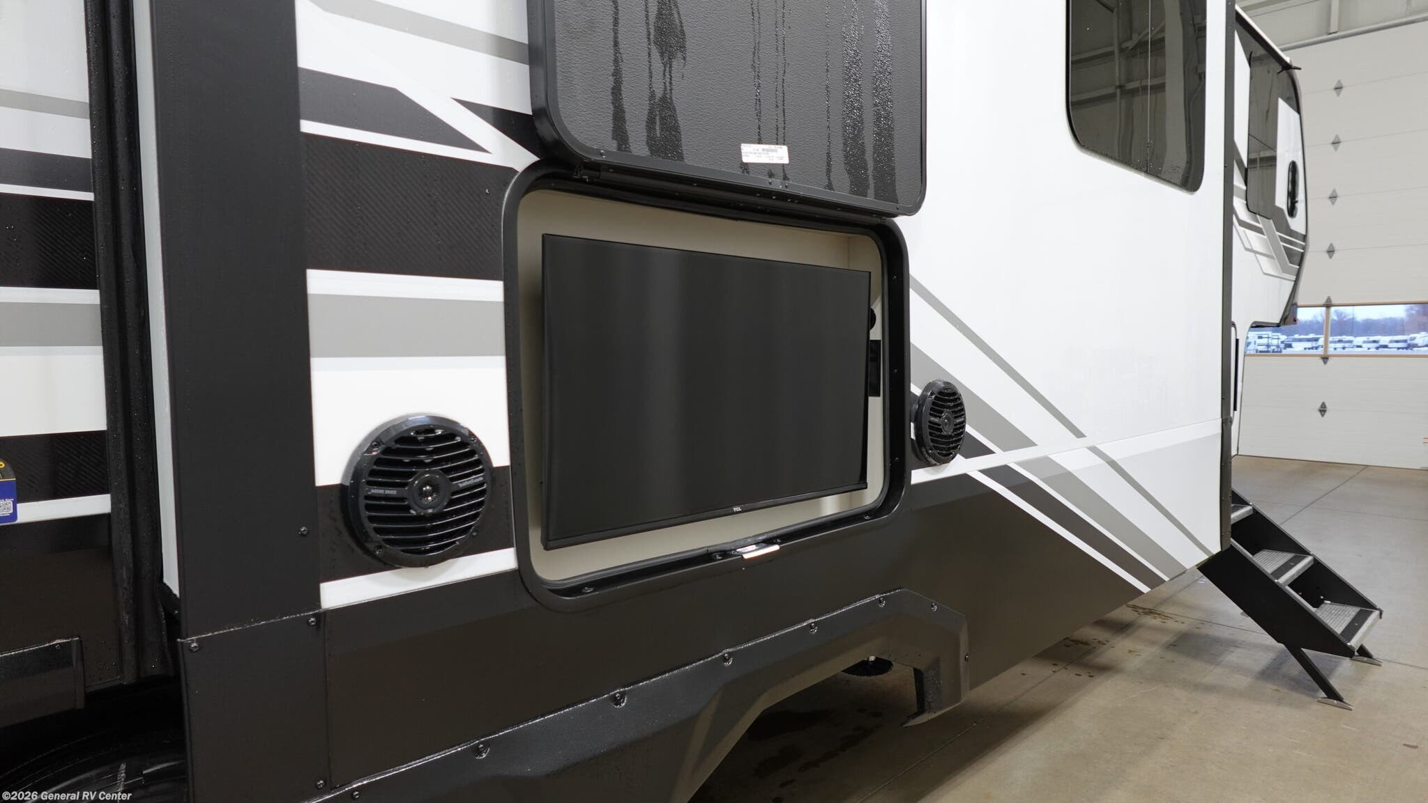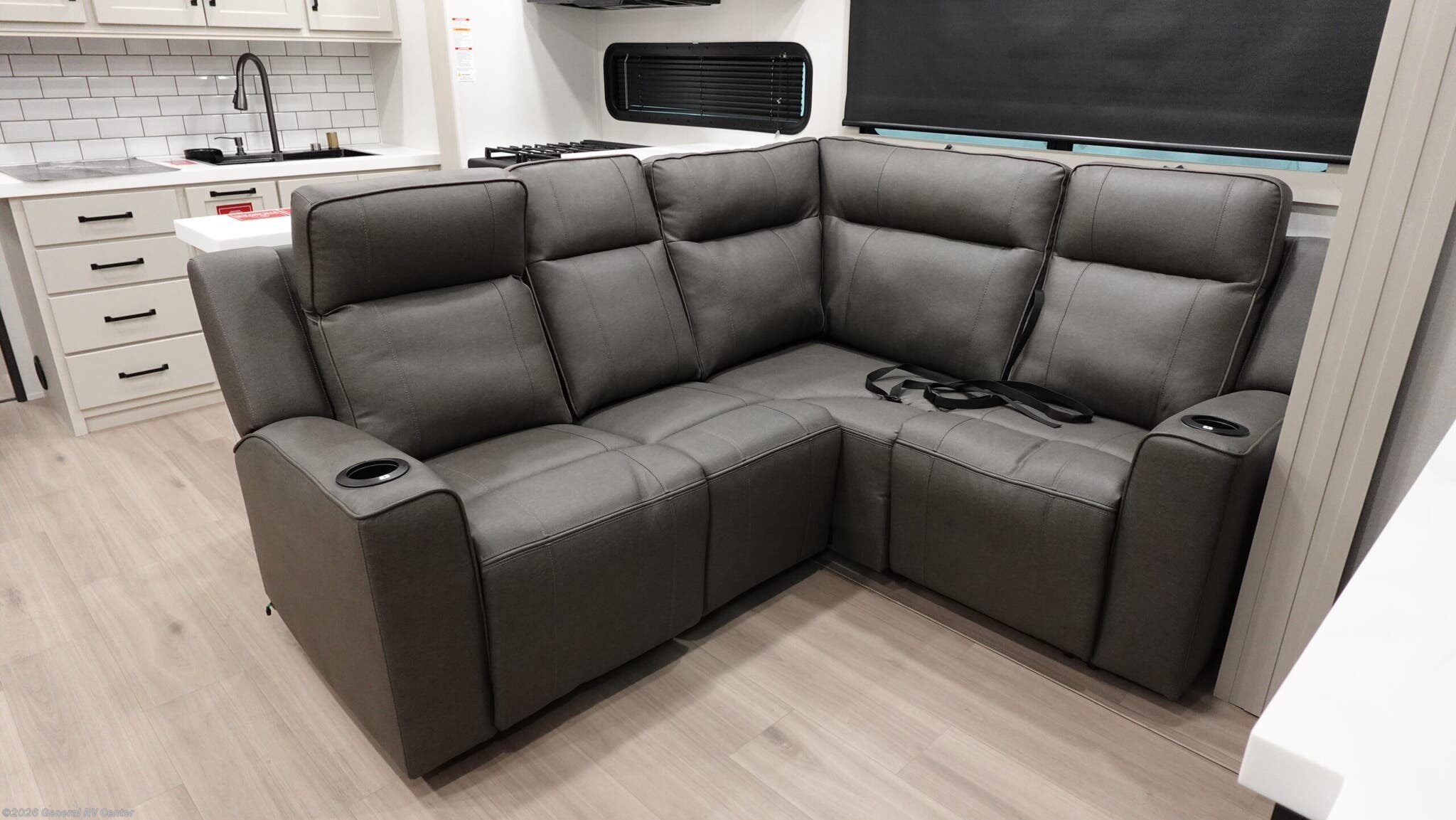Step into the world of luxury and adventure with the 2026 Grand Design Momentum M-Class 344M. This stunning fifth wheel is designed for those who crave both comfort and functionality while exploring the open road. With a spacious layout that includes a center kitchen and living area, you’ll find everything you need to entertain or relax after a day of excitement. The hybrid desk and dinette provide a versatile space for dining or working remotely, while the full-size refrigerator and three-burner cooktop ensure you can whip up your favorite meals with ease. Sleeping up to seven, this RV features a plush queen bed, an optional king bed, and a convertible sleeping area, making it perfect for family adventures. The 11-foot garage with Happi-Jac rollover sofas offers additional sleeping space or storage for your toys. With a generous fresh water capacity of 140 gallons and ample gray and black water storage, the Momentum 344M is ready for extended trips. Visit your nearest General RV dealership to experience this masterpiece in person and start your next journey in style.