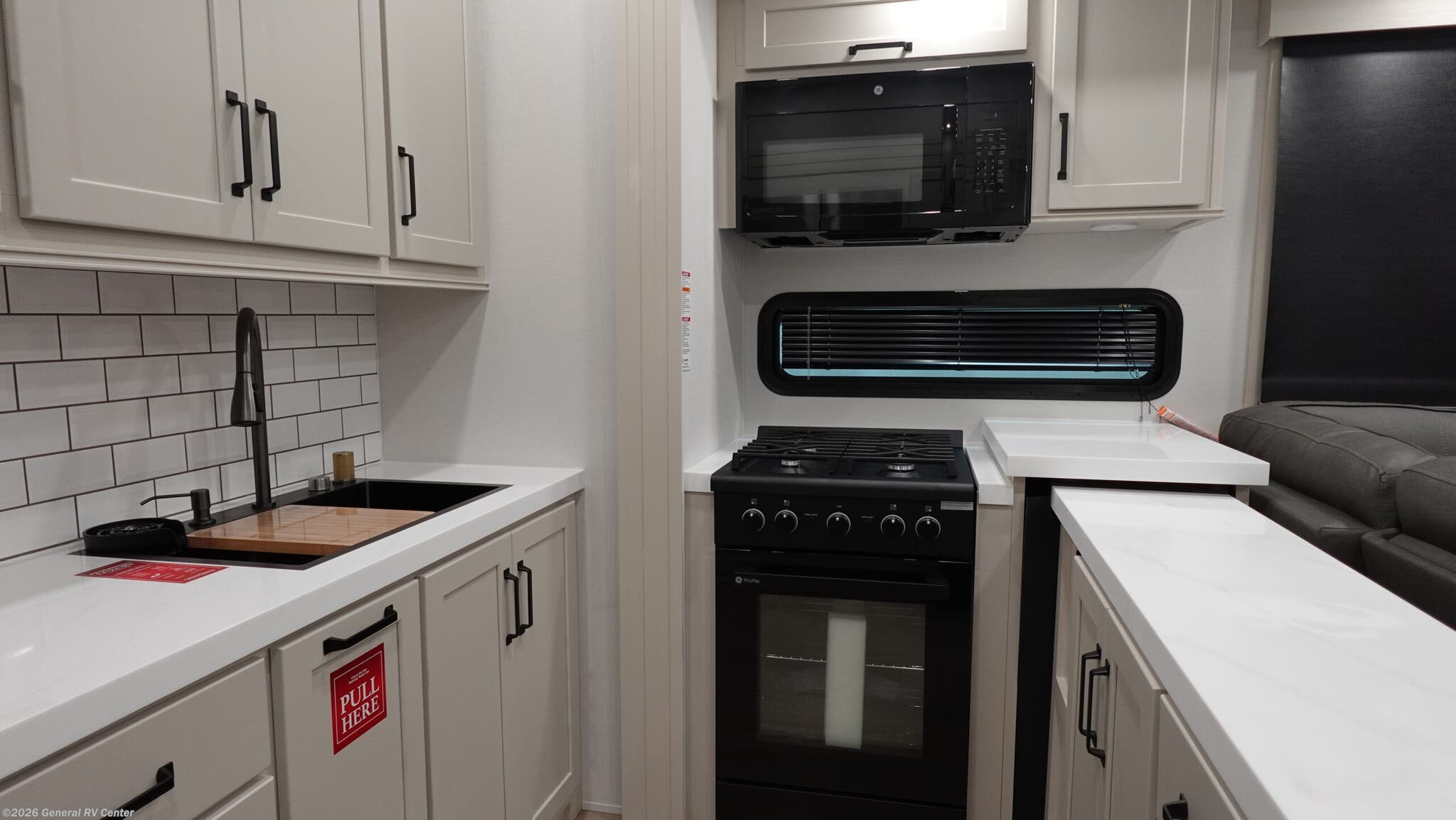 Step into the world of luxury and adventure with the 2026 Grand Design Momentum M-Class 344M. This stunning fifth wheel is designed for those who crave both comfort and functionality while exploring the open road. With a spacious layout that includes a center kitchen and living area, you’ll find everything you need to entertain or relax after a day of excitement. The hybrid desk and dinette provide a versatile space for dining or working remotely, while the full-size refrigerator and three-burner cooktop ensure you can whip up your favorite meals with ease. Sleeping up to seven, this RV features a plush queen bed, an optional king bed, and a convertible sleeping area, making it perfect for family adventures. The 11-foot garage with Happi-Jac rollover sofas offers additional sleeping space or storage for your toys. Enjoy the convenience of a washer and dryer, and unwind under one of the two powered retractable awnings. With a generous fresh water capacity of 140 gallons and ample gray and black water storage, the Momentum 344M is ready for extended trips. Visit your nearest General RV dealership to experience this masterpiece in person and start your next journey in style.