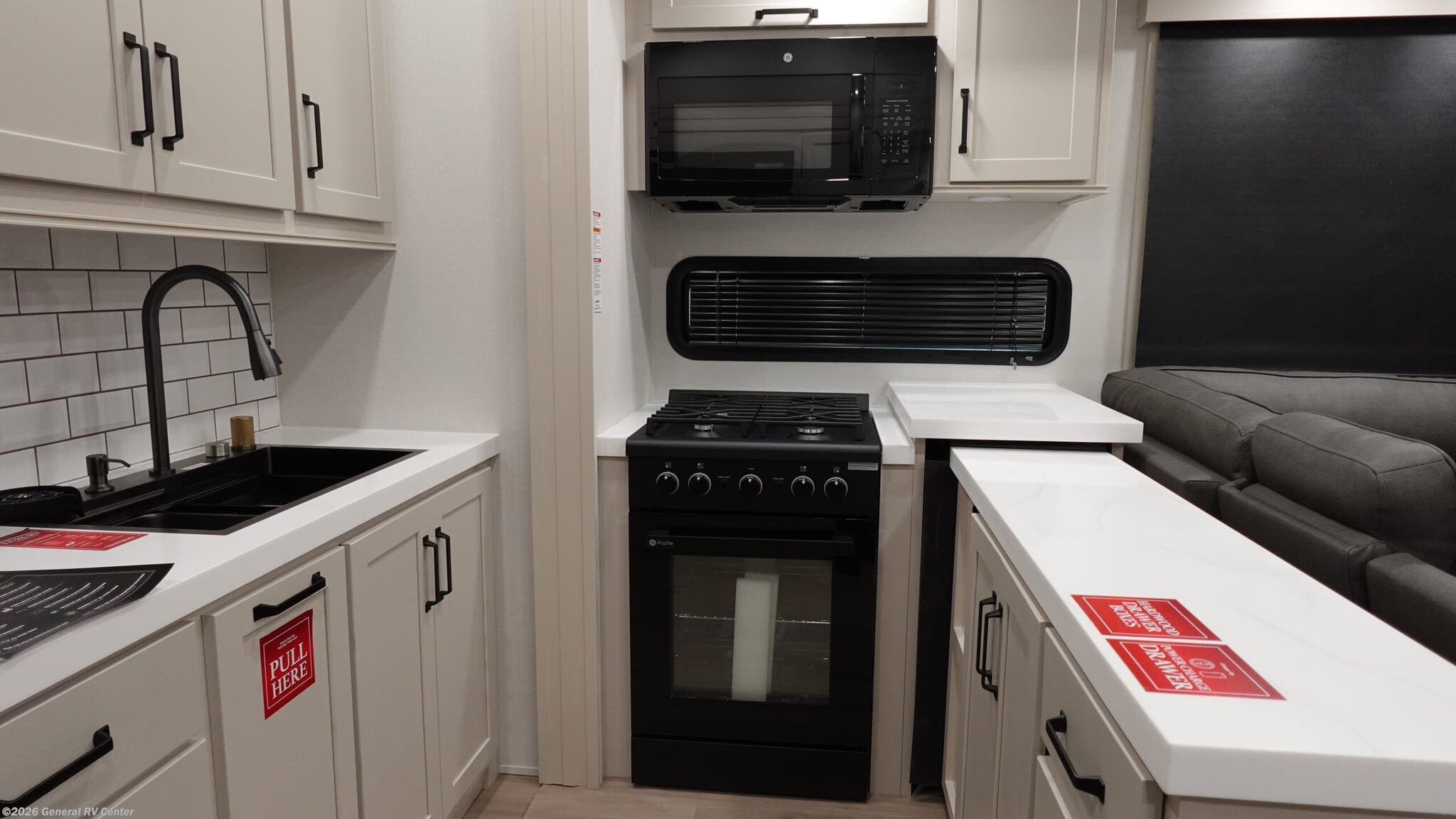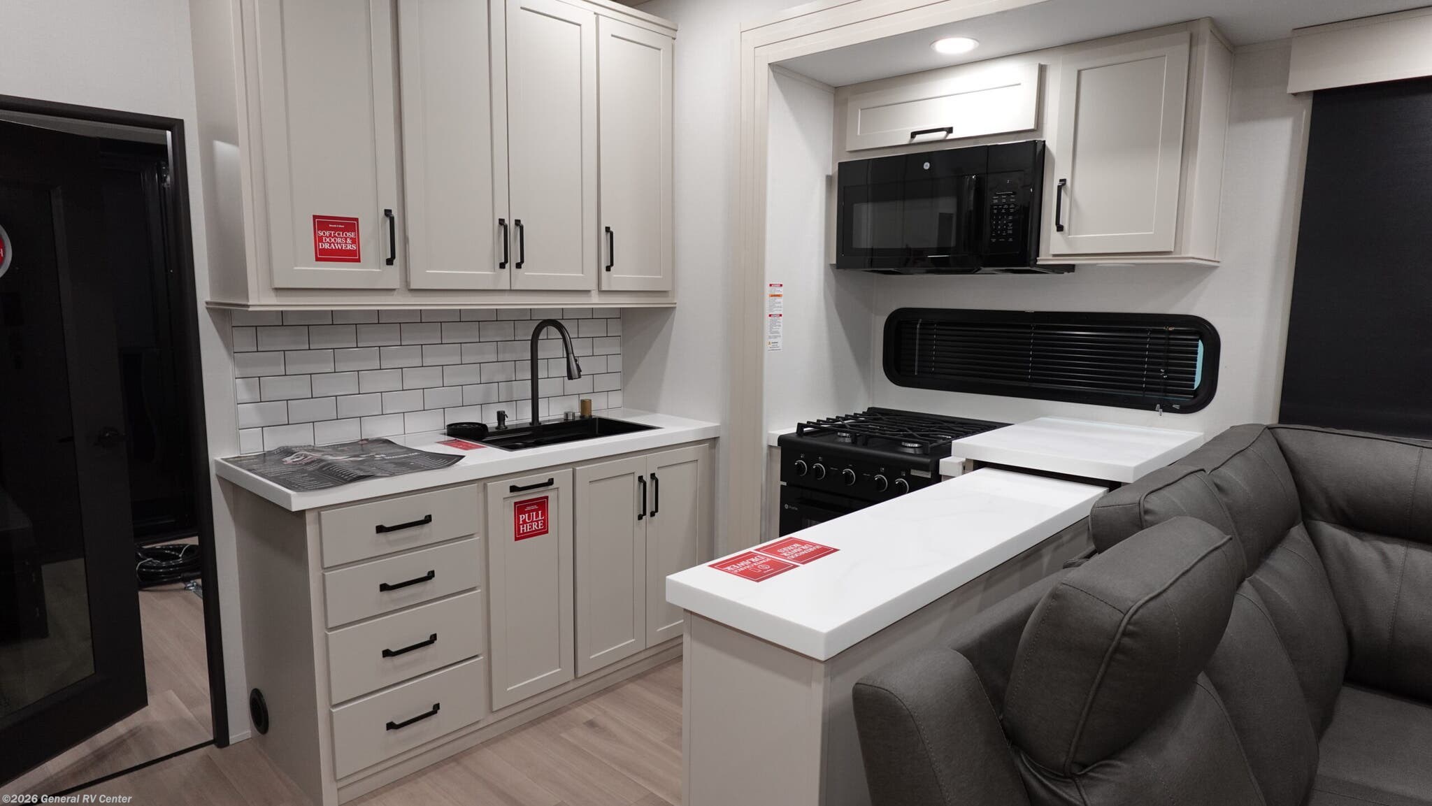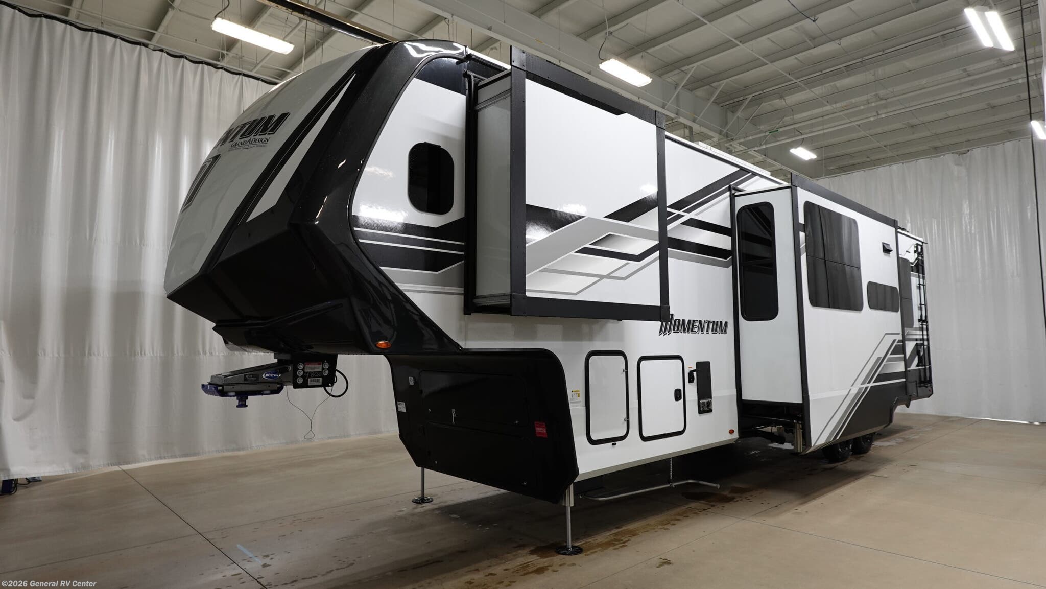Step into the world of luxury and adventure with the 2026 Grand Design Momentum M-Class 344M. This stunning fifth wheel is designed for those who crave both comfort and functionality while exploring the open road. With a spacious layout that includes a center kitchen and living area, you’ll find everything you need to entertain or relax after a day of excitement. The hybrid desk and dinette provide a versatile space for dining or working remotely, while the full-size refrigerator and three-burner cooktop ensure you can whip up your favorite meals with ease. Sleeping up to seven, this RV features a plush queen bed, an optional king bed, and a convertible sleeping area, making it perfect for family adventures. The 11-foot garage with Happi-Jac rollover sofas offers additional sleeping space or storage for your toys. Enjoy the convenience of a washer and dryer, and unwind under one of the two powered retractable awnings. With a generous fresh water capacity of 140 gallons and ample gray and black water storage, the Momentum 344M is ready for extended trips. Visit your nearest General RV dealership to experience this masterpiece in person and start your next journey in style.