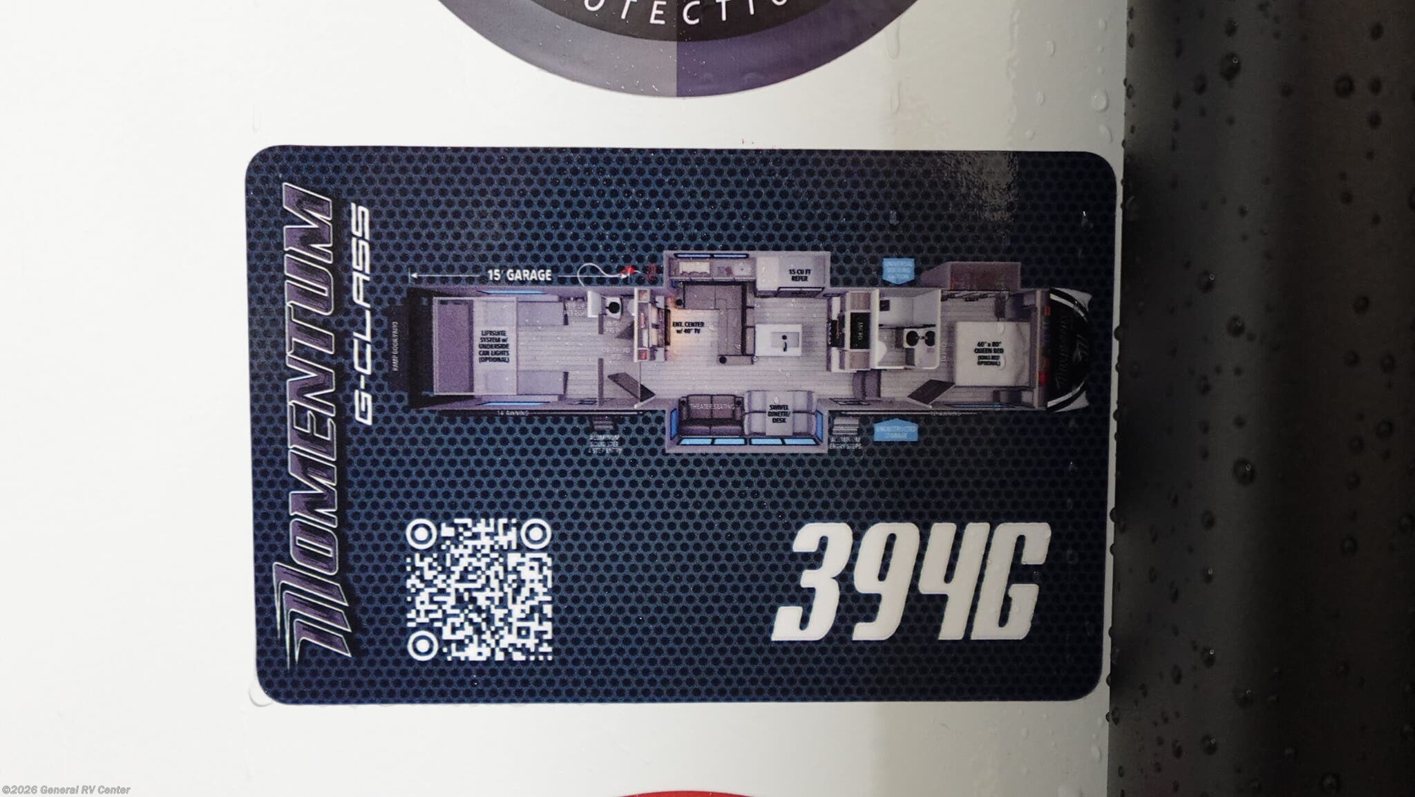 **Grand Design Momentum G-Class toy hauler 394G highlights:** * 15' Separate Garage * Fireplace * Private Bedroom * Dual Entry Doors A 15' separate garage in this toy hauler offers plenty of space for your off-road toys! You will appreciate the convenience of having a full bathroom with a walk-in shower and there is washer and dryer prep so you can accommodate these appliances. You will also appreciate the two entry doors, and flip-up pet dish. The rear ramp door can even be converted into a patio, plus there are exterior speakers to keep the party going. Everyone will love hanging out in the separate living area with a fireplace at the entertainment center, theater seating, and a sectional sofa. The fully equipped kitchen has everything you need to prepare delicious home cooked meals. The front private bedroom offers an escape to rest and relax on a queen bed for the next ride! Are you looking for adventure and fun? The Momentum G-Class toy hauler by Grand Design will help you find it! You can explore during any season you choose with the Insulation Package that includes a heated and enclosed underbelly with suspended tanks, a high-capacity furnace, a moisture barrier floor enclosure, and cabinet-mounted heat ducts. Each model includes a high capacity water pump, a dovetail rear end, and 2,500-LB tie-downs anchored into the chassis. Throughout the Momentum G-Class interior, you'll enjoy many comfortable features like large panoramic windows, a shower skylight, USB chargers in the bedroom, and residential cabinetry.