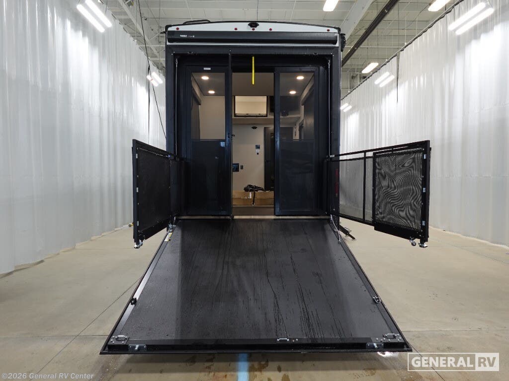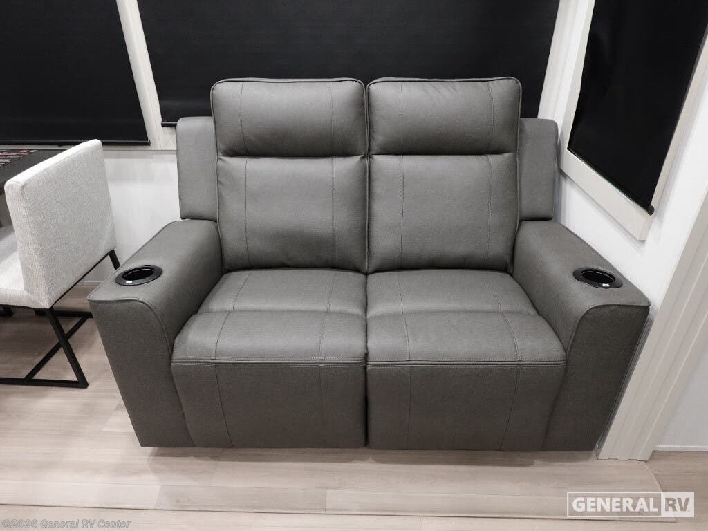 Grand Design Momentum M-Class toy hauler 395MS highlights: 14' Separate Garage L-Shaped Pull-Out Sofa Theatre Seating Free Standing Dinette Dual Entry Doors Universal Docking Station You want a toy hauler to carry your toys to the trails, and include many at-home comforts, and that's just what this unit delivers. There is an overhead loft bed and an L-shaped sofa with recline in the main living area that offers sleeping space as well. Everyone can watch a movie on the LED TV with a fireplace below while sitting on the sofa, in the theatre seats, or while at the free standing dinette with four chairs. The chef will have upgraded appliances to make meals for everyone, an L-shaped countertop with a kitchen sink, and a USB charging outlet. You will love the shower with seat in the full bathroom with two space savings sliding doors that lead into the hallway, and into the front bedroom where you will have a walk-around queen bed, a slide out wardrobe and more USB charging outlets. With any Momentum M-Class toy hauler by Grand Design, you will enjoy luxury at every turn! They have been constructed to a superior standard with a thermal roof design, triple insulated main floor and garage floor, and a Rail-Tite underbelly seal that will allow you to camp in all elements. Each model also features an 8' 5" wide body chassis with a wide rail design, no wheel wheels, and a dovetail entry for easier loading. The Stealth A/C system provides maximum cooling power, and the CRE3000 suspension system means you can enjoy a smooth tow each time. You will love the luxurious interior with a professional grade stainless steel cooktop, interior color changing LED accent lighting, a fiberglass shower with a glass door, and solid surface countertops.