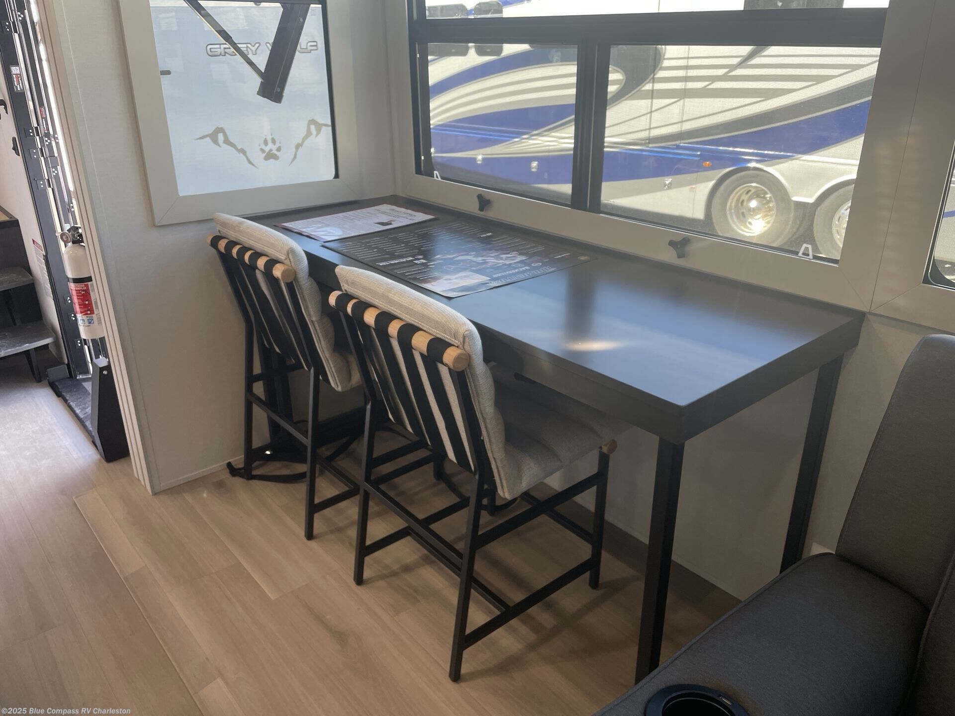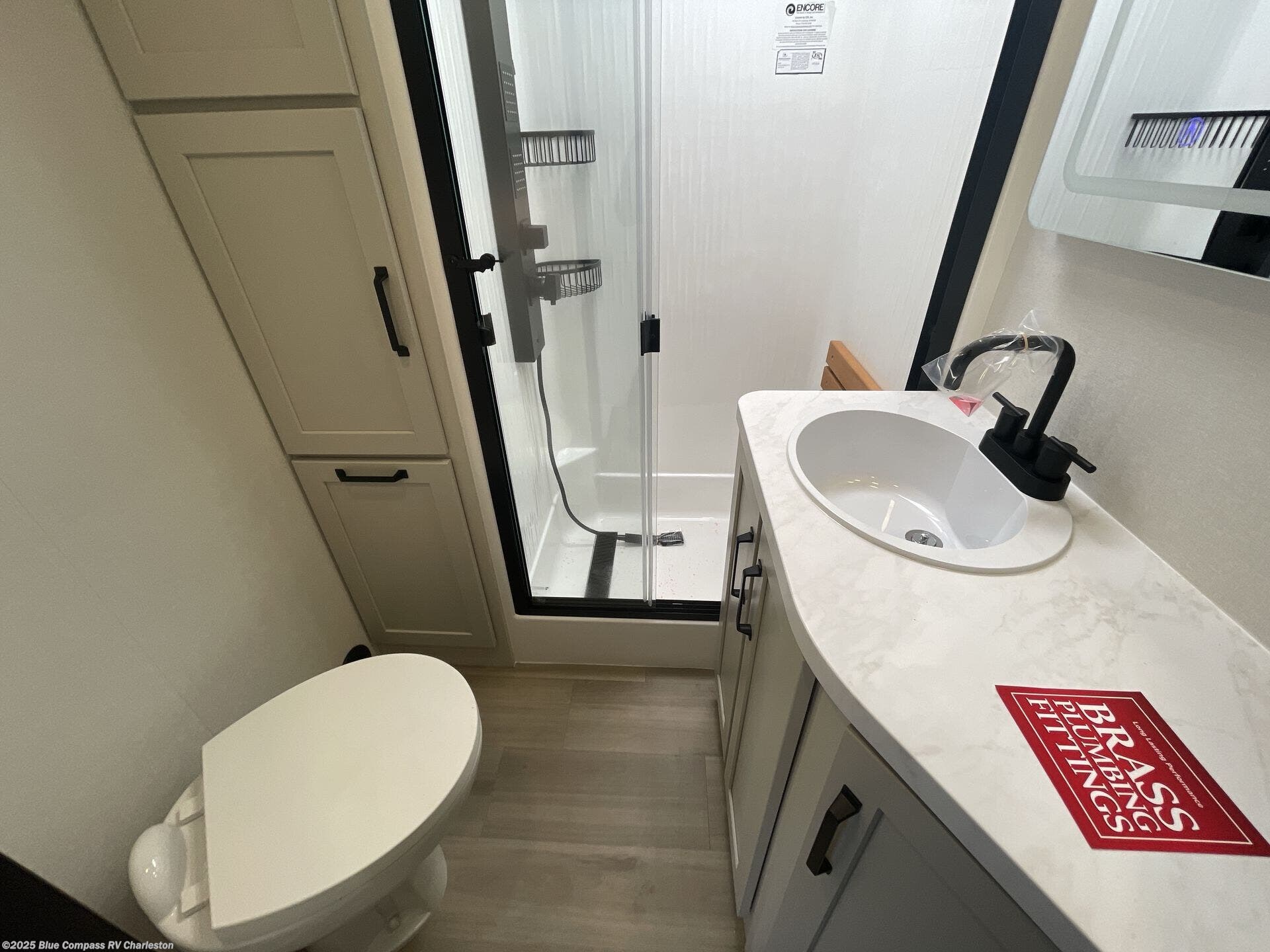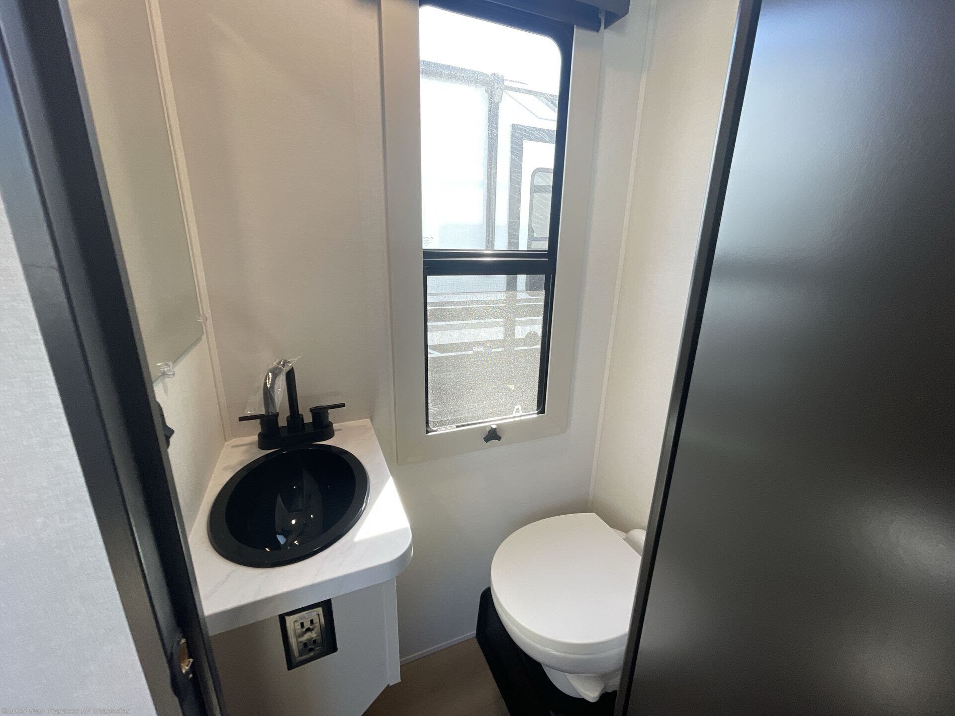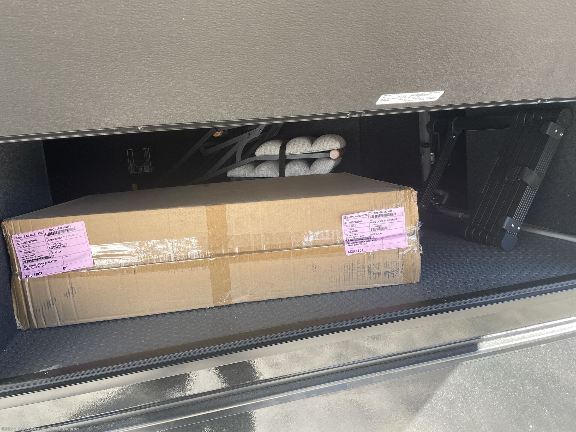 You want a toy hauler to carry your toys to the trails, and include many at-home comforts, and that's just what this unit delivers. A 14' separate garage includes an adjustable tie-down system, flip-up pet dish, a half bath, plus washer and dryer prep. There is an overhead loft bed and an L-shaped sofa with recline in the main living area that offers sleeping space as well. Everyone can watch a movie on the LED TV with a fireplace below while sitting on the sofa, in the theatre seats, or while at the hybrid desk/dinette. You will love the shower with seat in the full bathroom with two space savings sliding doors that lead into the hallway, and into the front bedroom where you will have a queen bed slide out, a wardrobe with washer and dryer prep, and TV prep if you want the option to watch movies in bed!