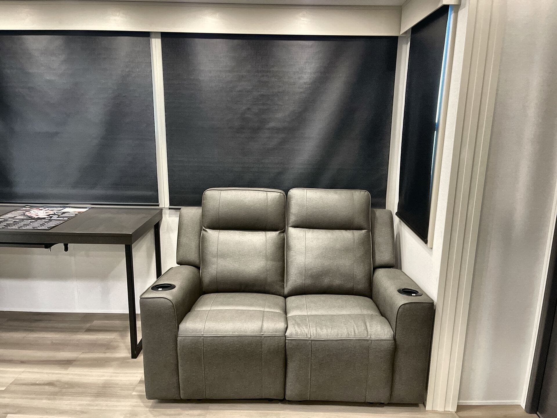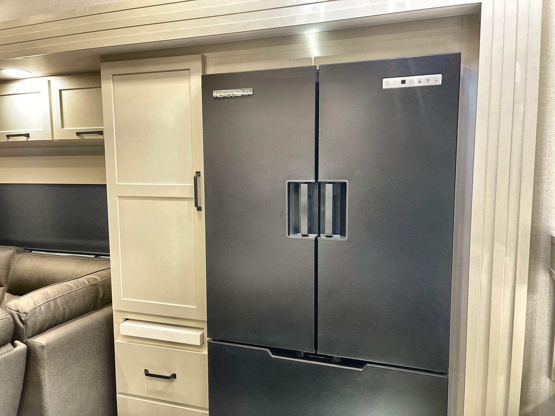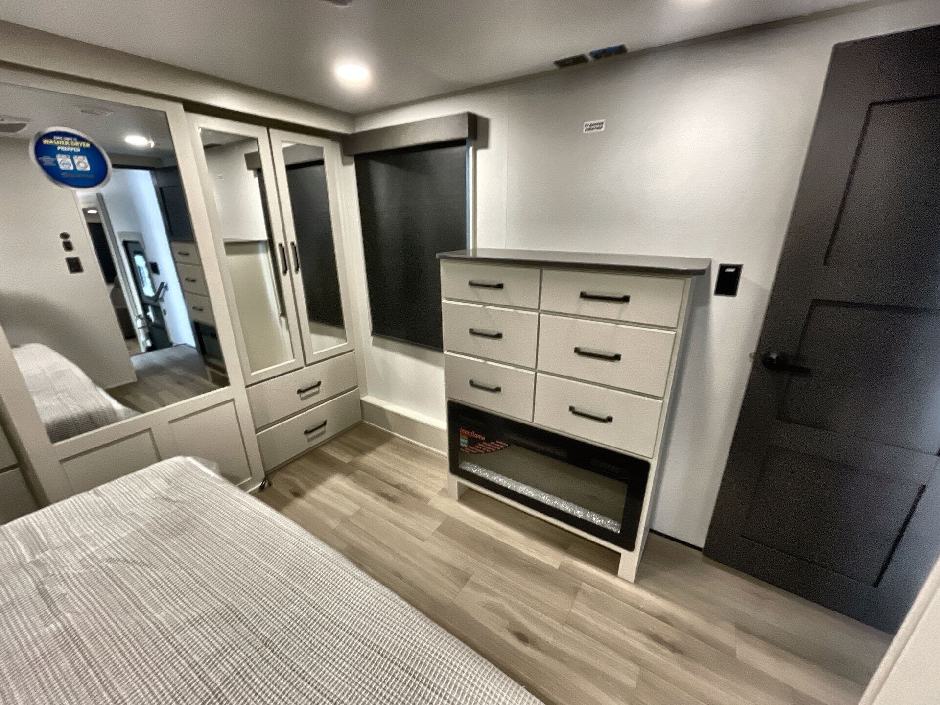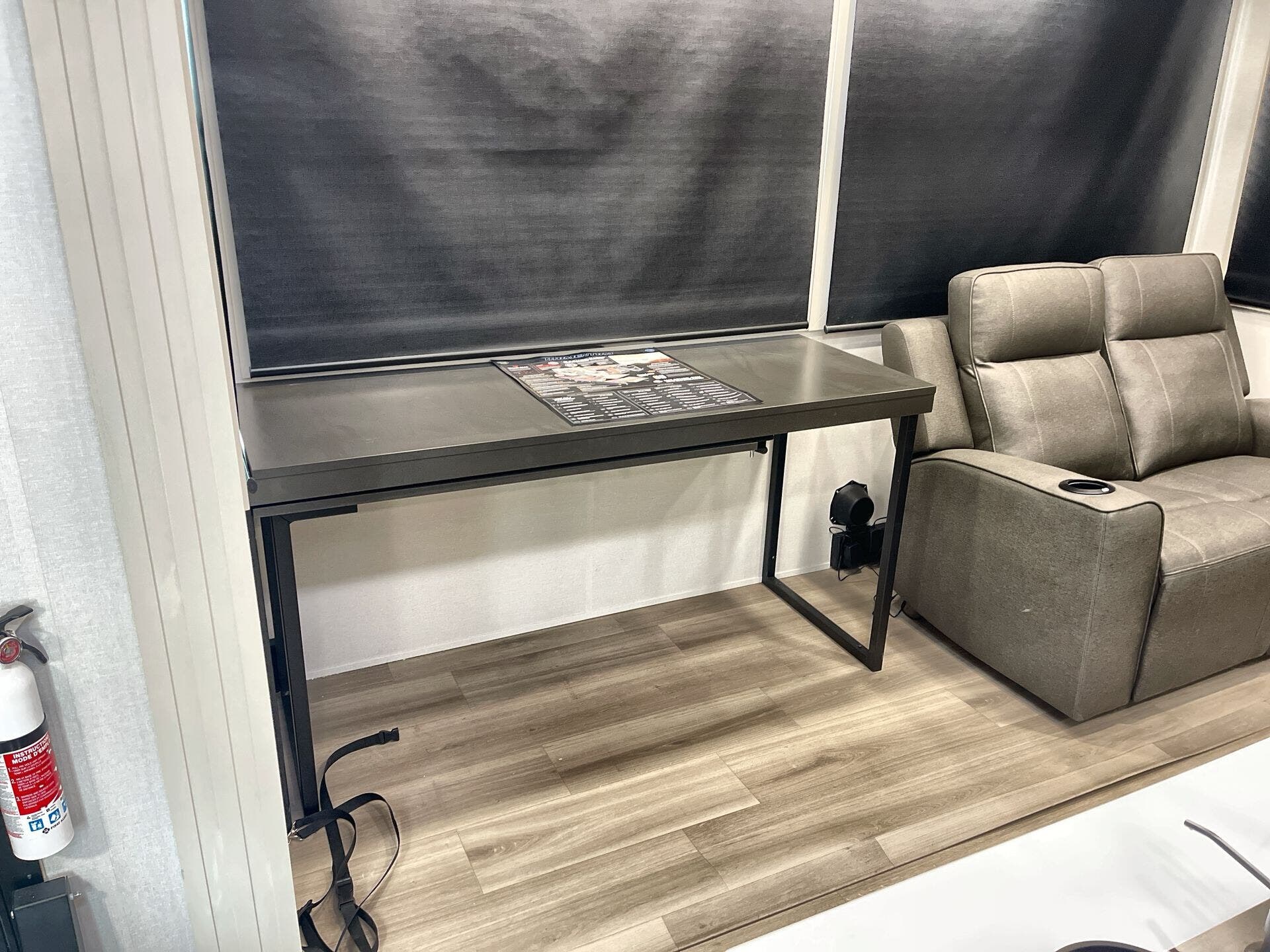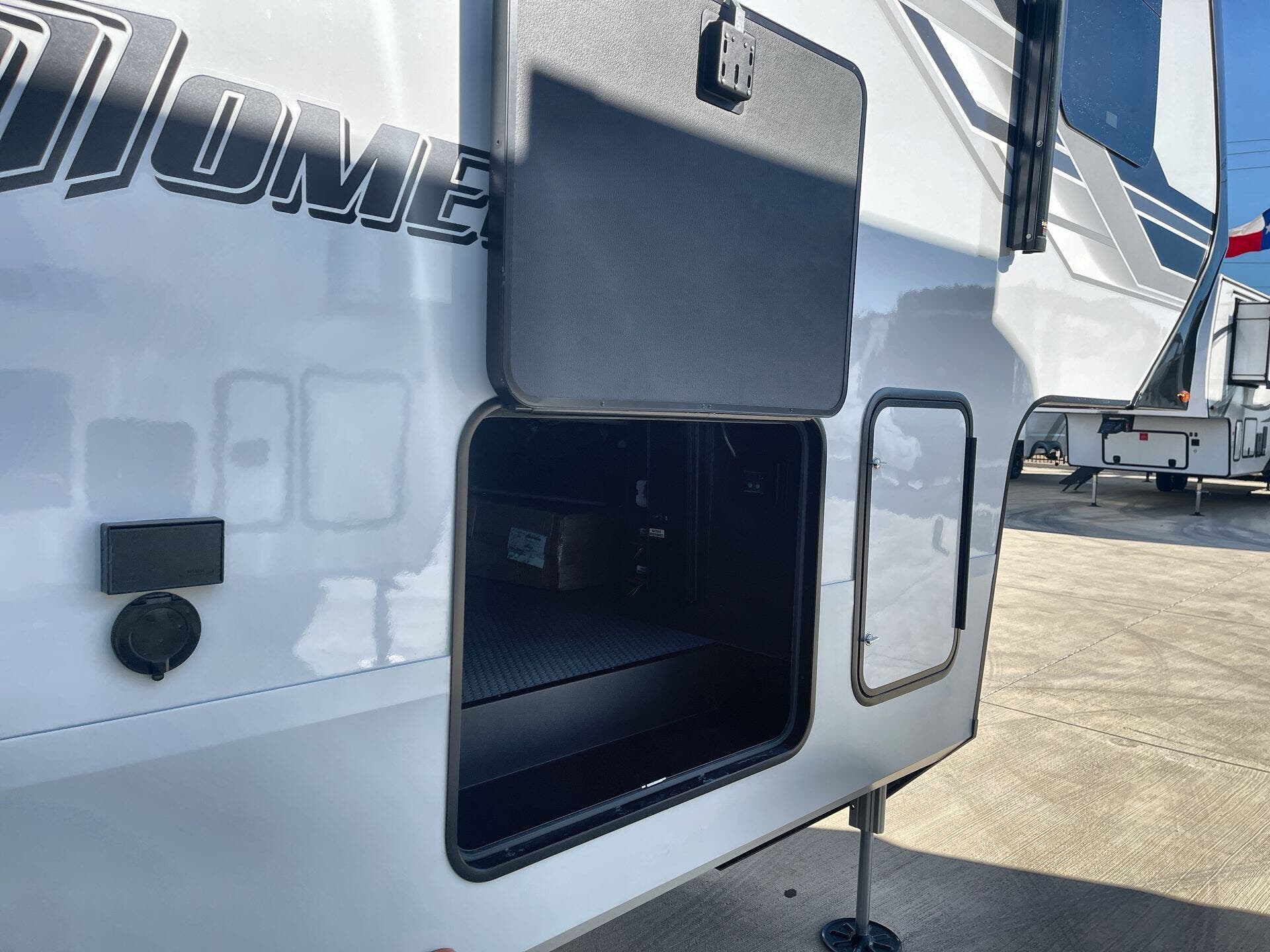 The Momentum 395MT prioritizes comfort with a well-equipped kitchen that includes a microwave, oven, refrigerator, stove, and a dependable water heater, ensuring you can prepare meals on the go. Climate control is supported by an air conditioning system, while safety is enhanced by a full suite of detectors and alarms, including CO, LP, and smoke detectors, along with a fire extinguisher. Entertainment and convenience are covered with a stereo system and a TV, creating a home-away-from-home atmosphere for family nights on the road.