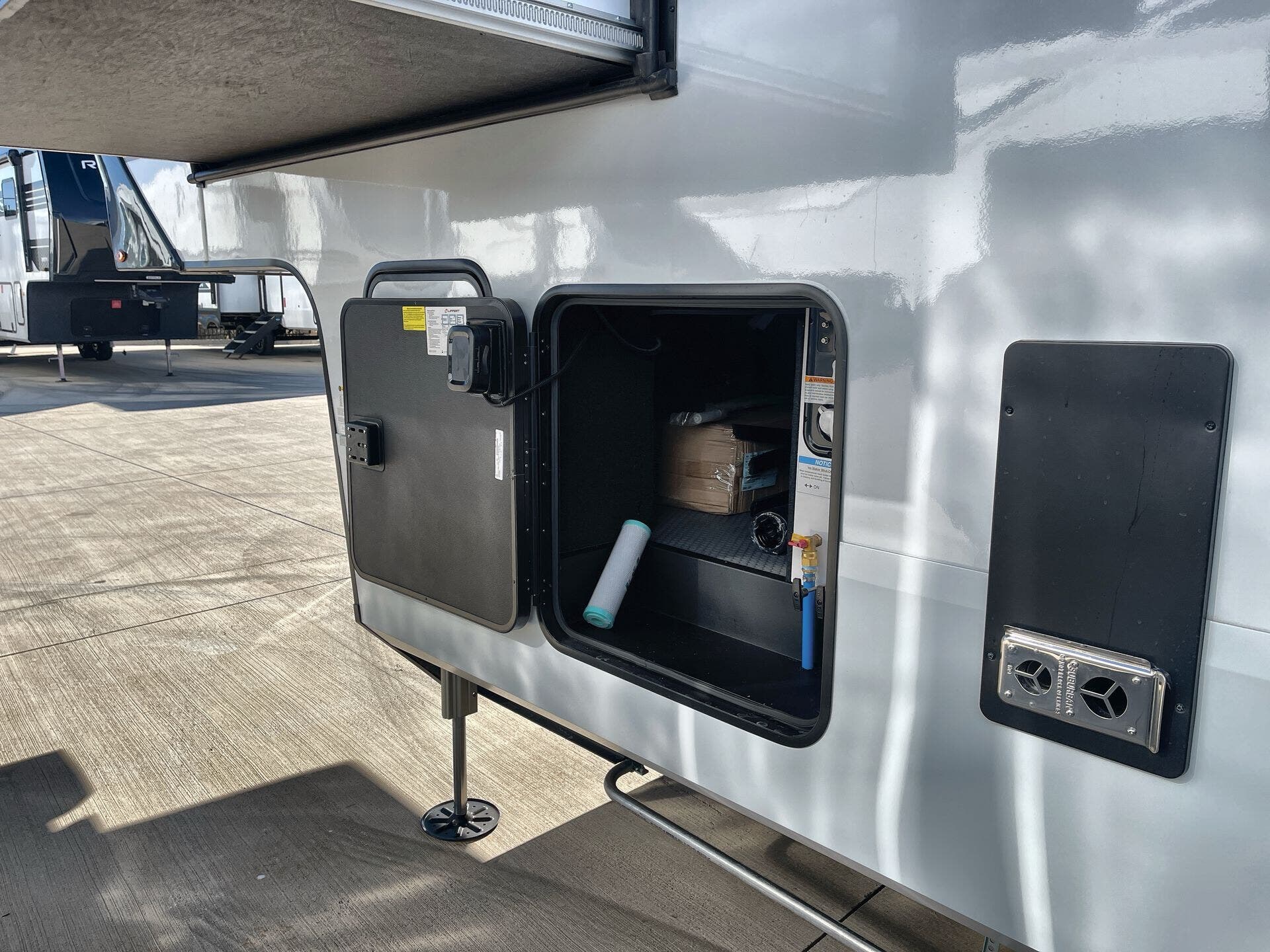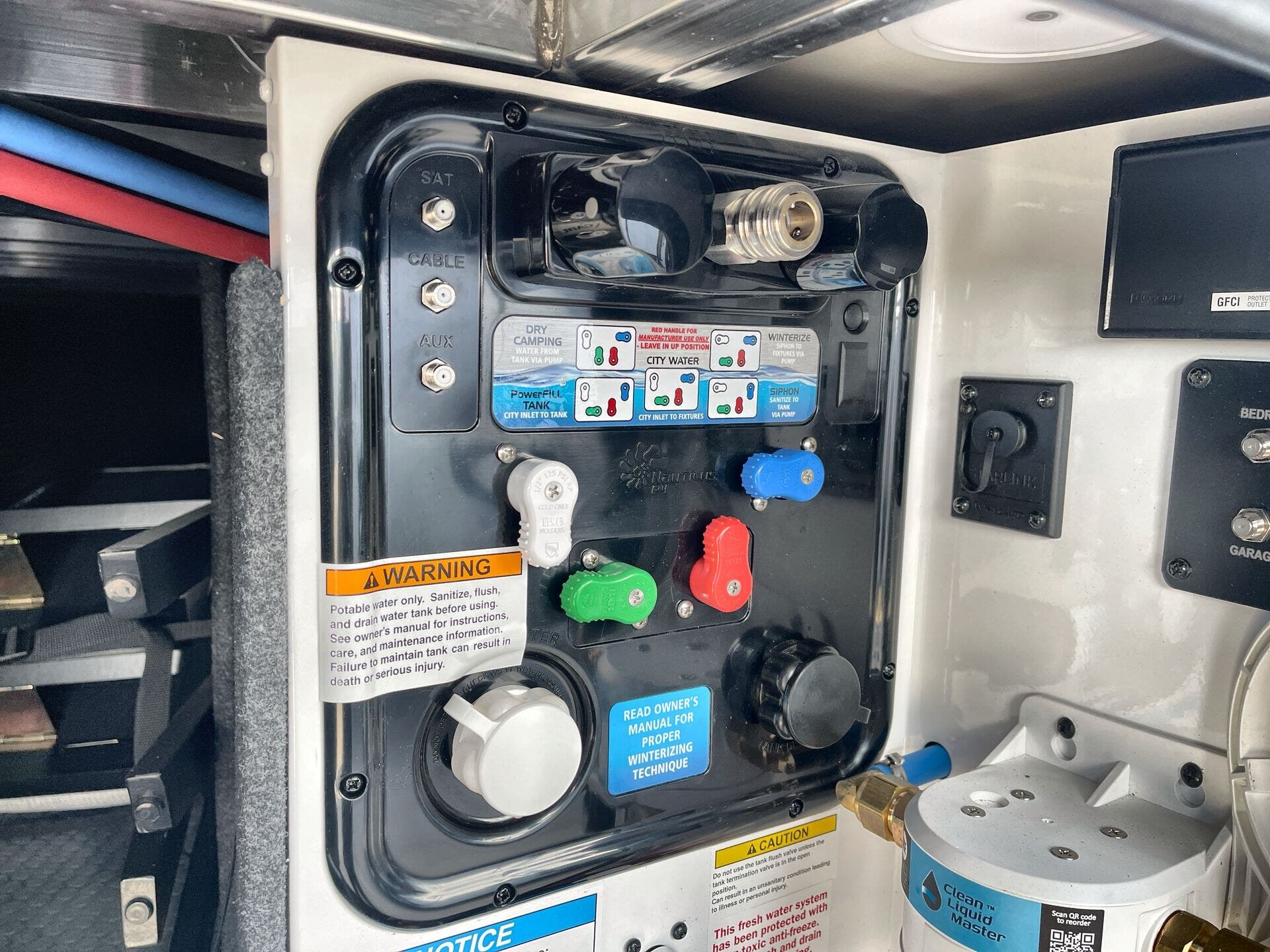 - Water capacity: Fresh 140 gallons • Grey 104 gallons • Black 52 gallons