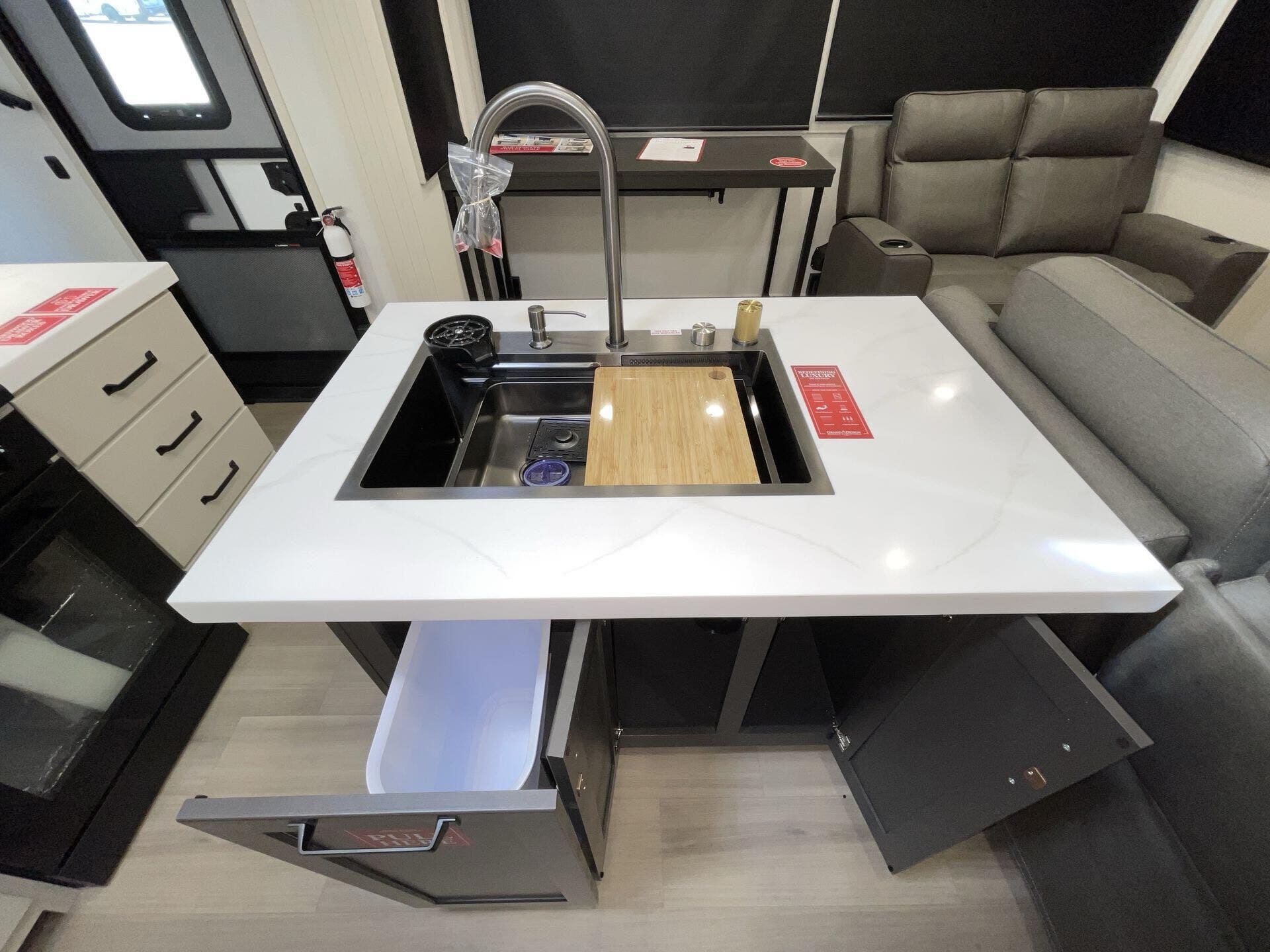 Two huge slide-outs open the living/kitchen area wide