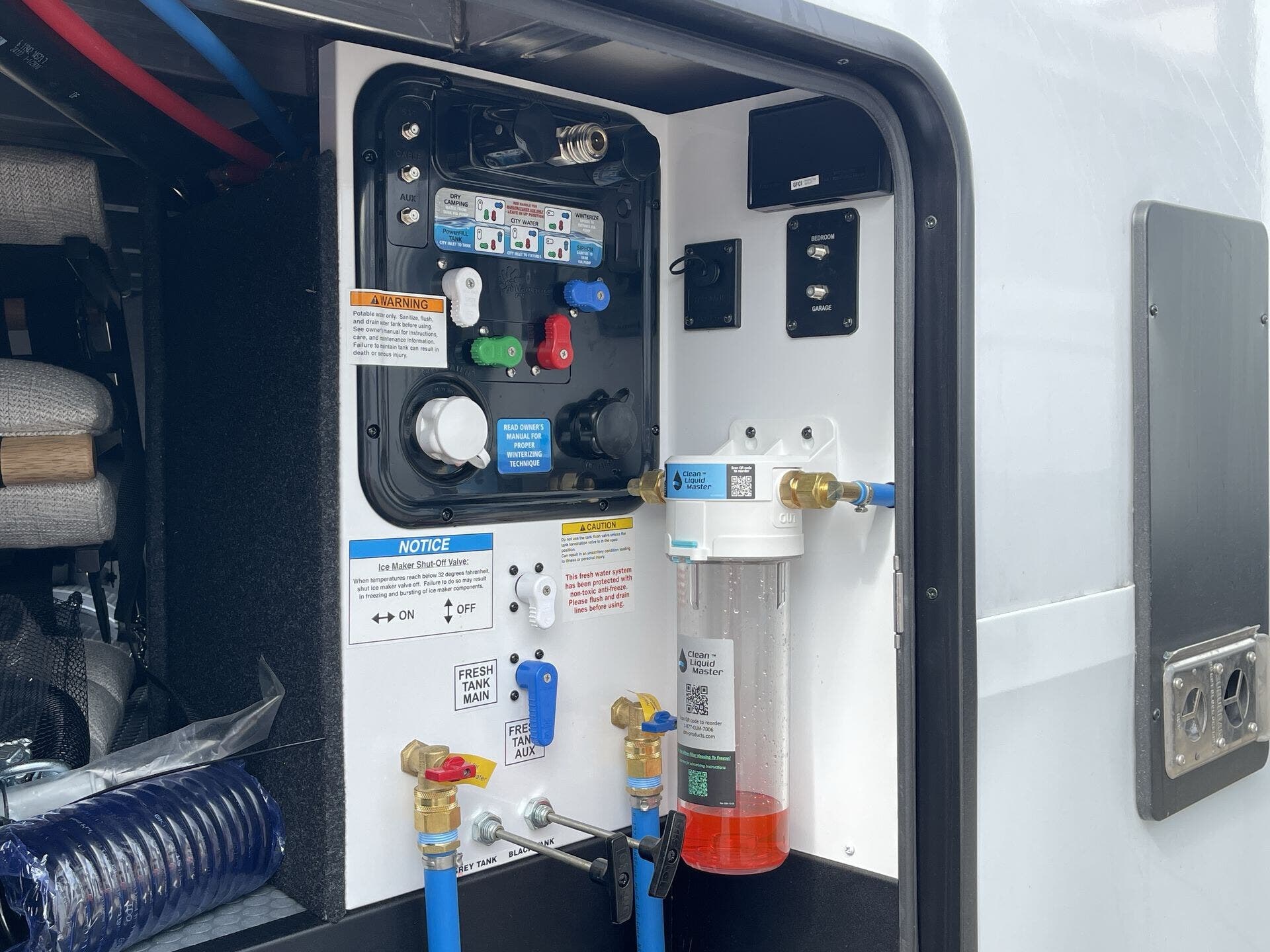 Excellent utility setup — big tanks and systems ready for longer stays