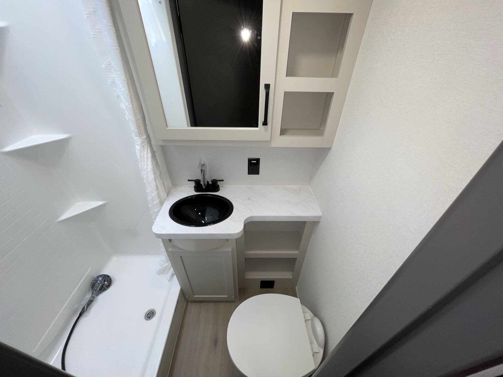 The living area feels like a proper lounge — theater seating and sofa that you’ll actually use while you relax or watch TV after a long day of adventure. The bathroom’s size and layout make those mornings and evenings with a crowd way more comfortable.