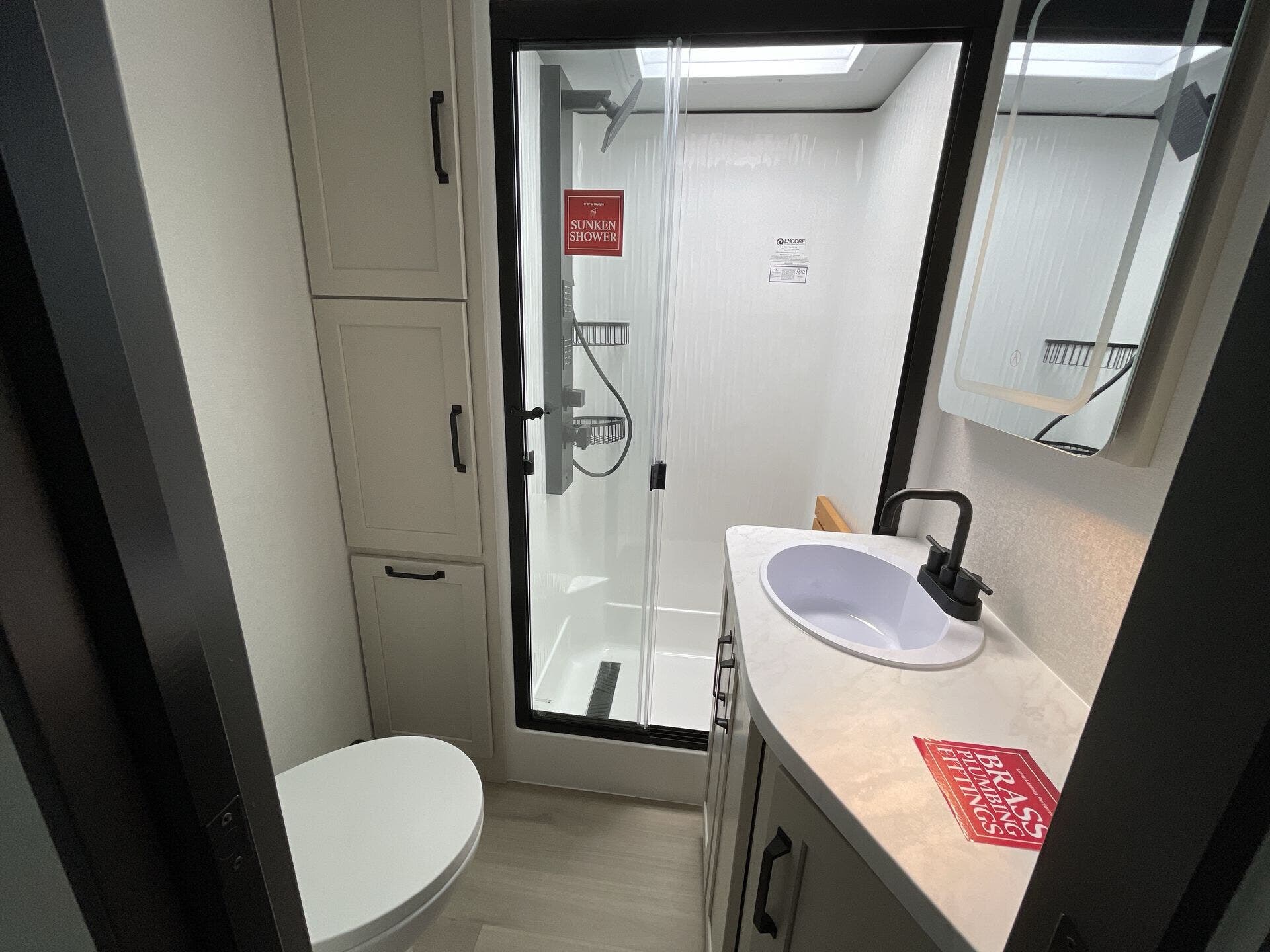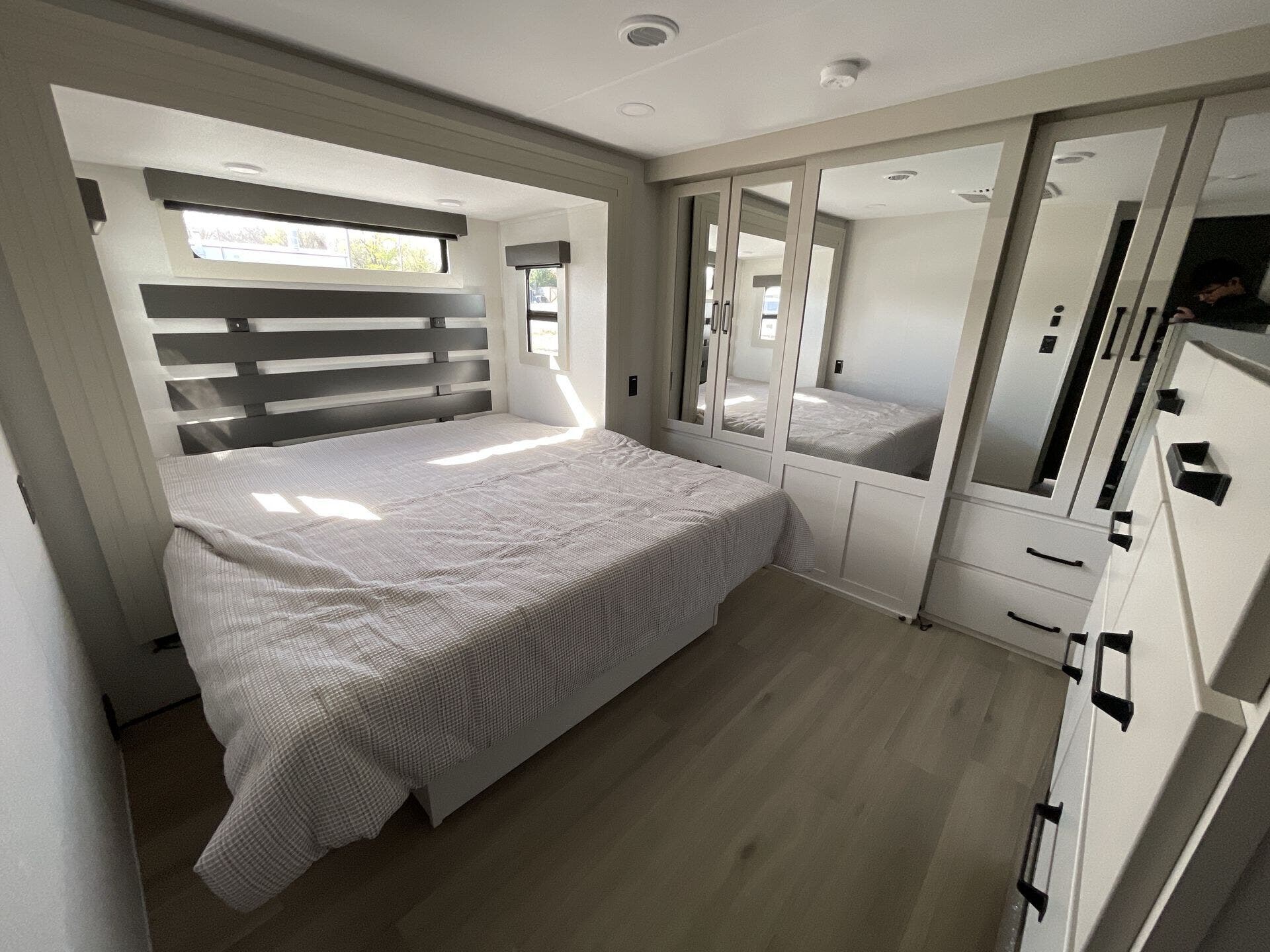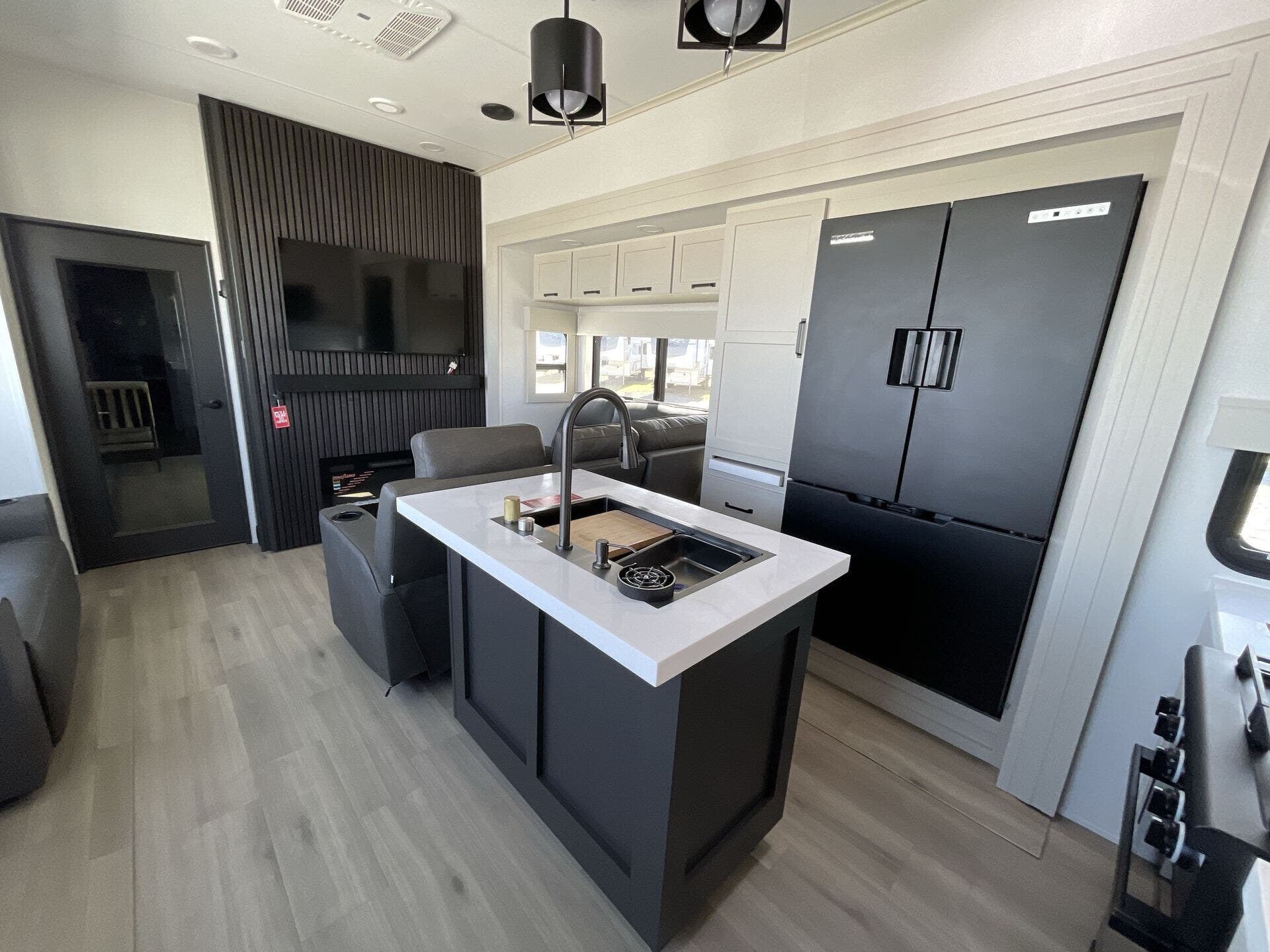 The front private master suite offers a peaceful retreat with a king bed, wardrobe storage, and washer/dryer prep, while the spacious bathroom includes a residential-style shower and modern amenities. Built for extended comfort and convenience, the Momentum 396DB also includes climate control, optional solar packages, and smart storage solutions to support off-grid adventures. Whether you’re hauling toys for an action-packed weekend or enjoying a relaxing getaway, the 2026 Grand Design Momentum 396DB delivers the ultimate combination of luxury, versatility, and adventure-ready performance.