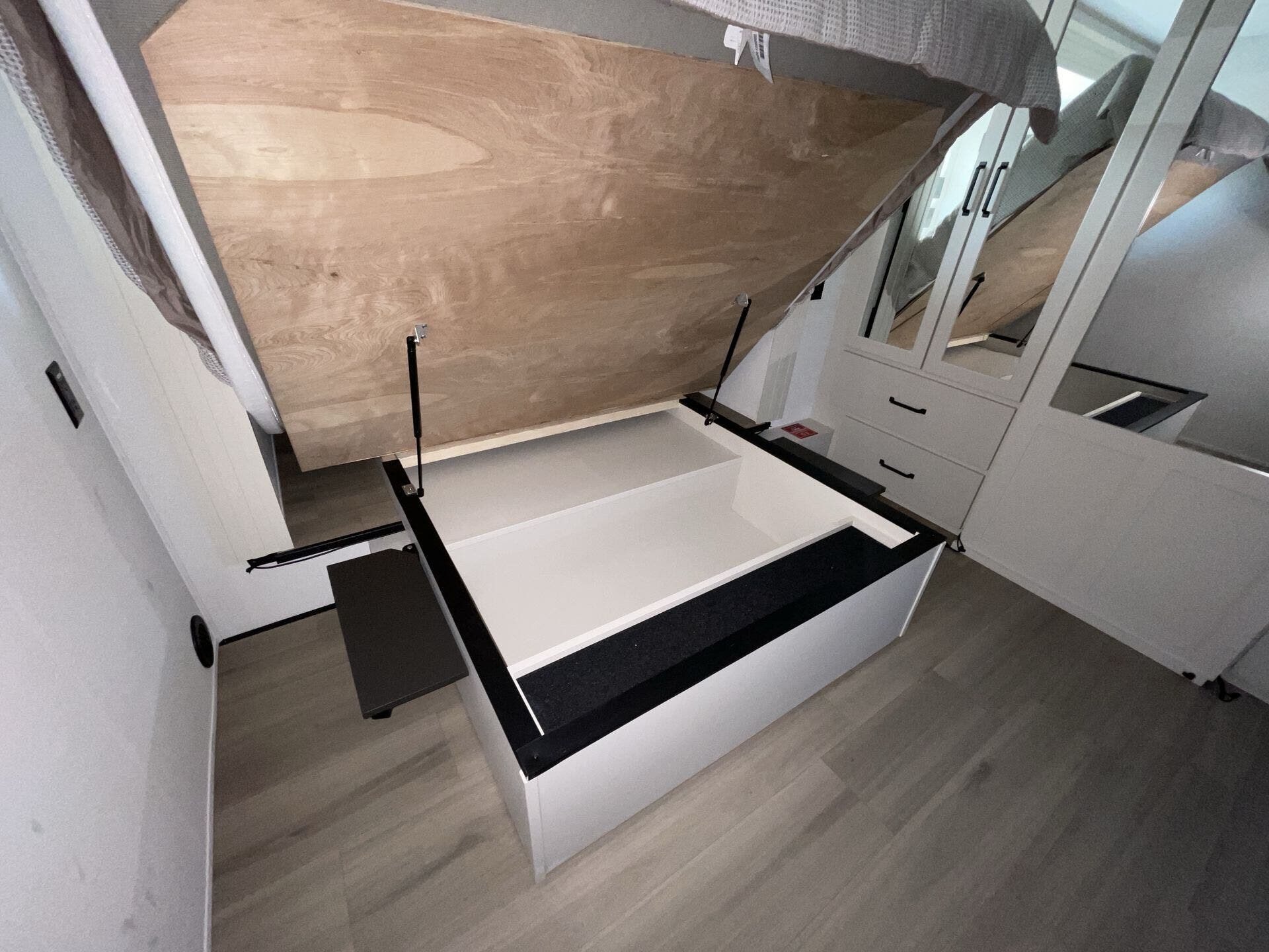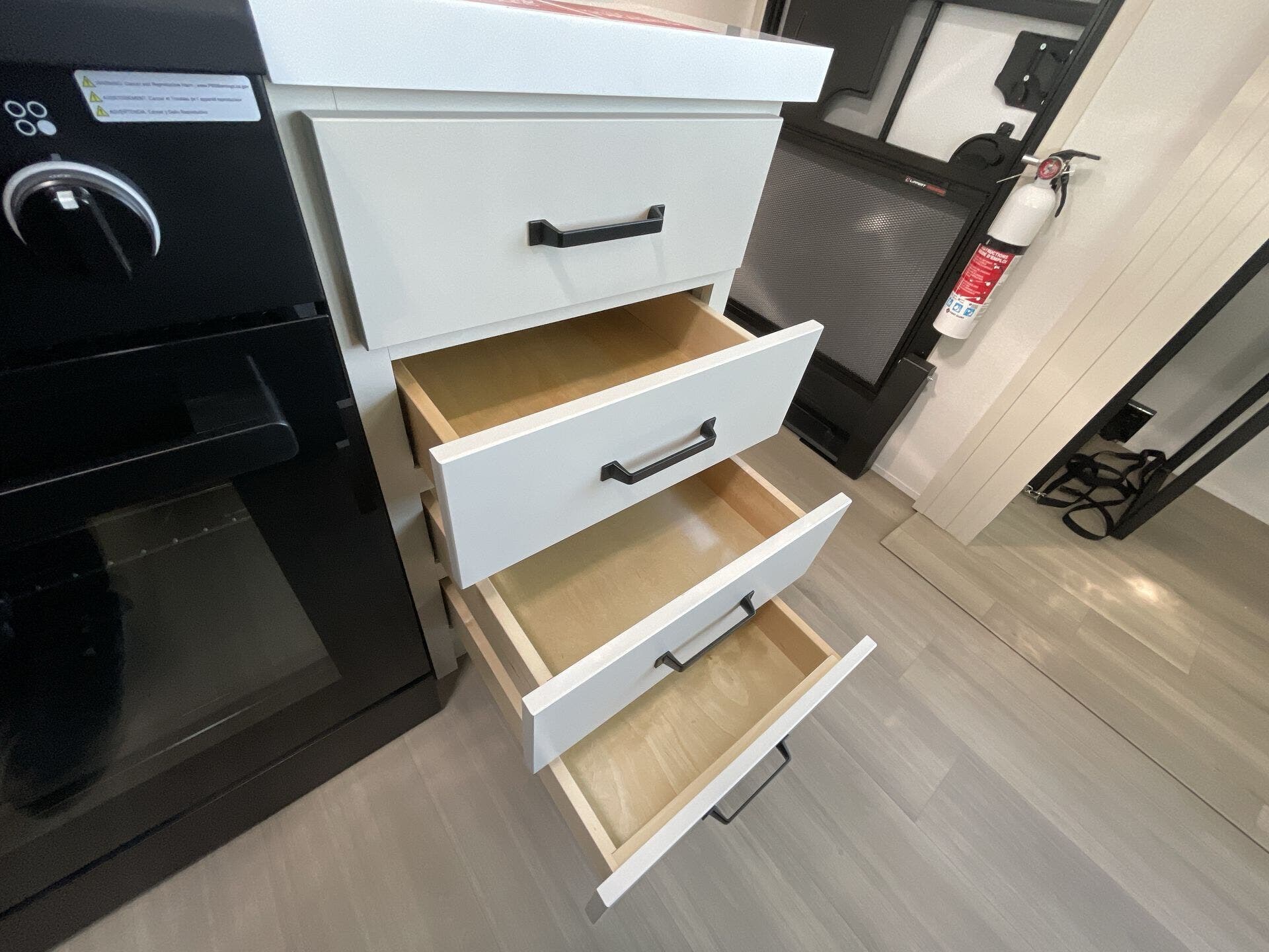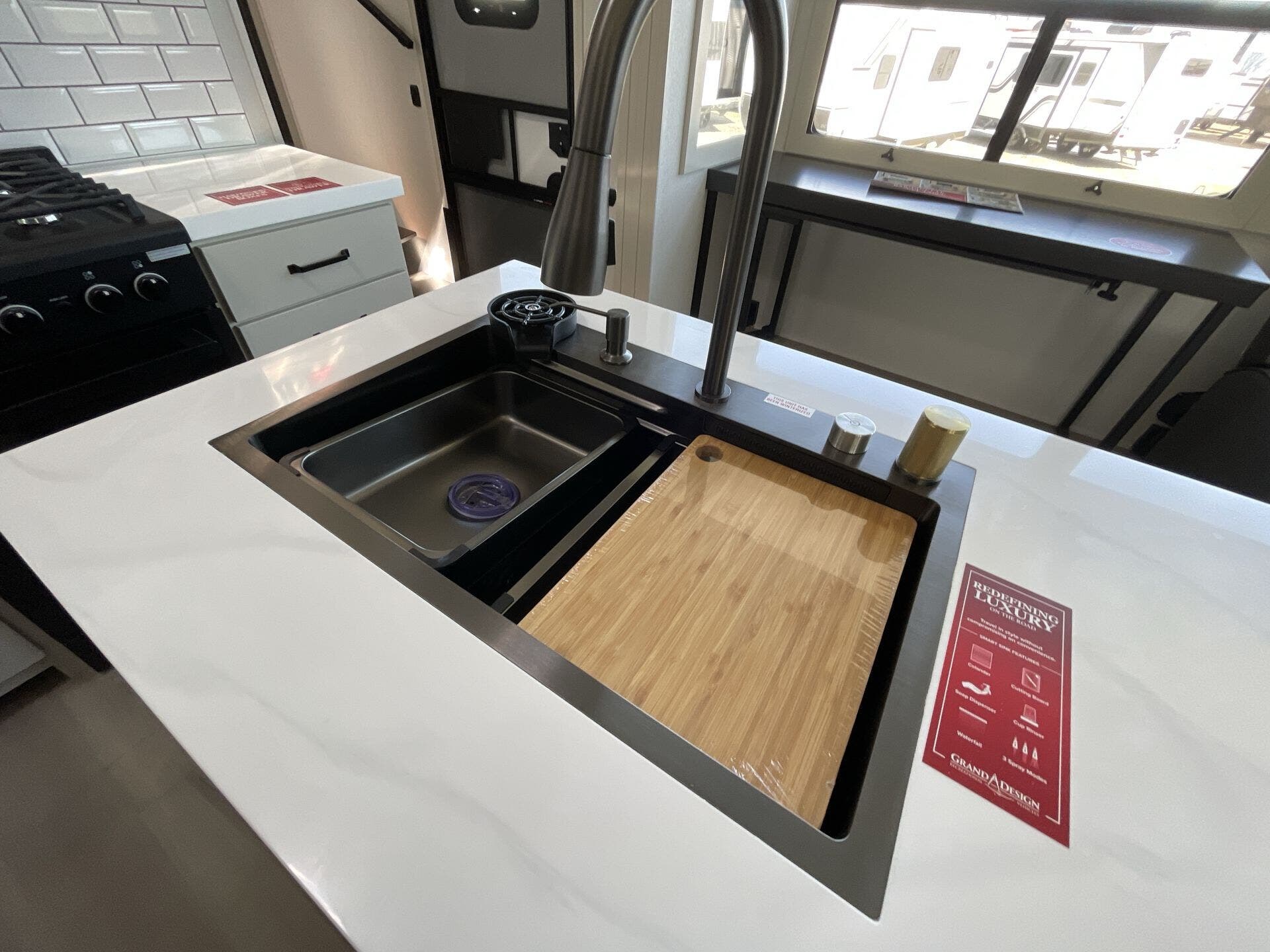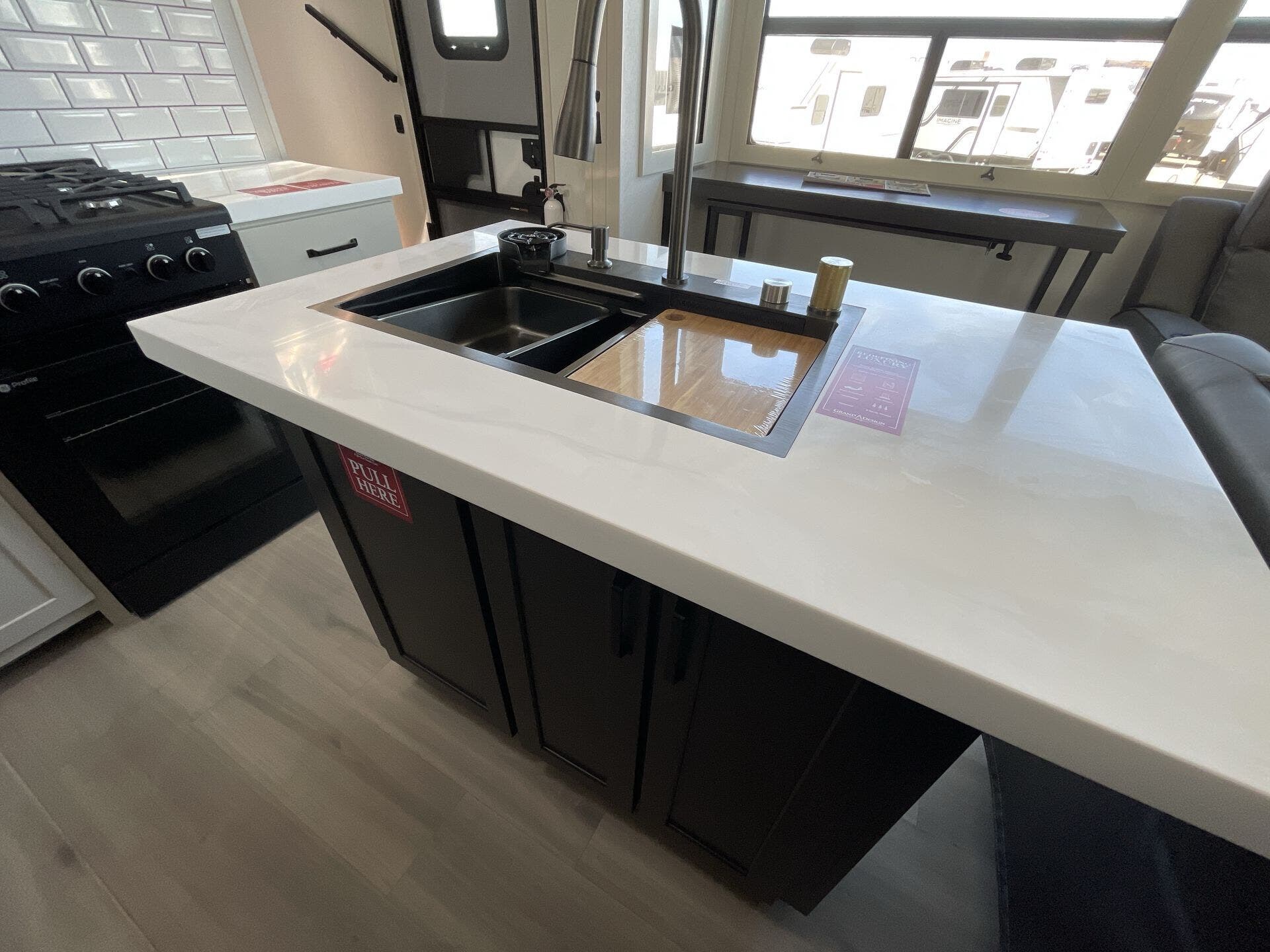 The front private master suite offers a peaceful retreat with a king bed, wardrobe storage, and washer/dryer prep, while the spacious bathroom includes a residential-style shower and modern amenities. Built for extended comfort and convenience, the Momentum 396DB also includes climate control, optional solar packages, and smart storage solutions to support off-grid adventures. Whether you’re hauling toys for an action-packed weekend or enjoying a relaxing getaway, the 2026 Grand Design Momentum 396DB delivers the ultimate combination of luxury, versatility, and adventure-ready performance.