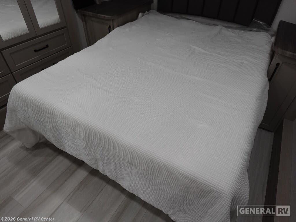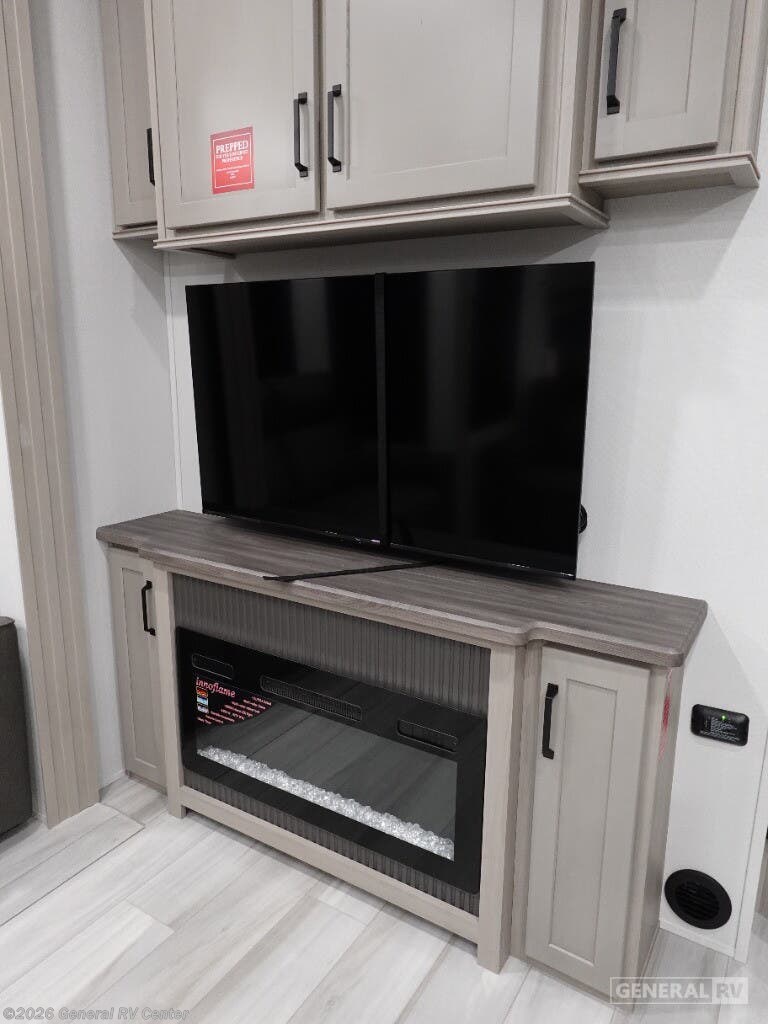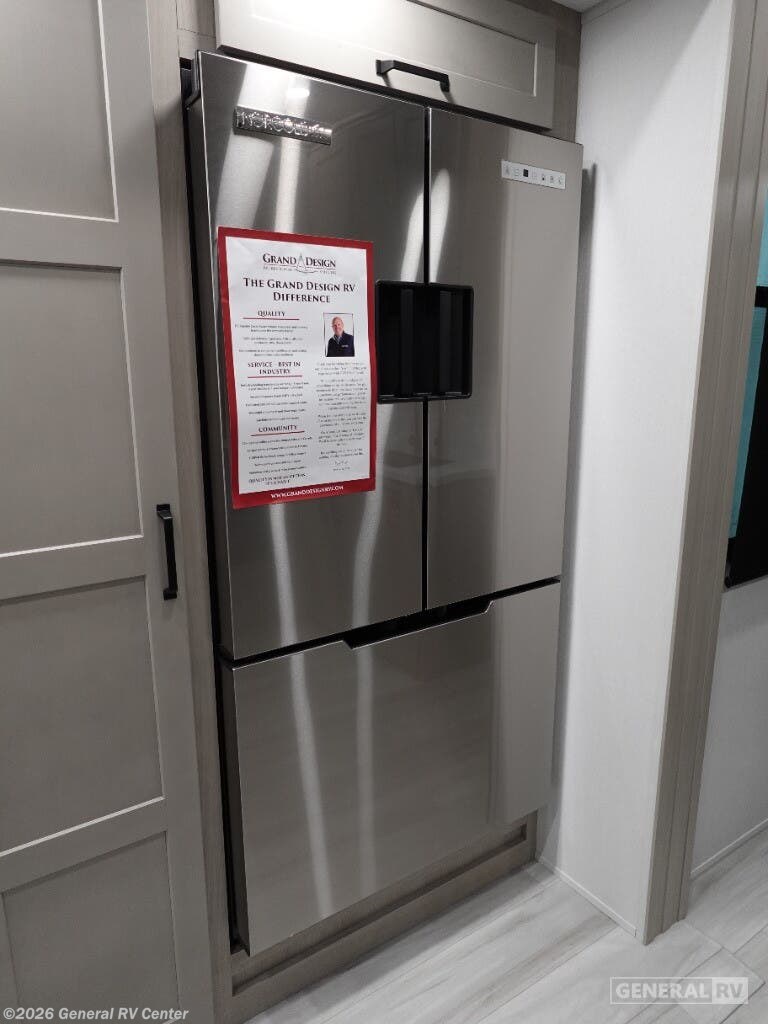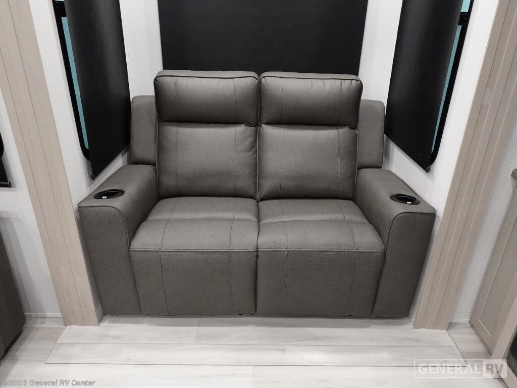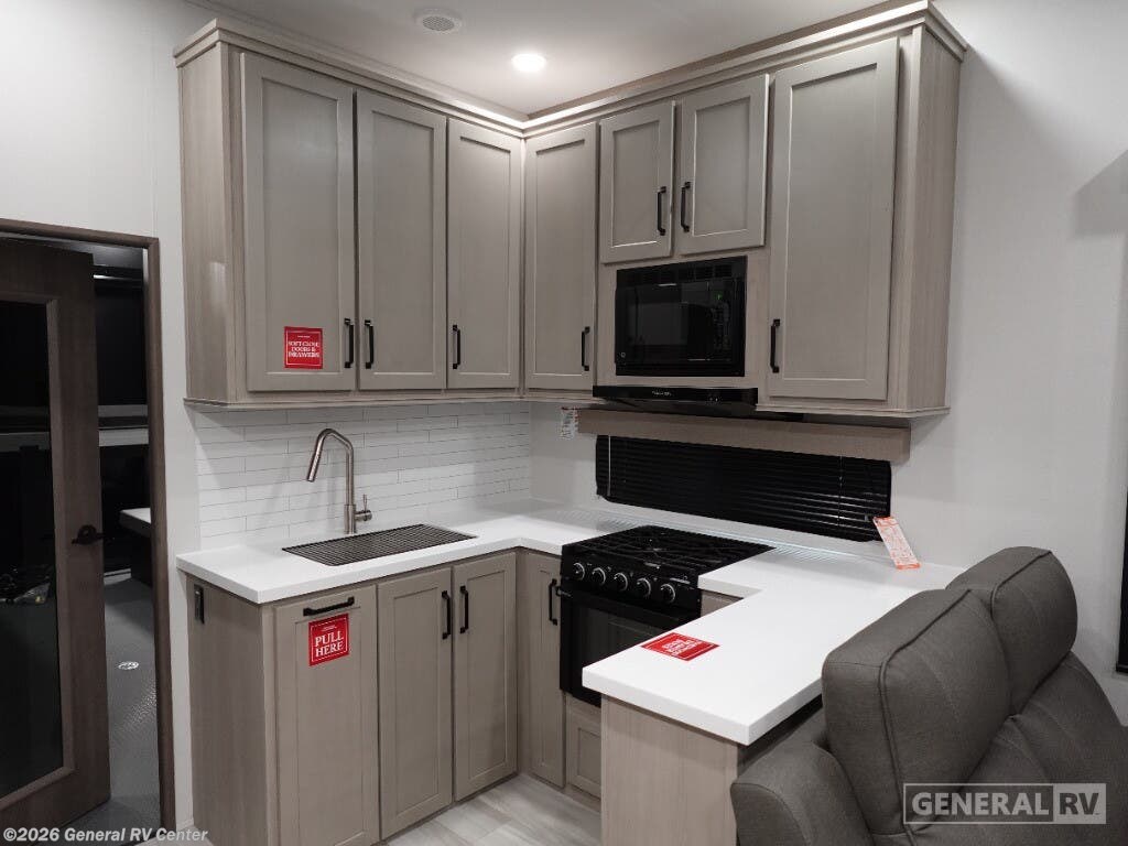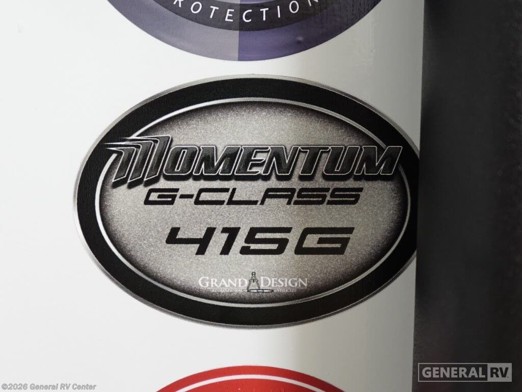 Discover the 2026 Grand Design Momentum G-Class 415G, a luxurious haven on wheels designed for those who crave adventure without sacrificing comfort. This RV is a masterpiece of thoughtful design and engineering, boasting a spacious layout that comfortably sleeps six. With a king-size bed in the master suite, a cozy queen bed, and a convertible option, everyone will find their perfect spot to unwind after a day of exploration. The heart of this RV is its center kitchen, equipped with a full-size electric refrigerator and a three-burner cooktop, making meal preparation a breeze. The Momentum G-Class 415G is built for both relaxation and entertainment. The center living area features plush theater seating, perfect for enjoying a movie night or simply lounging with your favorite book. The 14-foot garage not only provides ample storage for your toys but also transforms into additional living space with a rollover sofa. Enjoy the great outdoors with the 12-foot powered retractable awning, offering shade and comfort. With a robust fresh water capacity of 98 gallons and a GVWR of 20,000 lbs, this RV is ready for extended adventures. For more information or to experience this model firsthand, visit your nearest General RV dealership.
