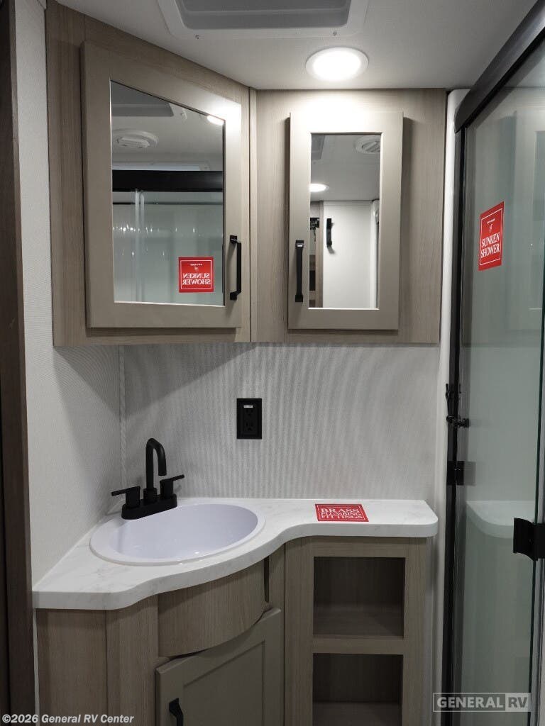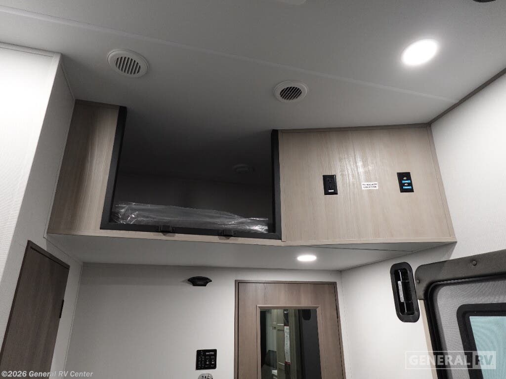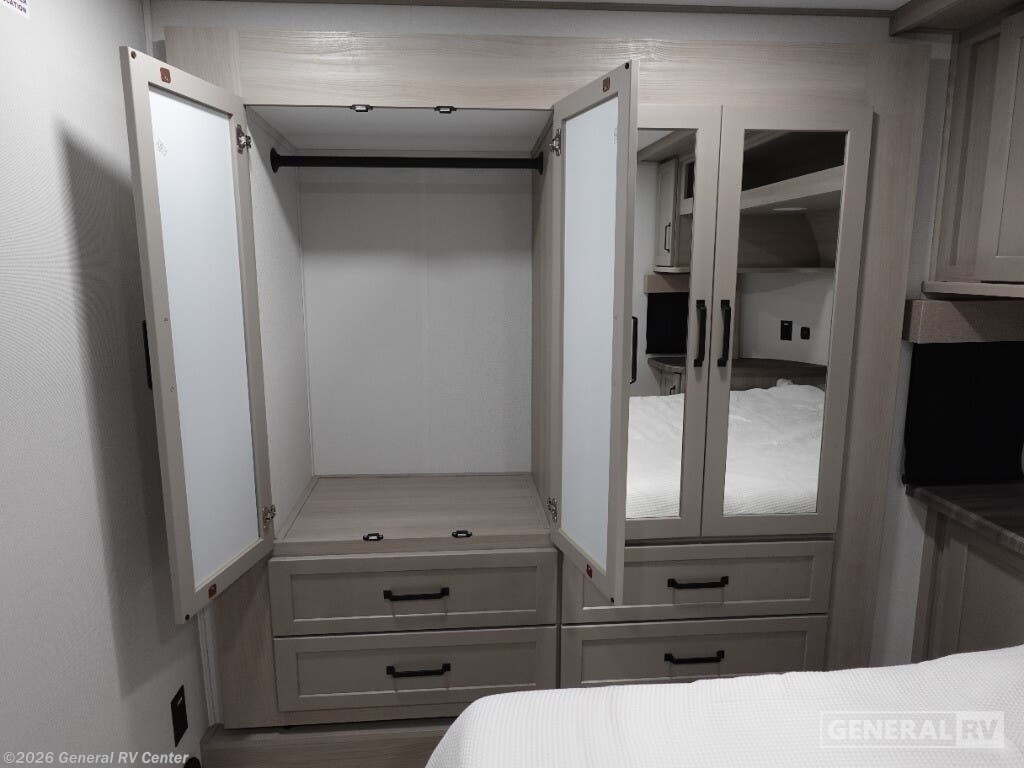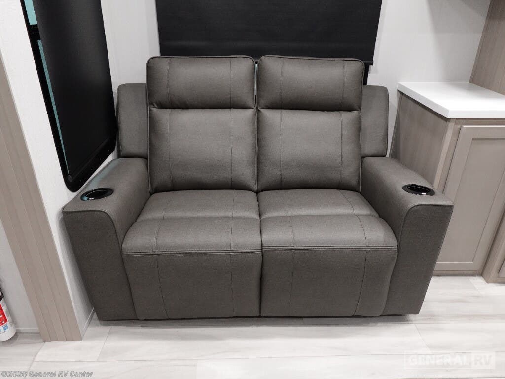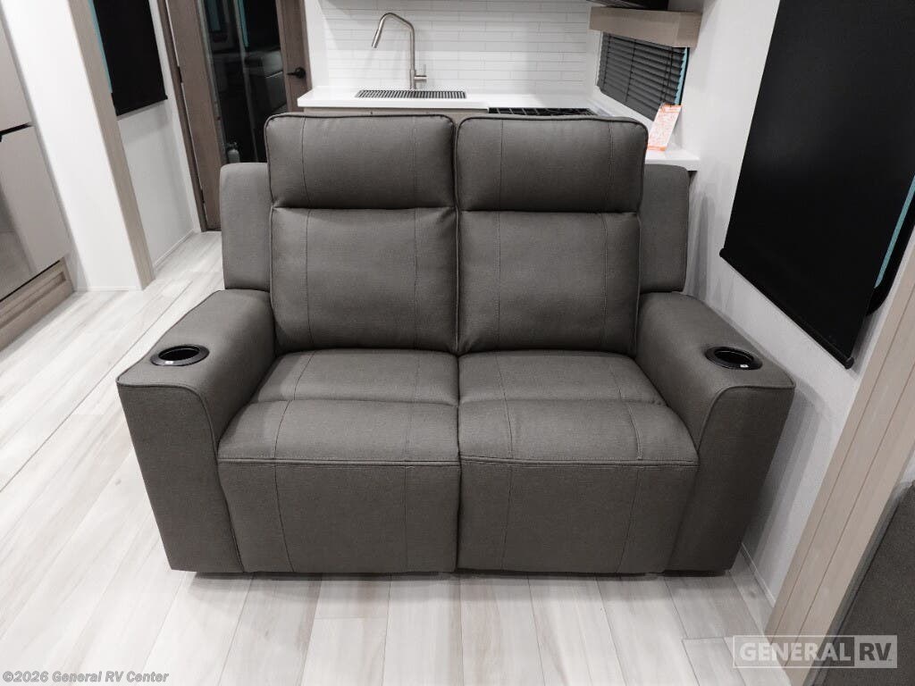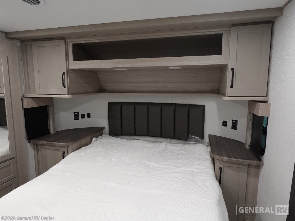 Discover the 2026 Grand Design Momentum G-Class 415G, a luxurious haven on wheels designed for those who crave adventure without sacrificing comfort. This RV is a masterpiece of thoughtful design and engineering, boasting a spacious layout that comfortably sleeps six. With a king-size bed in the master suite, a cozy queen bed, and a convertible option, everyone will find their perfect spot to unwind after a day of exploration. The heart of this RV is its center kitchen, equipped with a full-size electric refrigerator and a three-burner cooktop, making meal preparation a breeze. The Momentum G-Class 415G is built for both relaxation and entertainment. The center living area features plush theater seating, perfect for enjoying a movie night or simply lounging with your favorite book. The 14-foot garage not only provides ample storage for your toys but also transforms into additional living space with a rollover sofa. Enjoy the great outdoors with the 12-foot powered retractable awning, offering shade and comfort. With a robust fresh water capacity of 98 gallons and a GVWR of 20,000 lbs, this RV is ready for extended adventures. For more information or to experience this model firsthand, visit your nearest General RV dealership.