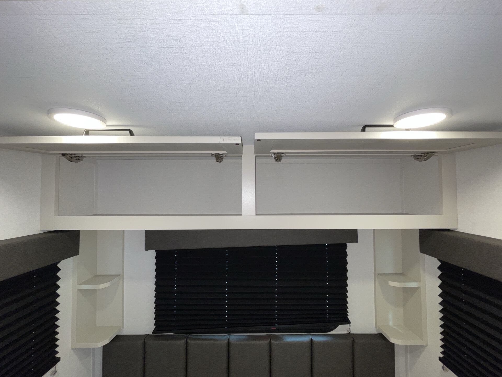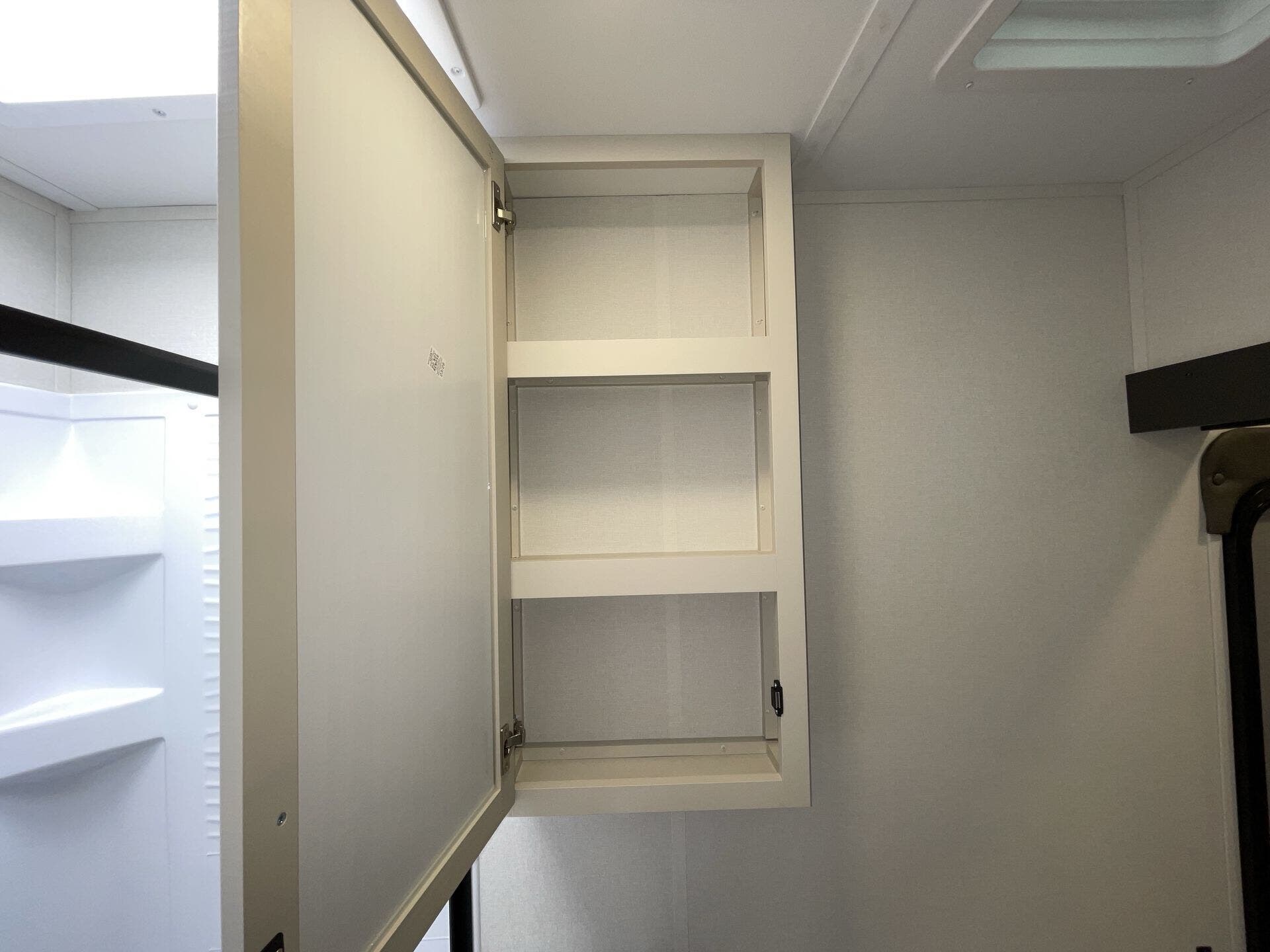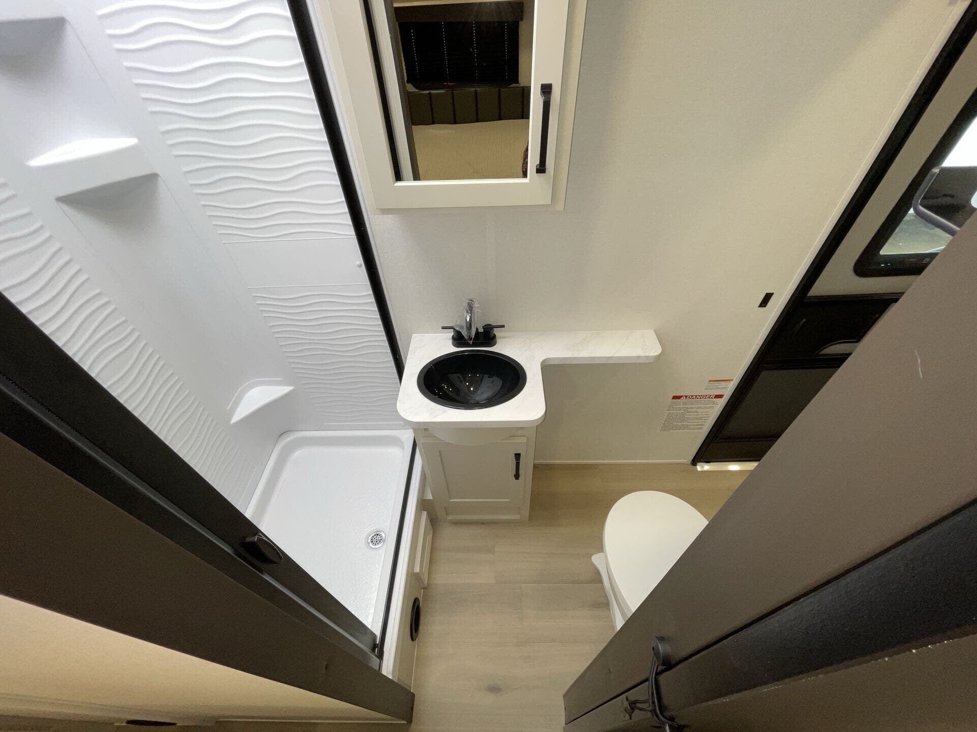 Kitchen Sink, Medicine Cabinet, Overhead Cabinetry, Queen Bed, Roof Vents, Shower, Sofa Bed, Toilet -