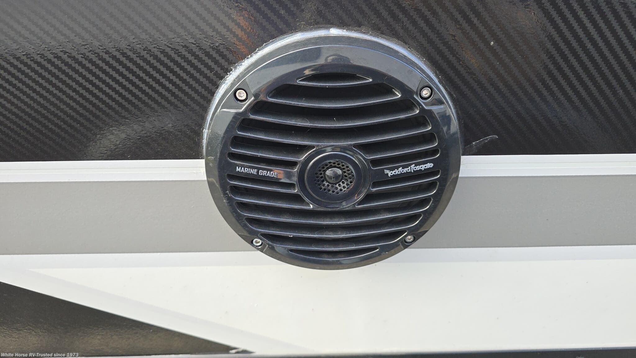 Awning, Exterior Speakers, Ladder, Leveling Jacks, Outside Entertainment Center, Power Roof Vent, Skylight, Slideout, Spare Tire Kit -