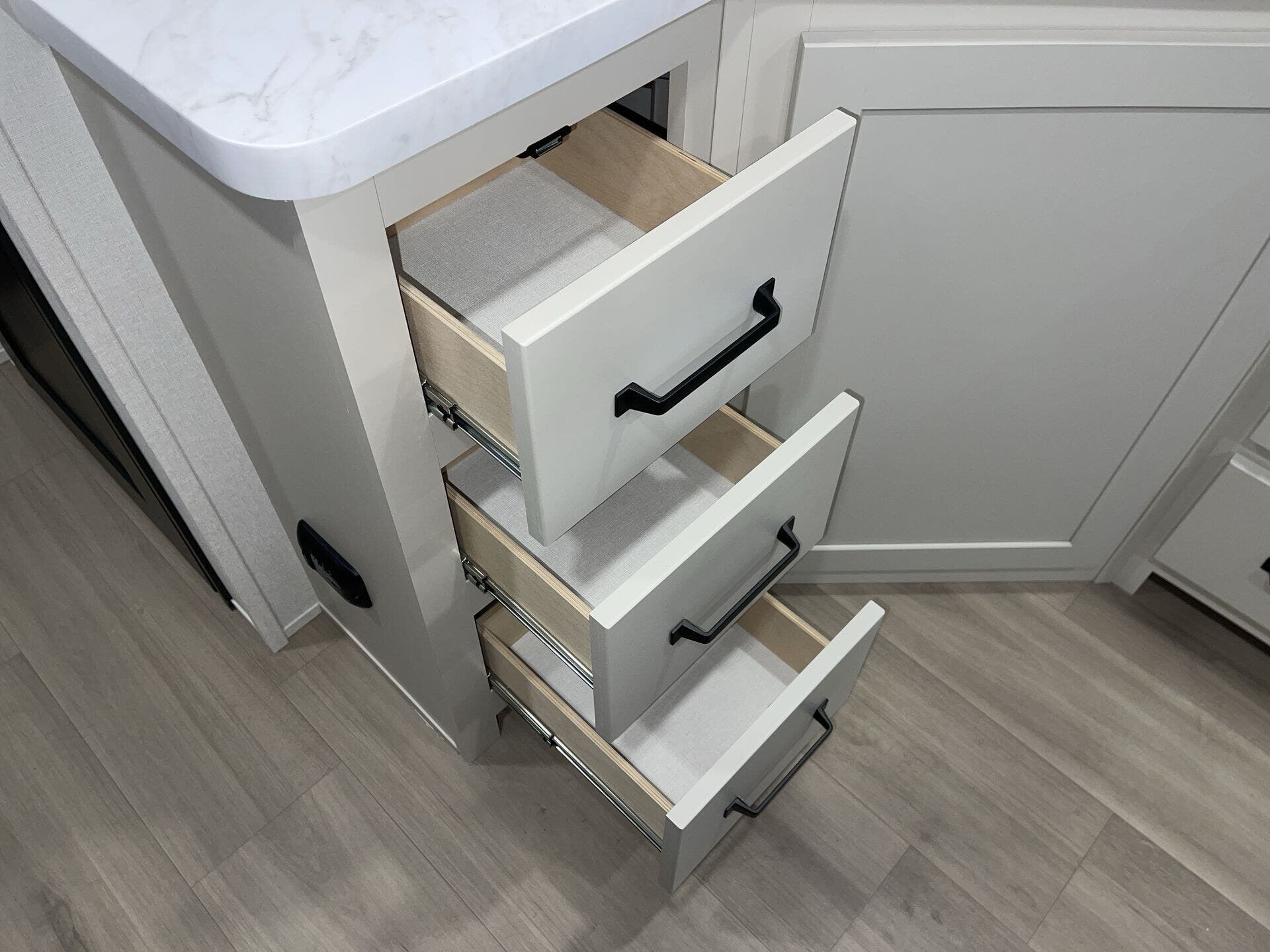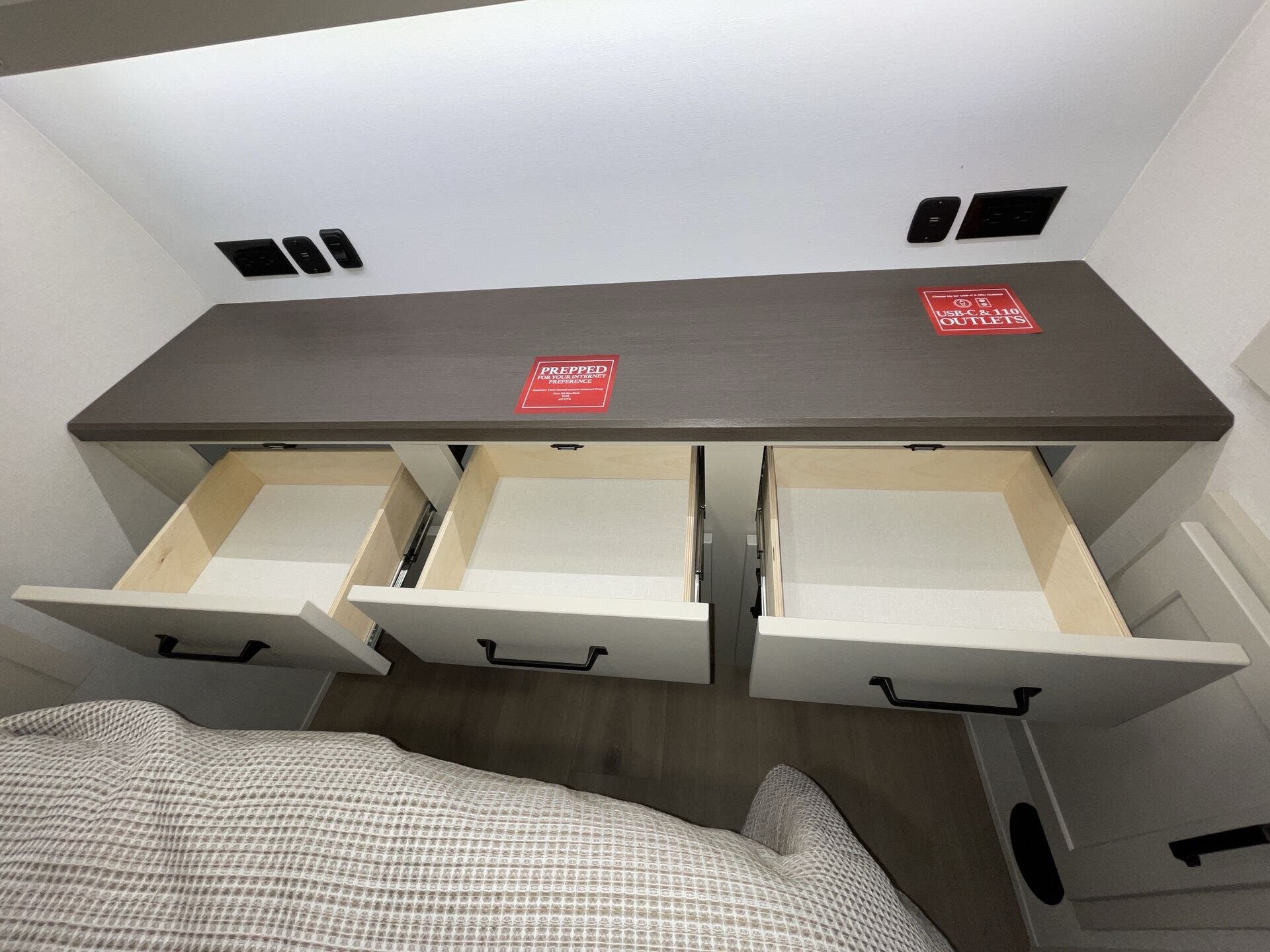 - Power leveling jacks and a power awning for quick setup and outdoor living