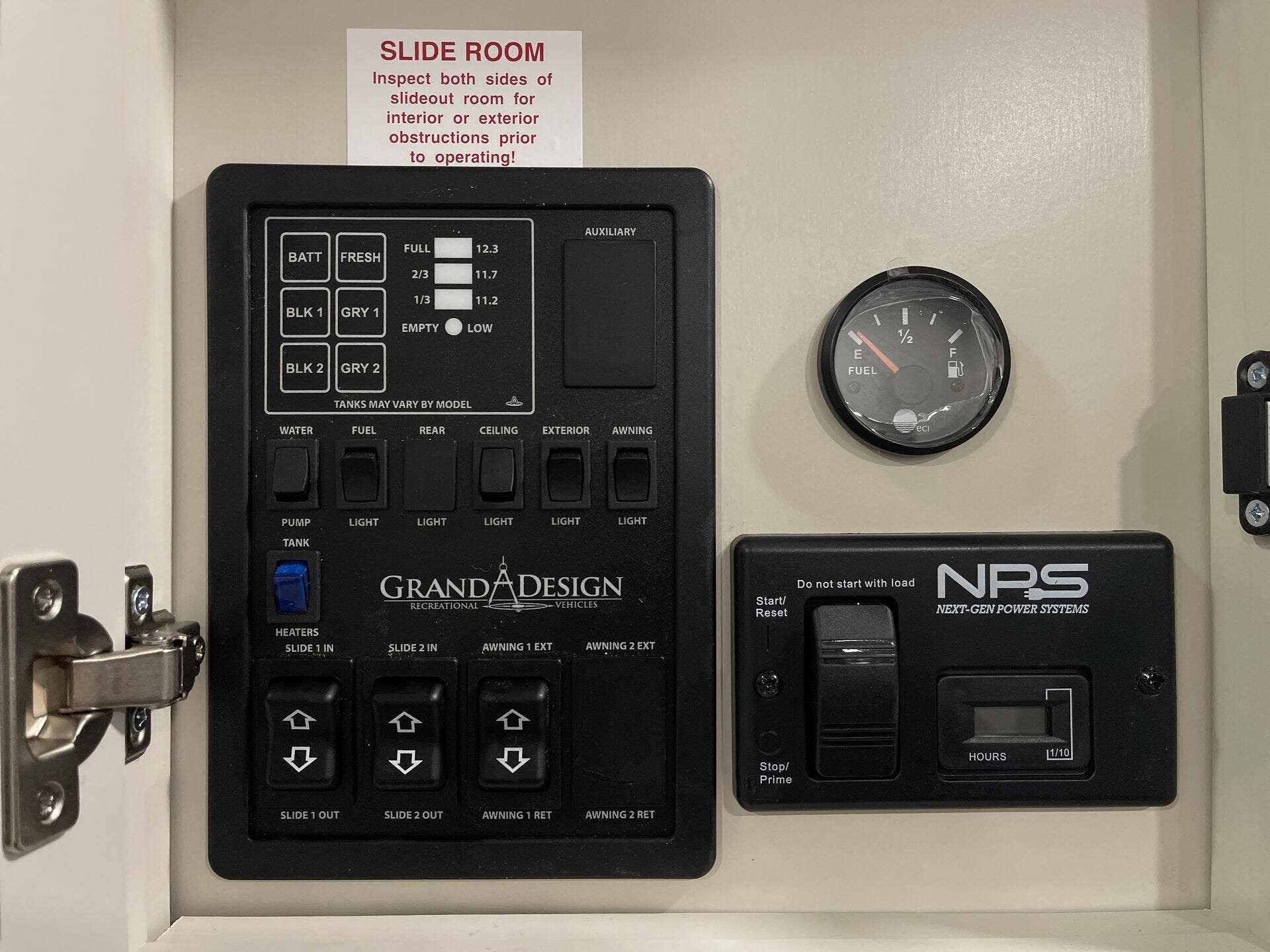 - Essential safety and monitoring: CO detector, LP detector, smoke detector, and fire extinguisher