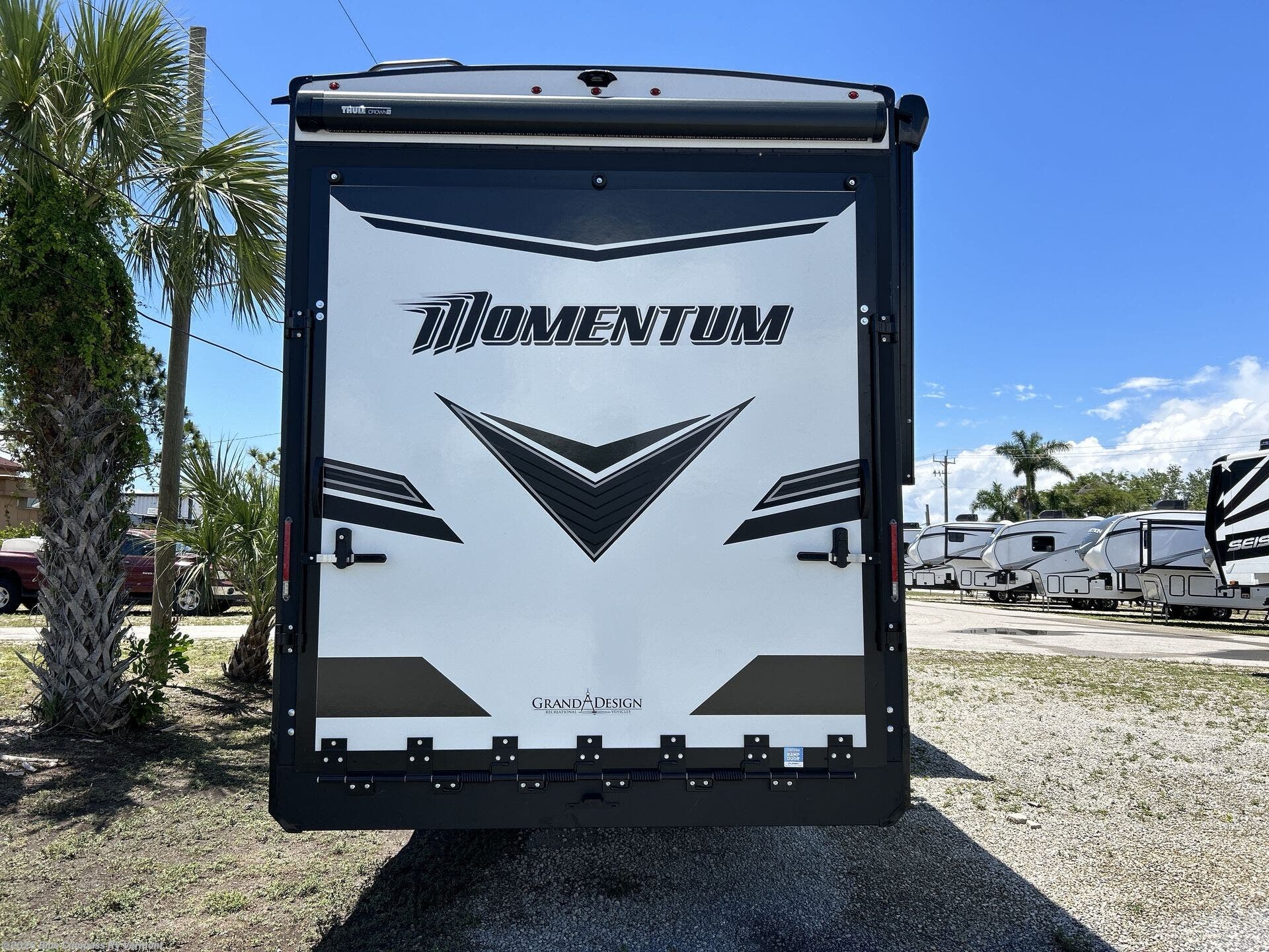 Are you looking for adventure and fun? The Momentum G-Class toy hauler by Grand Design will help you find it! You can explore during any season you choose with the Insulation Package that includes a heated and enclosed underbelly with suspended tanks, a high-capacity furnace, a moisture barrier floor enclosure, and cabinet-mounted heat ducts. Each model includes a fuel station with an interior and exterior gauge, a dovetail rear rend, and 2,500-LB tie-downs anchored into the chassis. Throughout the Momentum G-Class interior, you'll enjoy many comfortable features like large panoramic windows, a shower skylight, USB chargers in the bedroom, and residential cabinetry.