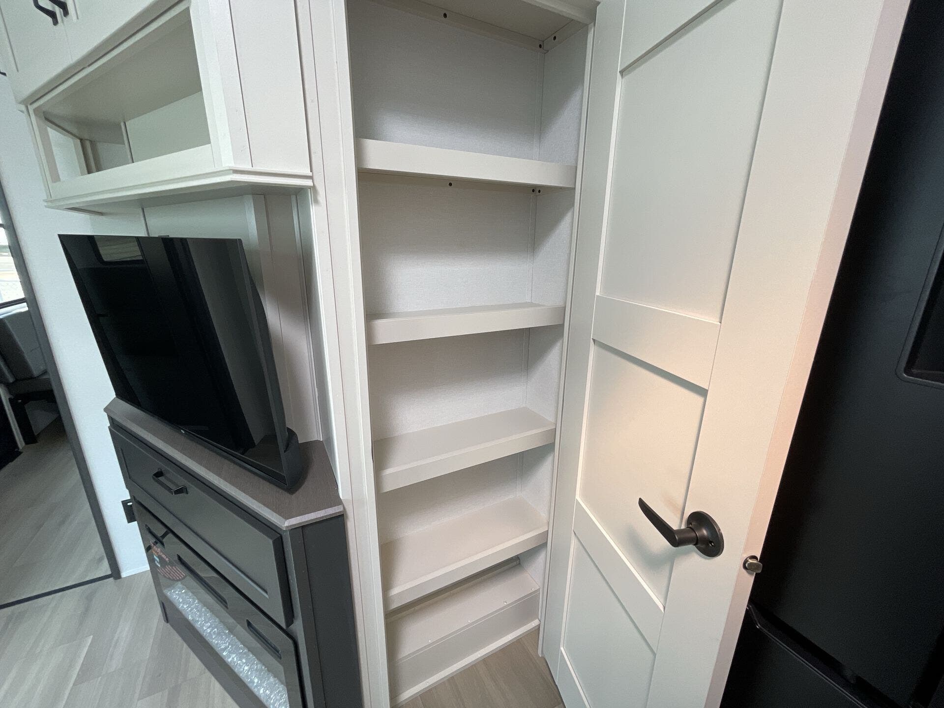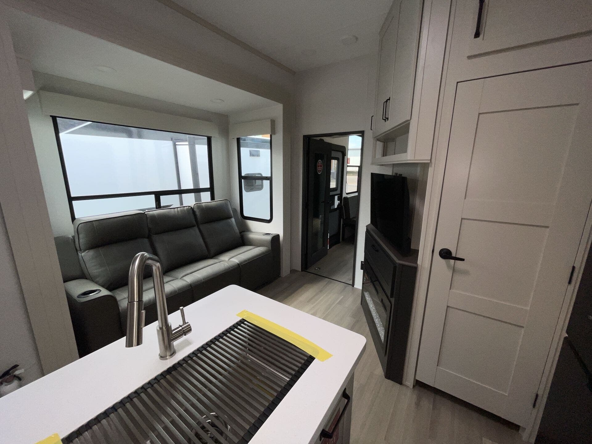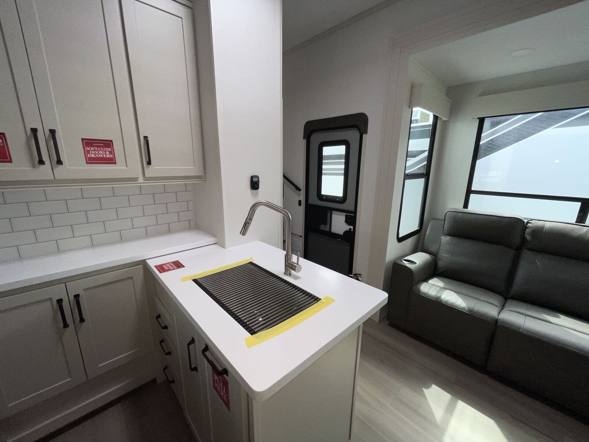 When it’s time to unwind, the private front master suite offers a queen bed (with king option), spacious wardrobe, and direct access to the full bathroom with a large shower and premium fixtures. Built with Grand Design’s renowned quality, including an insulated all-season package and heavy-duty frame, the Momentum G-Class 350G ensures comfort and durability no matter where the road leads. It’s the perfect choice for thrill-seekers who want to take on big adventures while enjoying big comfort.