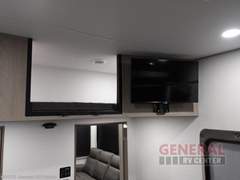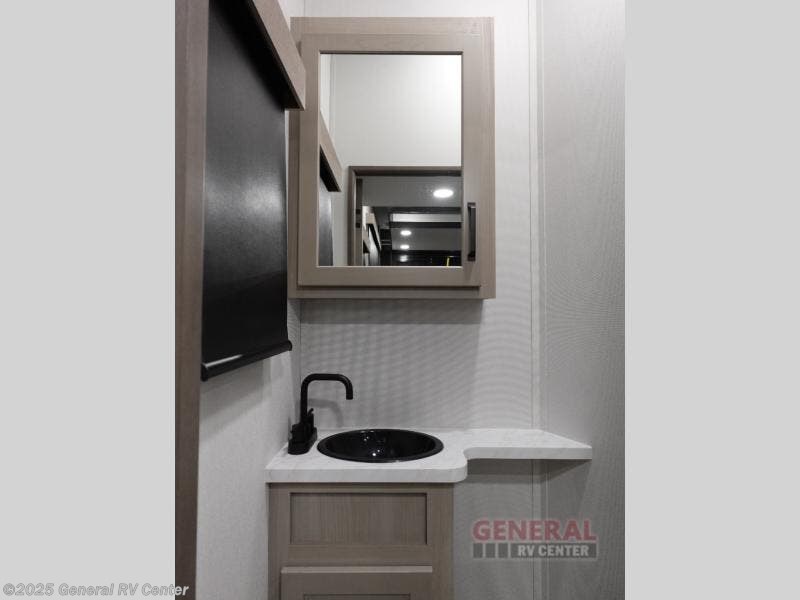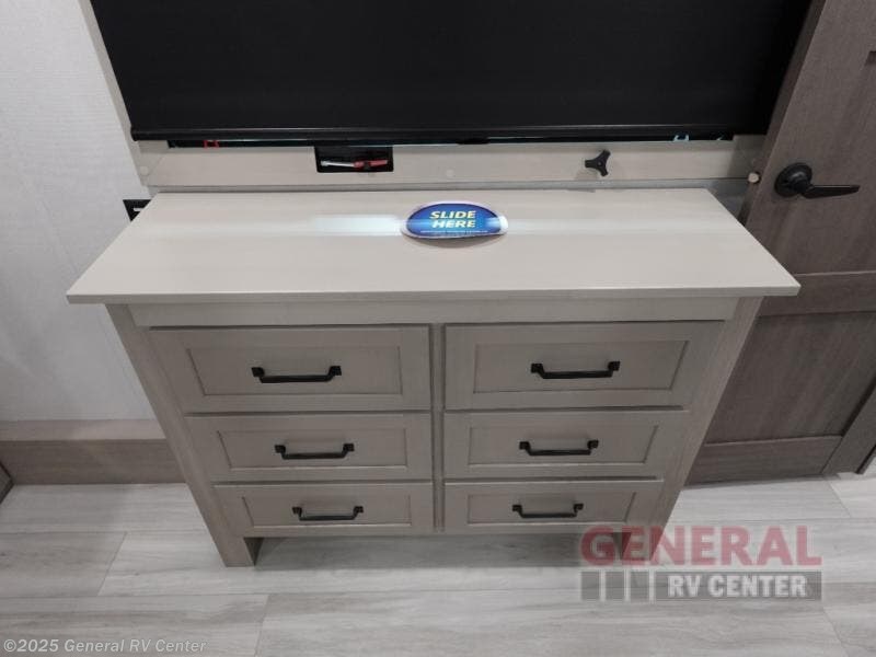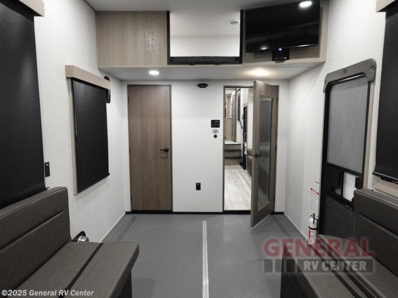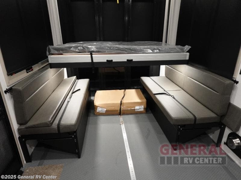 Traveling with friends and family can be comfortable when you have a full double entry bathroom and a half bath available when camping and enjoying the trails on your off-road toys! You will have an 15' garage space that can become a second living/dining area as well as a bedroom if you add the optional Liftsuite System. There is an overhead loft bed and a four-seat sofa slide for more sleeping space in the main living area. Everyone can watch the LED TV when waiting for dinner, and enjoy the fireplace on those chiller nights. The kitchen island offers a sink to wash dishes, extra counter space for serving meals and two stools to dine at. The cook will love all the upgraded appliances and the space thanks to the slide. The front bedroom gives you a king bed slide, lots of clothing space, and a slide top dresser for even more storage.