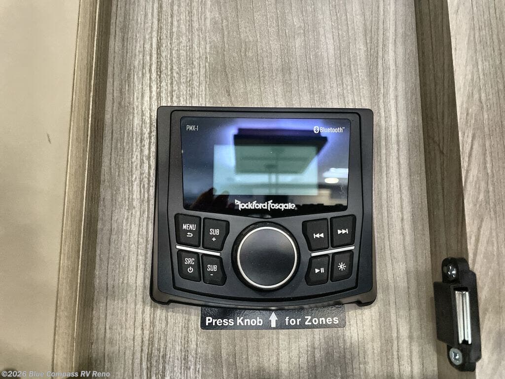 You want a toy hauler to carry your toys to the trails, and include many at-home comforts, and that's just what this unit delivers. A 14' separate garage includes an adjustable tie-down system, an optional Lifesuite System for more sleeping space, an optional half bath, plus washer and dryer prep. There is an overhead loft bed and an L-shaped sofa with recline in the main living area that offers sleeping space as well. Everyone can watch a movie on the LED TV with a fireplace below while sitting on the sofa, in the theatre seats, or while at the free standing dinette with four chairs. The chef will have upgraded appliances to make meals for everyone, an L-shaped countertop with a kitchen sink, and a USB charging outlet. You will love the shower with seat in the full bathroom with two space savings sliding doors that lead into the hallway, and into the front bedroom where you will have a walk-around queen bed, a slide out wardrobe and more USB charging outlets.