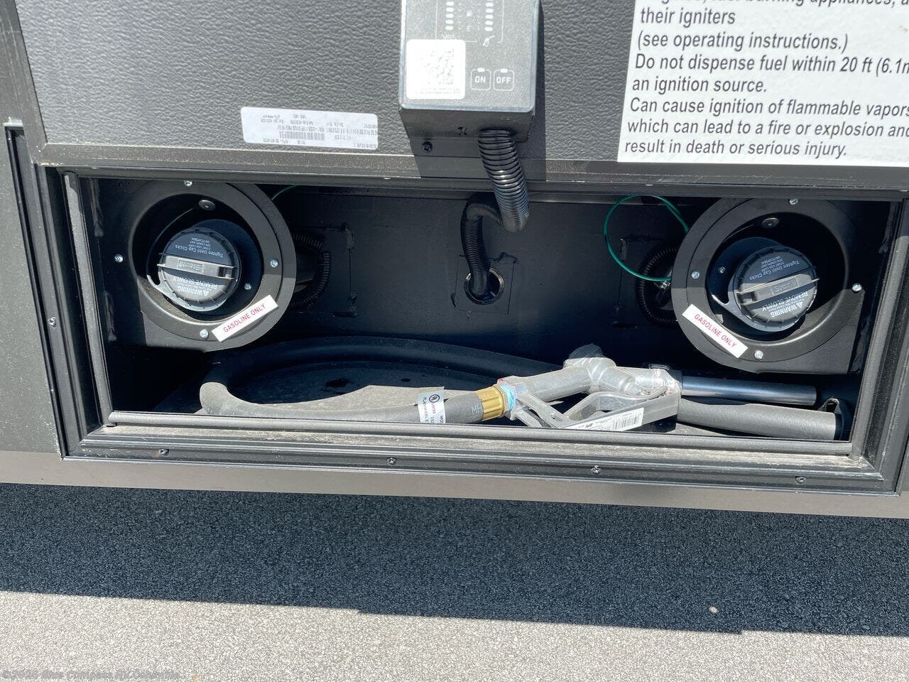 You want a toy hauler to carry your toys to the trails, and include many at-home comforts, and that's just what this unit delivers. A 14' separate garage includes an adjustable tie-down system, an optional Lifesuite System for more sleeping space, an optional half bath, plus washer and dryer prep. There is an overhead loft bed and an L-shaped sofa with recline in the main living area that offers sleeping space as well. Everyone can watch a movie on the LED TV with a fireplace below while sitting on the sofa, in the theatre seats, or while at the free standing dinette with four chairs. The chef will have upgraded appliances to make meals for everyone, an L-shaped countertop with a kitchen sink, and a USB charging outlet. You will love the shower with seat in the full bathroom with two space savings sliding doors that lead into the hallway, and into the front bedroom where you will have a walk-around queen bed, a slide out wardrobe and more USB charging outlets.