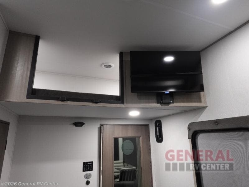 You want a toy hauler to carry your toys to the trails, and include many at-home comforts, and that's just what this unit delivers. A 14' separate garage includes an adjustable tie-down system, an optional Lifesuite System for more sleeping space, an optional half bath, plus washer and dryer prep. There is an overhead loft bed and an L-shaped sofa with recline in the main living area that offers sleeping space as well. Everyone can watch a movie on the LED TV with a fireplace below while sitting on the sofa, in the theatre seats, or while at the free standing dinette with four chairs. The chef will have upgraded appliances to make meals for everyone, an L-shaped countertop with a kitchen sink, and a USB charging outlet. You will love the shower with seat in the full bathroom with two space savings sliding doors that lead into the hallway, and into the front bedroom where you will have a walk-around queen bed, a slide out wardrobe and more USB charging outlets.