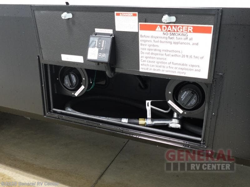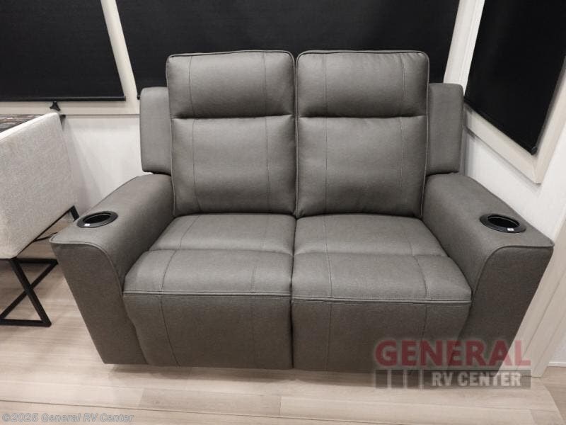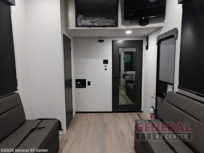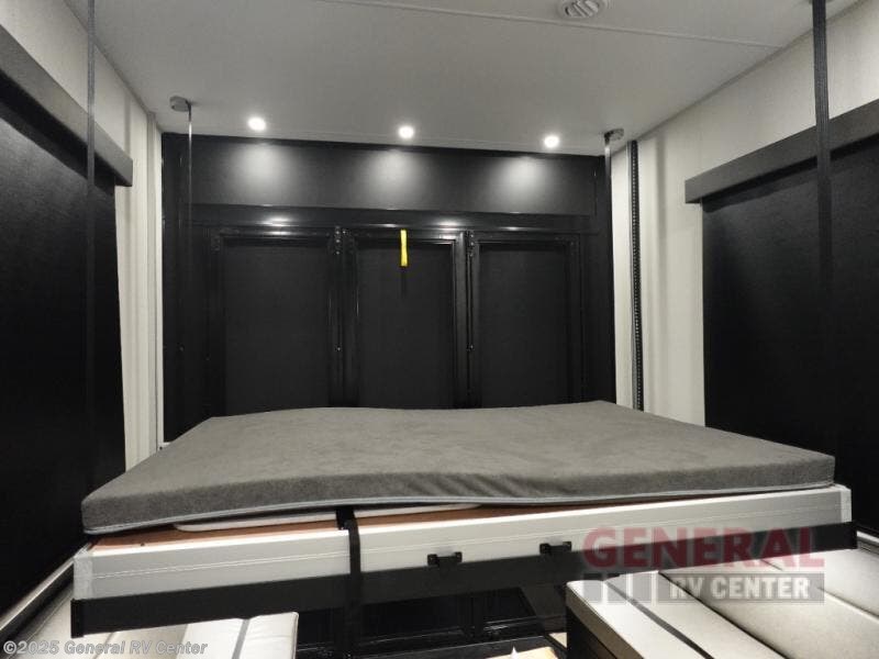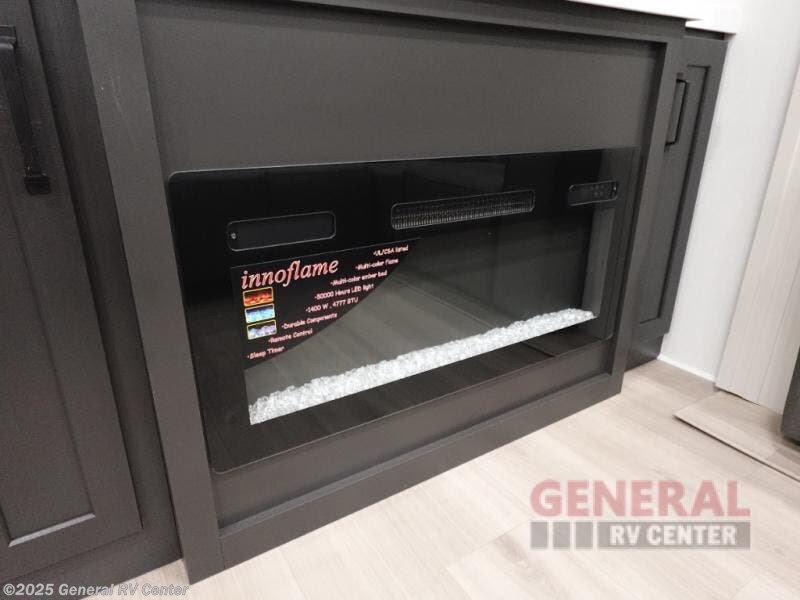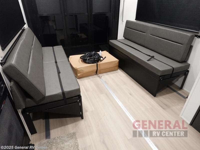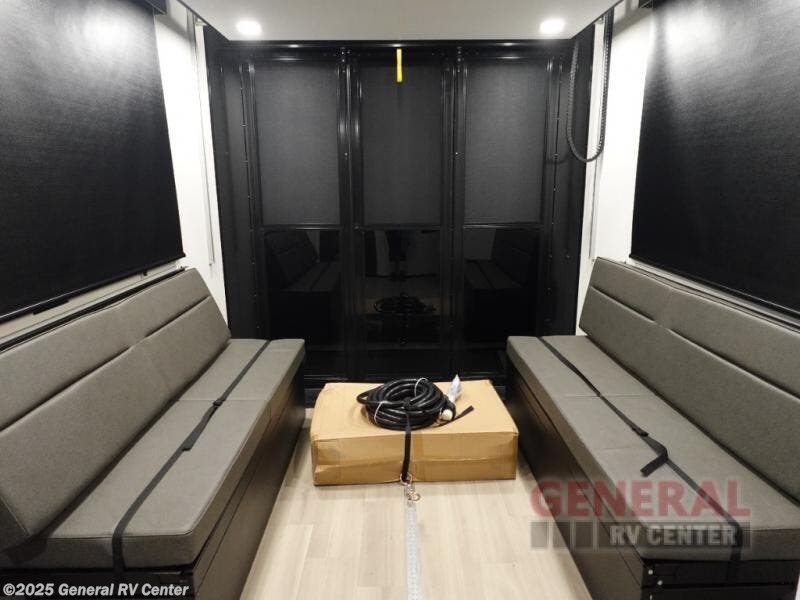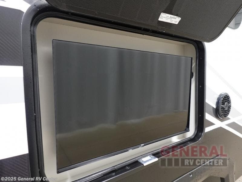 You want a toy hauler to carry your toys to the trails, and include many at-home comforts, and that's just what this unit delivers. A 14' separate garage includes an adjustable tie-down system, an optional Lifesuite System for more sleeping space, an optional half bath, plus washer and dryer prep. There is an overhead loft bed and an L-shaped sofa with recline in the main living area that offers sleeping space as well. Everyone can watch a movie on the LED TV with a fireplace below while sitting on the sofa, in the theatre seats, or while at the free standing dinette with four chairs. The chef will have upgraded appliances to make meals for everyone, an L-shaped countertop with a kitchen sink, and a USB charging outlet. You will love the shower with seat in the full bathroom with two space savings sliding doors that lead into the hallway, and into the front bedroom where you will have a walk-around king bed, a slide out wardrobe and more USB charging outlets.
