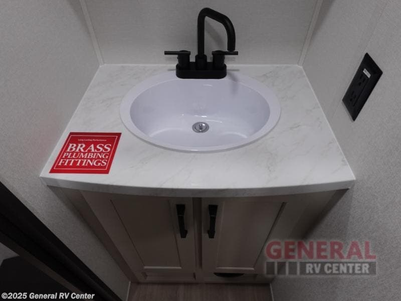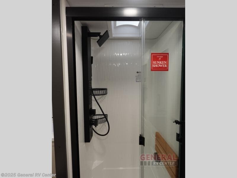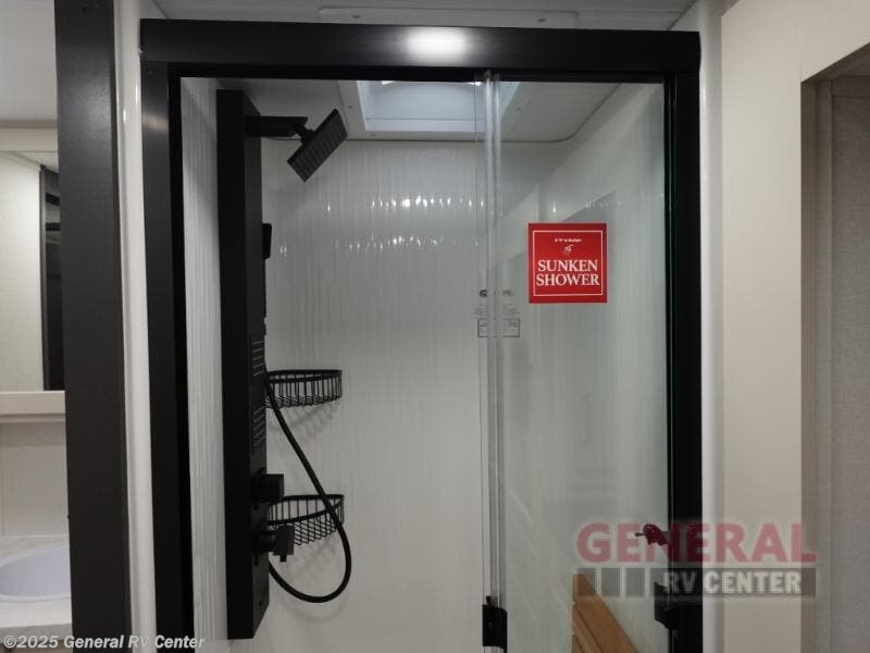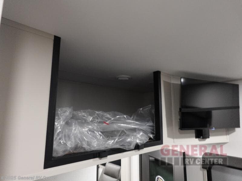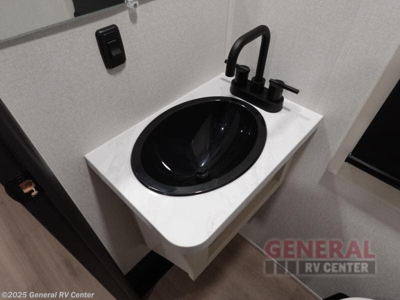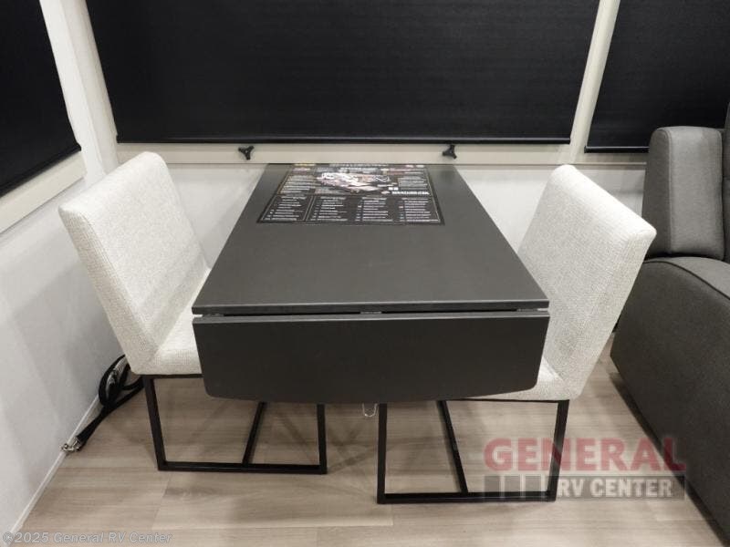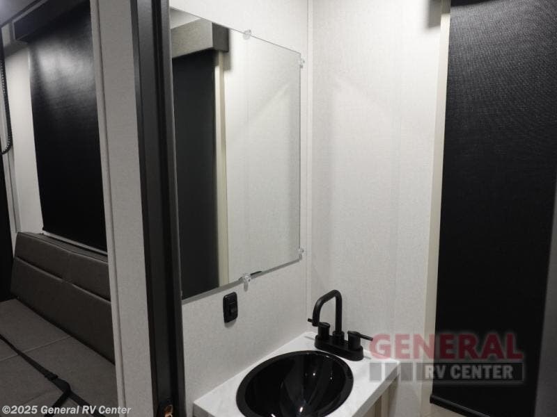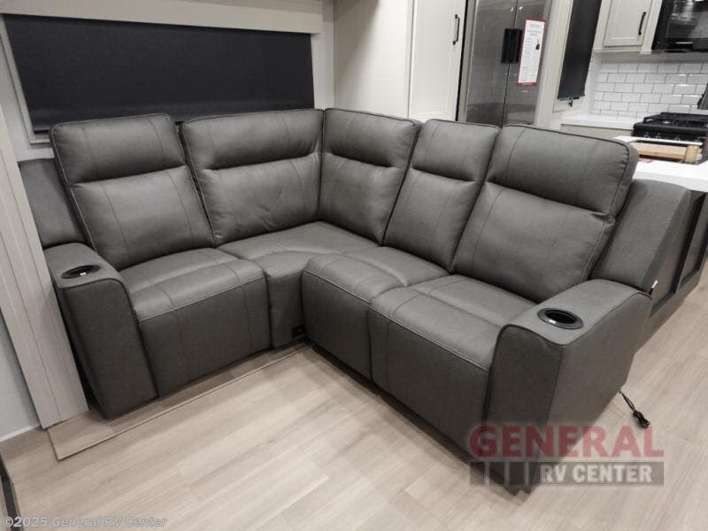 You want a toy hauler to carry your toys to the trails, and include many at-home comforts, and that's just what this unit delivers. A 14' separate garage includes an adjustable tie-down system, an optional Lifesuite System for more sleeping space, an optional half bath, plus washer and dryer prep. There is an overhead loft bed and an L-shaped sofa with recline in the main living area that offers sleeping space as well. Everyone can watch a movie on the LED TV with a fireplace below while sitting on the sofa, in the theatre seats, or while at the free standing dinette with four chairs. The chef will have upgraded appliances to make meals for everyone, an L-shaped countertop with a kitchen sink, and a USB charging outlet. You will love the shower with seat in the full bathroom with two space savings sliding doors that lead into the hallway, and into the front bedroom where you will have a walk-around king bed, a slide out wardrobe and more USB charging outlets.