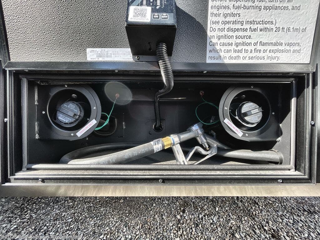 You want a toy hauler to carry your toys to the trails, and include many at-home comforts, and that's just what this unit delivers. A 14' separate garage includes an adjustable tie-down system, an optional Lifesuite System for more sleeping space, an optional half bath, plus washer and dryer prep. There is an overhead loft bed and an L-shaped sofa with recline in the main living area that offers sleeping space as well. Everyone can watch a movie on the LED TV with a fireplace below while sitting on the sofa, in the theatre seats, or while at the free standing dinette with four chairs. The chef will have upgraded appliances to make meals for everyone, an L-shaped countertop with a kitchen sink, and a USB charging outlet. You will love the shower with seat in the full bathroom with two space savings sliding doors that lead into the hallway, and into the front bedroom where you will have a walk-around queen bed, a slide out wardrobe and more USB charging outlets.