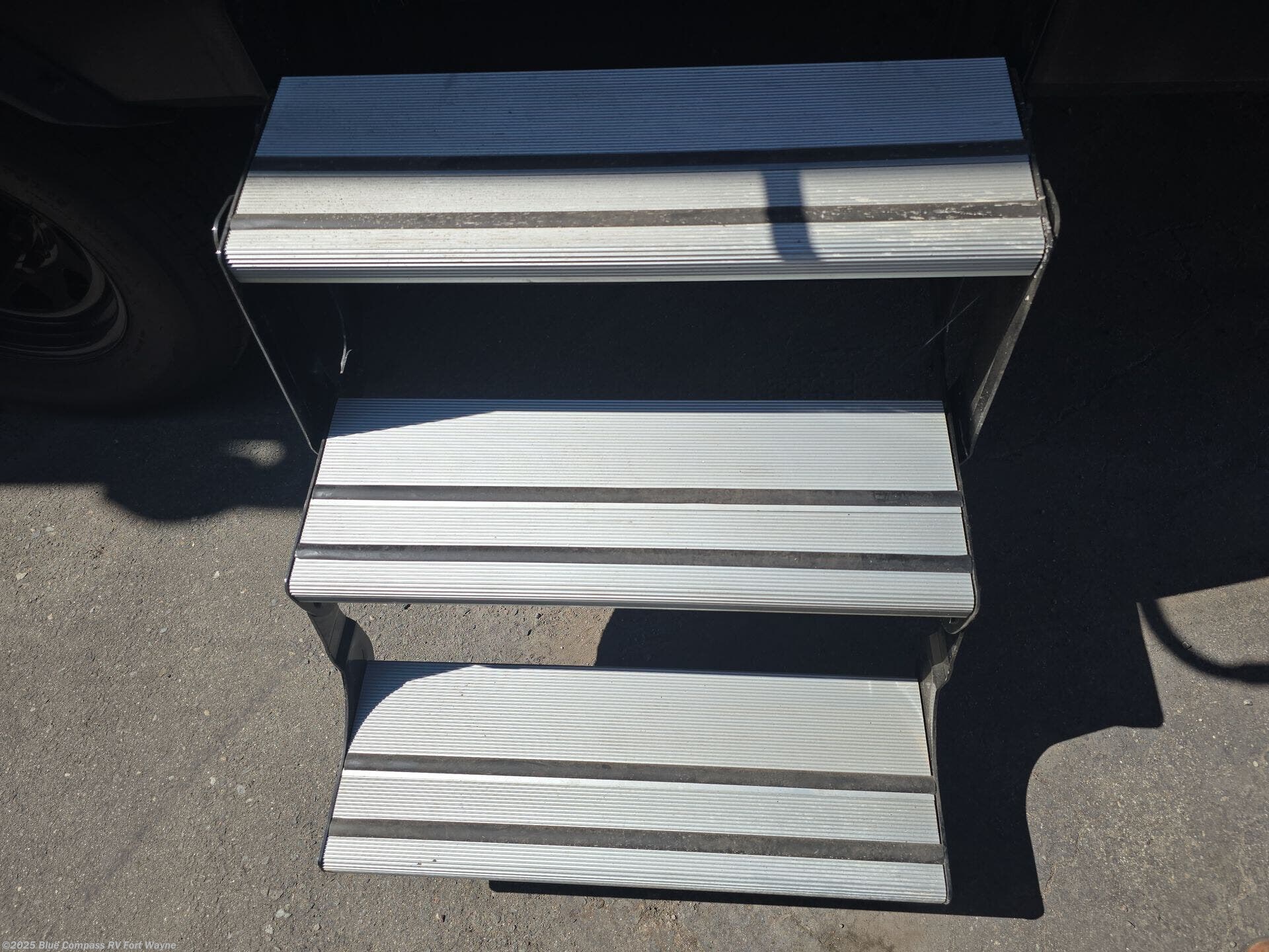 Get ready to take your adventures to the next level with this amazing toy Hauler. A spacious interior features a queen-sized murphy bed, perfect for relaxing after a long day of exploring. A convenient microwave and three-burner cooktop offer endless culinary possibilities, while a 12V 8cu. refrigerator keeps your essentials at the perfect temperature. Ample overhead cabinets provide additional storage for gear, cookware, and more. At the front of this toy hauler, a full bathroom with a closet provides a private retreat, and the ramp door/patio offers easy access to your toys and outdoor living space. Plus, a 13' awning offers shade and protection from the elements.
