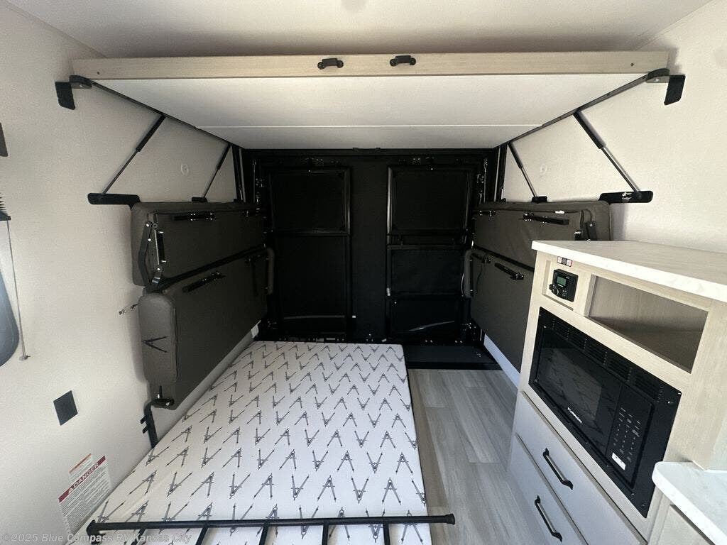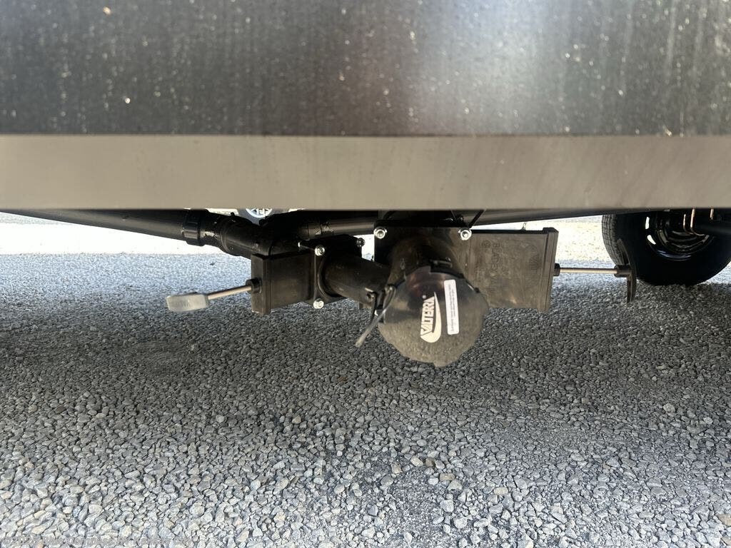 You will love this Momentum MAV toy hauler travel trailer! The front bedroom features a queen bed, and there is plenty of room to walk around. The sliding solid bedroom door helps with space. Overhead storage and a pair of nightstands are convenient storage, plus there is a wardrobe with both drawers and space to hang items. The kitchen offers a microwave, stainless steel sink, and an 8 cu. ft. 12V refrigerator. In the garage, you'll find rollover sofas with a table and a top bed for guests to sleep on. The ramp door/patio will provide additional living space once your toys are unloaded, and the pull down screen will keep bugs out!