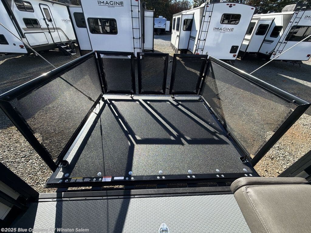 You will love this Momentum MAV toy hauler travel trailer! The front bedroom features a queen bed, and there is plenty of room to walk around. The sliding solid bedroom door helps with space. Overhead storage and a pair of nightstands are convenient storage, plus there is a wardrobe with both drawers and space to hang items. The kitchen offers a microwave, stainless steel sink, and an 8 cu. ft. 12V refrigerator. In the garage, you'll find rollover sofas with a table and a top bed for guests to sleep on. The ramp door/patio will provide additional living space once your toys are unloaded, and the pull down screen will keep bugs out!