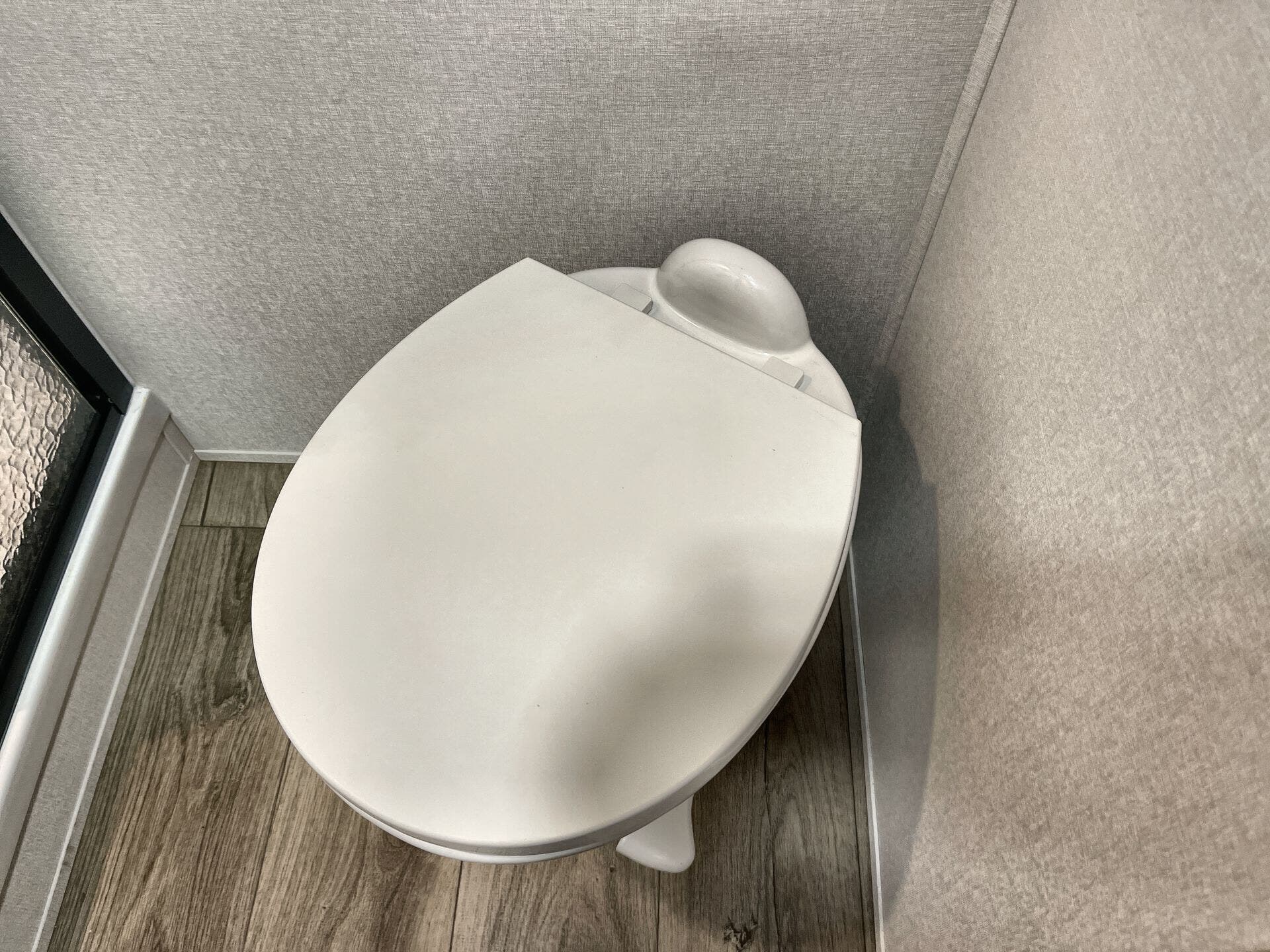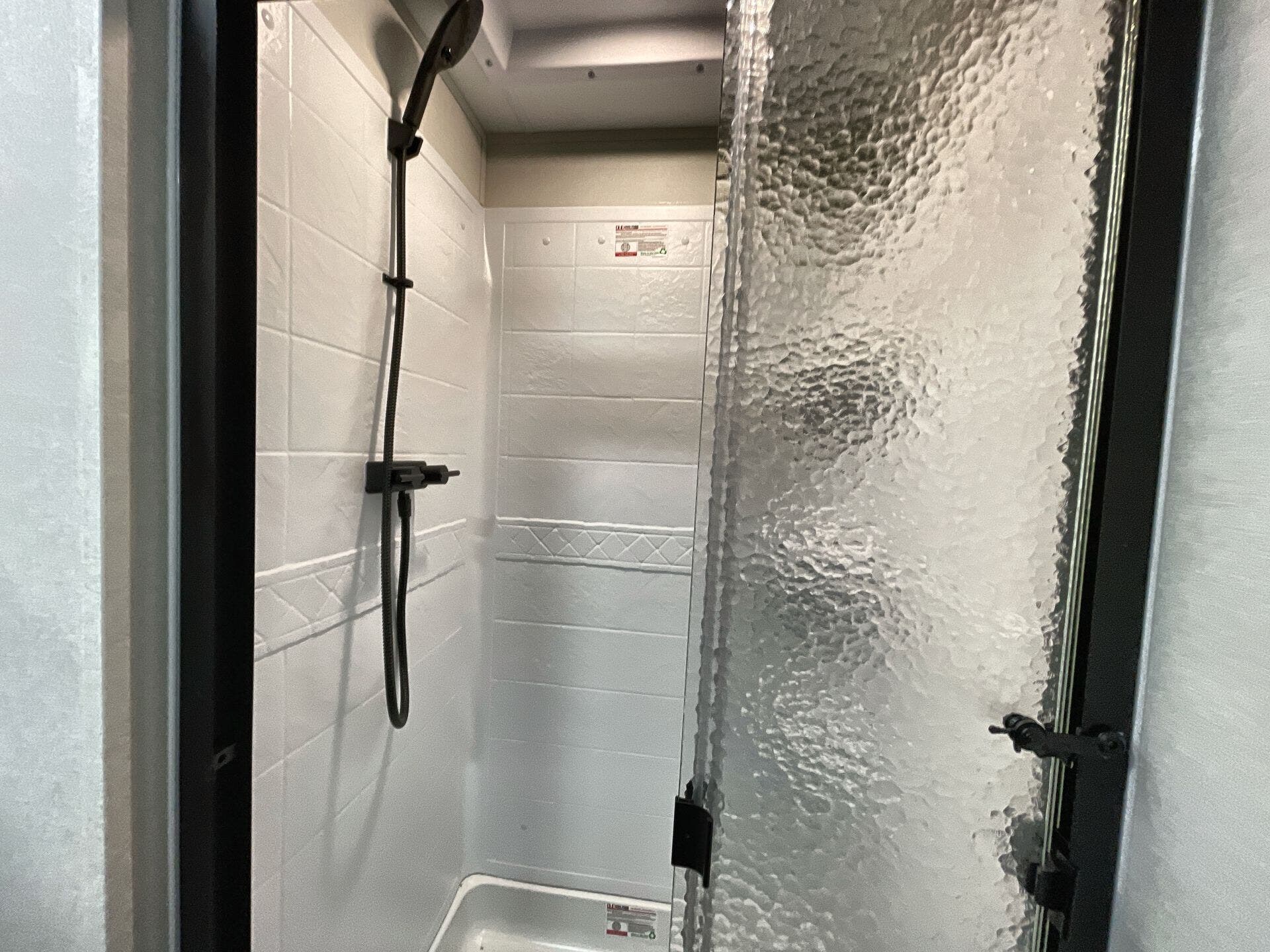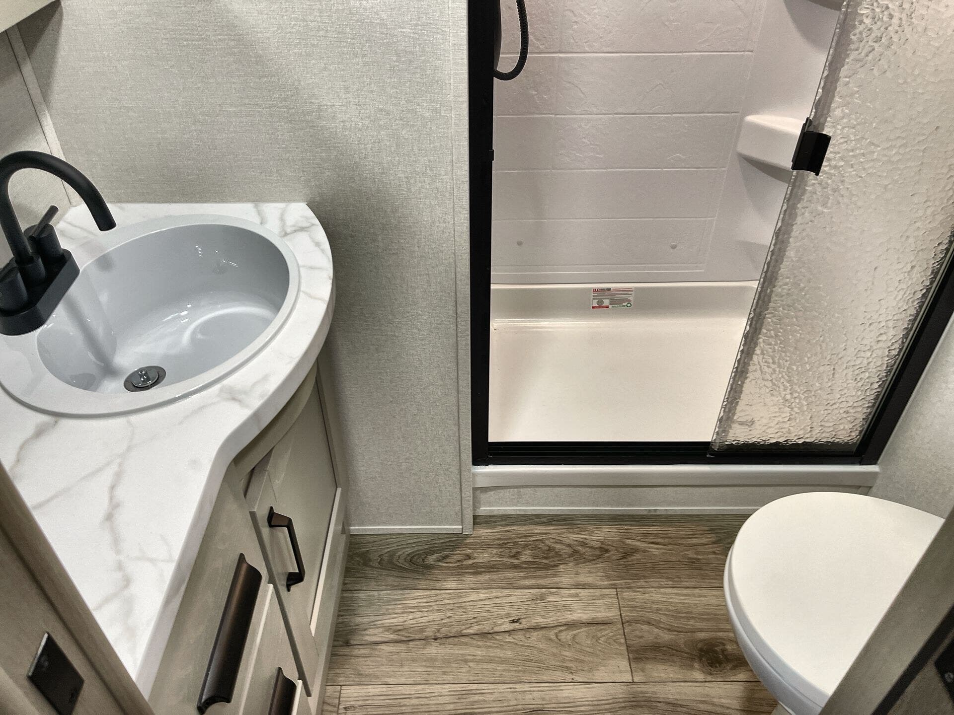 - Queen bed and full bath setup (Shower and Toilet) for restful nights