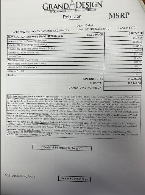 Request More Info on this 2026 Grand Design Reflection 100 22RK Offered for sale by McClain's RV Oklahoma City