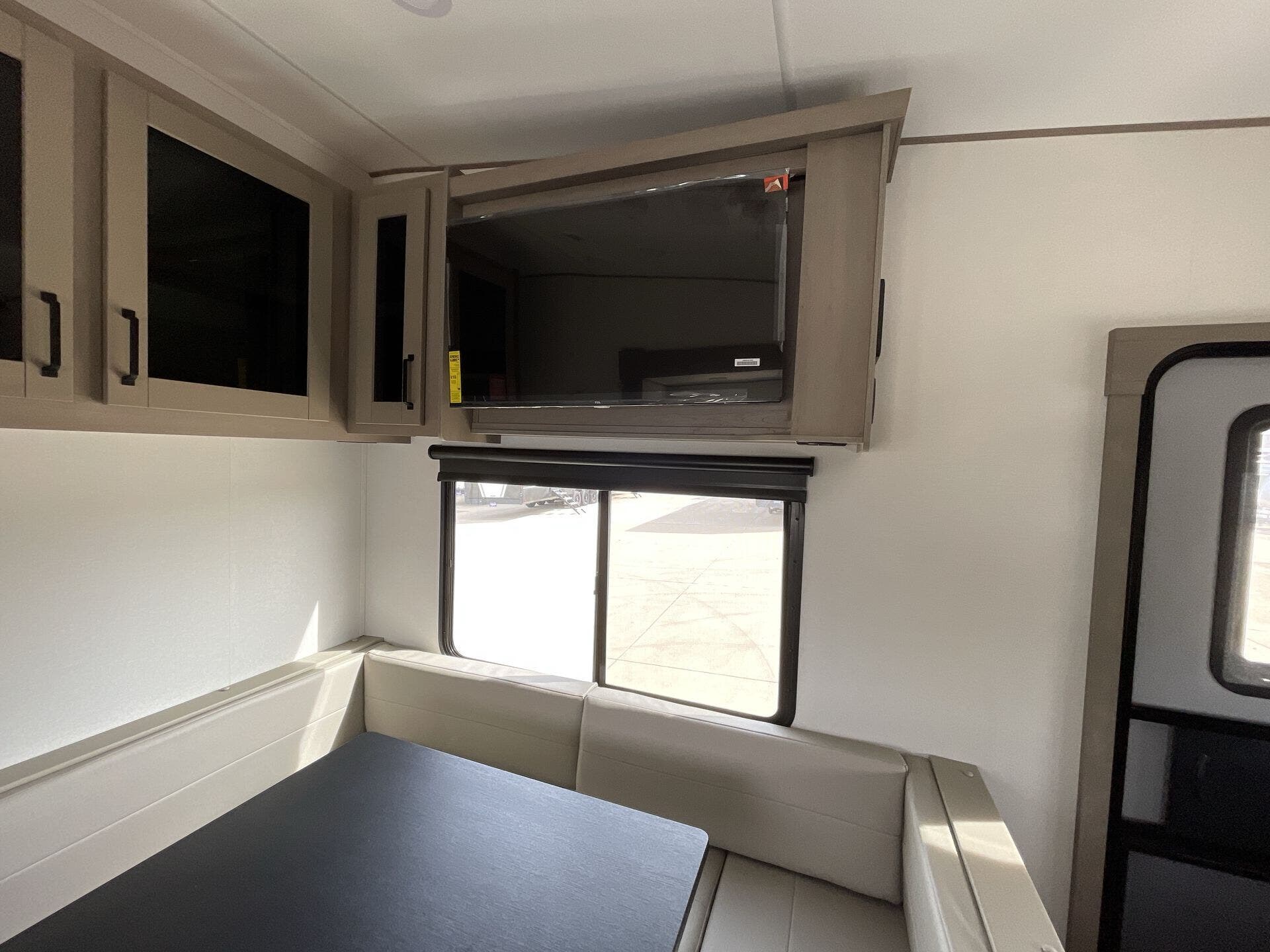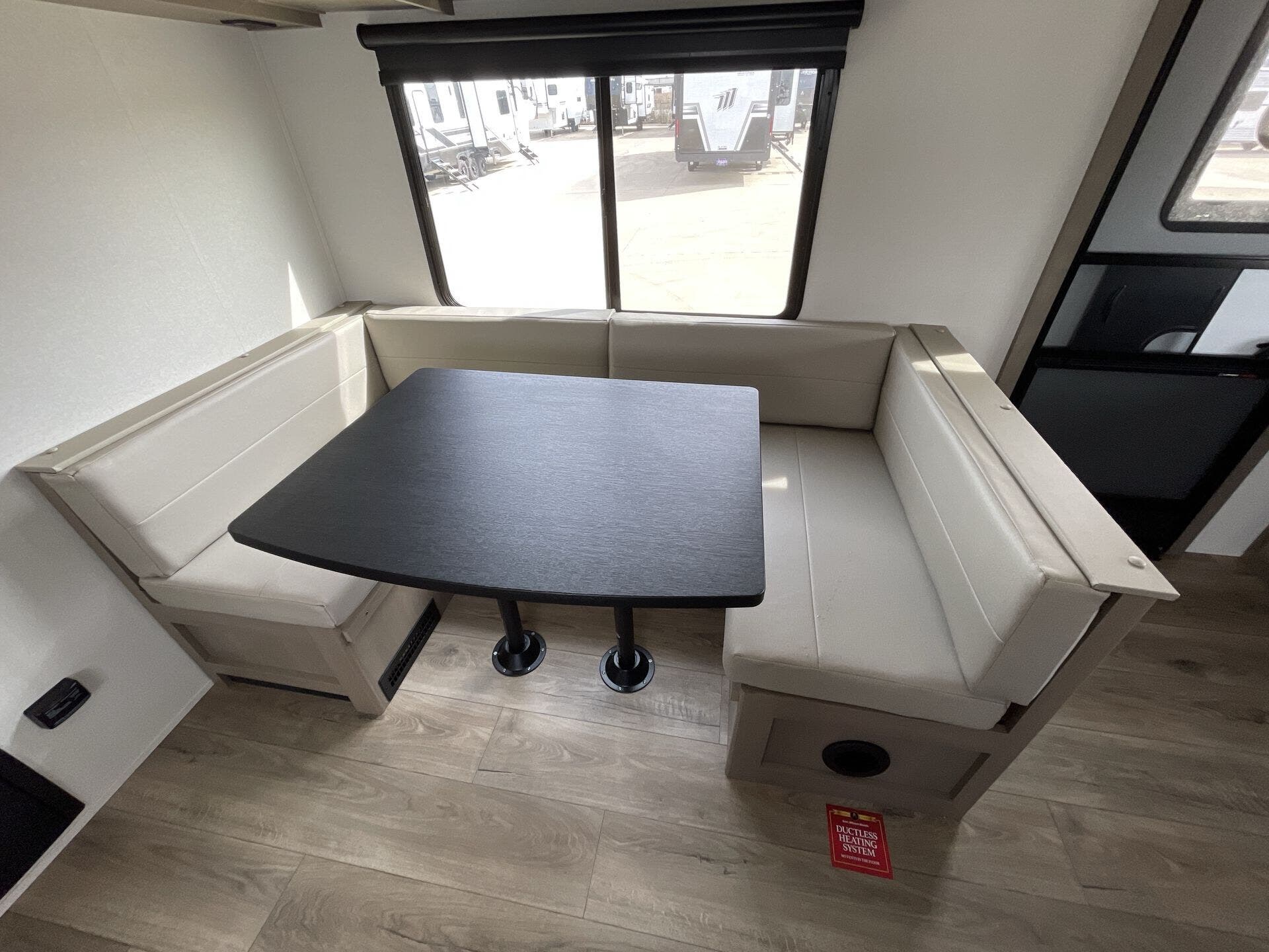 Classification: Towable RV. Floorplan types include Front Bedroom, Mid Bath, Mid Living Area, Rear Kitchen, and a practical U-Shaped Dinette. The single slide-out expands the floorplan to feel airy without compromising overall length. Measuring 26 feet 11 inches long, 8 feet wide, and 12 feet 9 inches tall, this fifth wheel is easy to tow yet spacious enough for four sleepers and multiple daily activities. The Rear Kitchen layout keeps the chef close to the action, while the Front Bedroom provides quiet, retreat-like privacy after long days on the road.