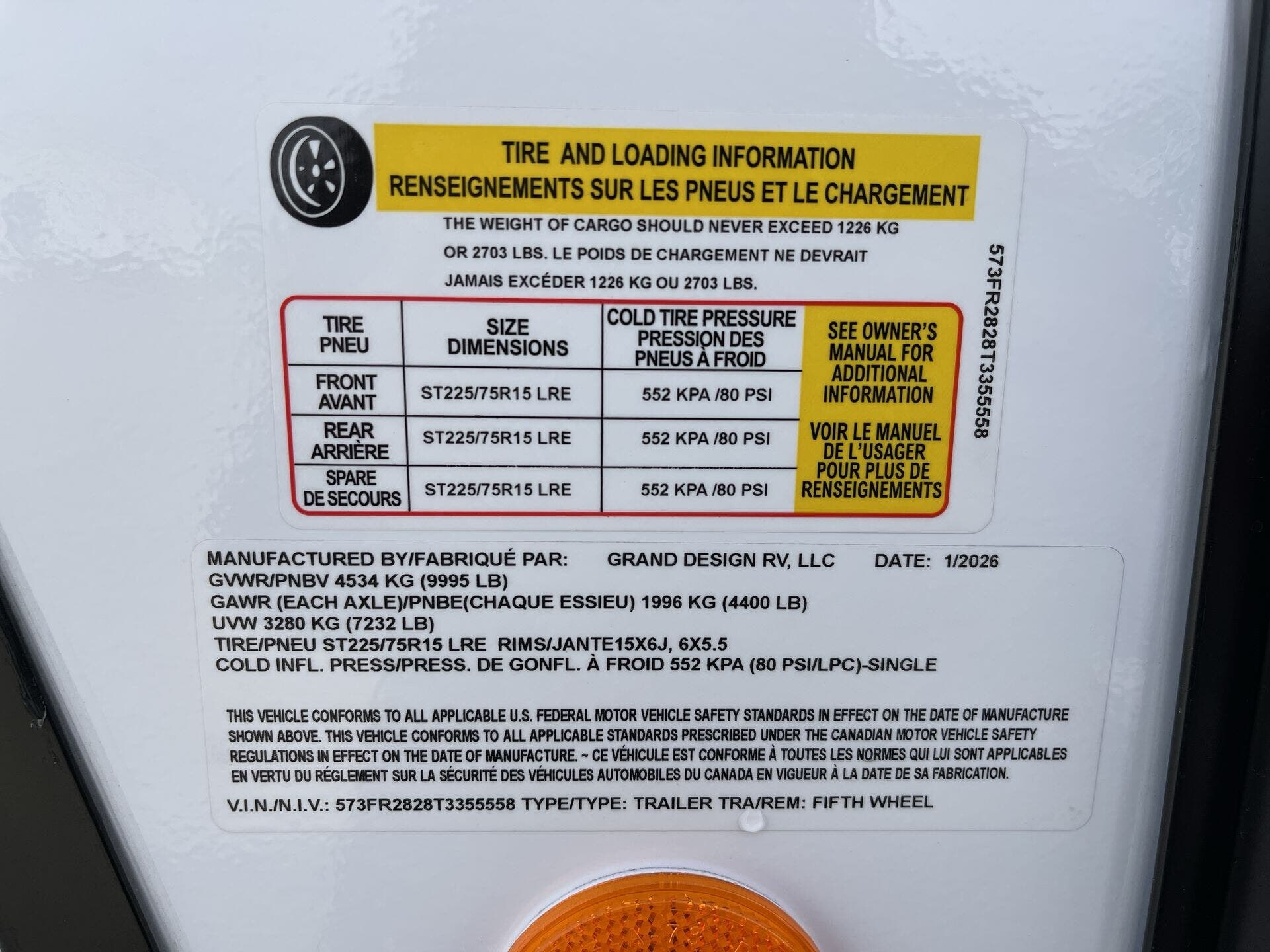 Grand Design Reflection 2026 Fifth Wheel – 26 feet 11 inches long, 8 feet wide, 12 feet 9 inches tall