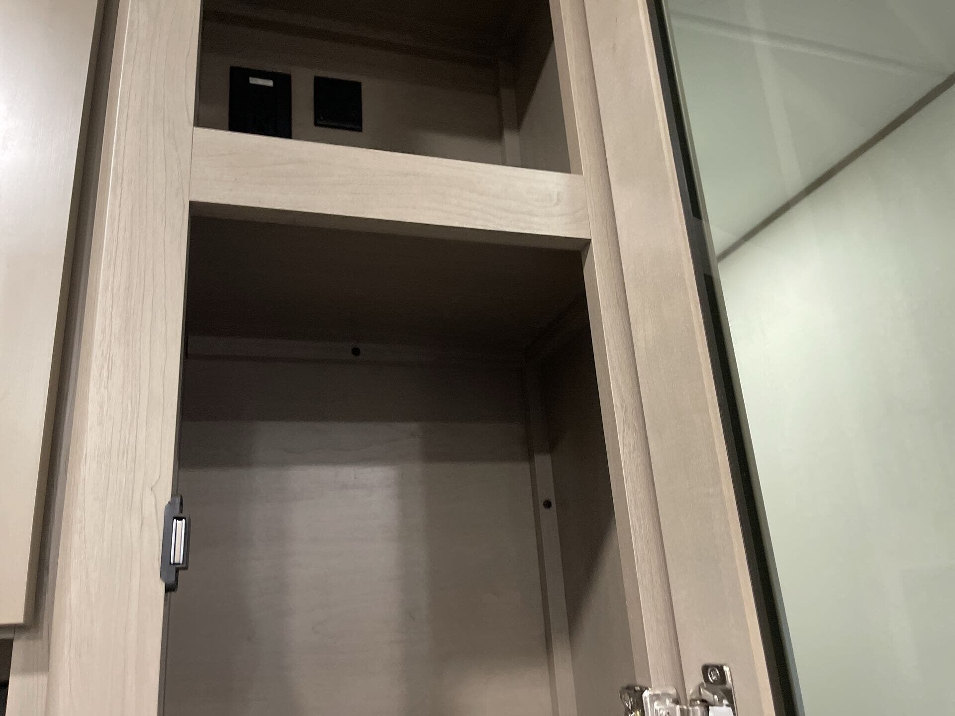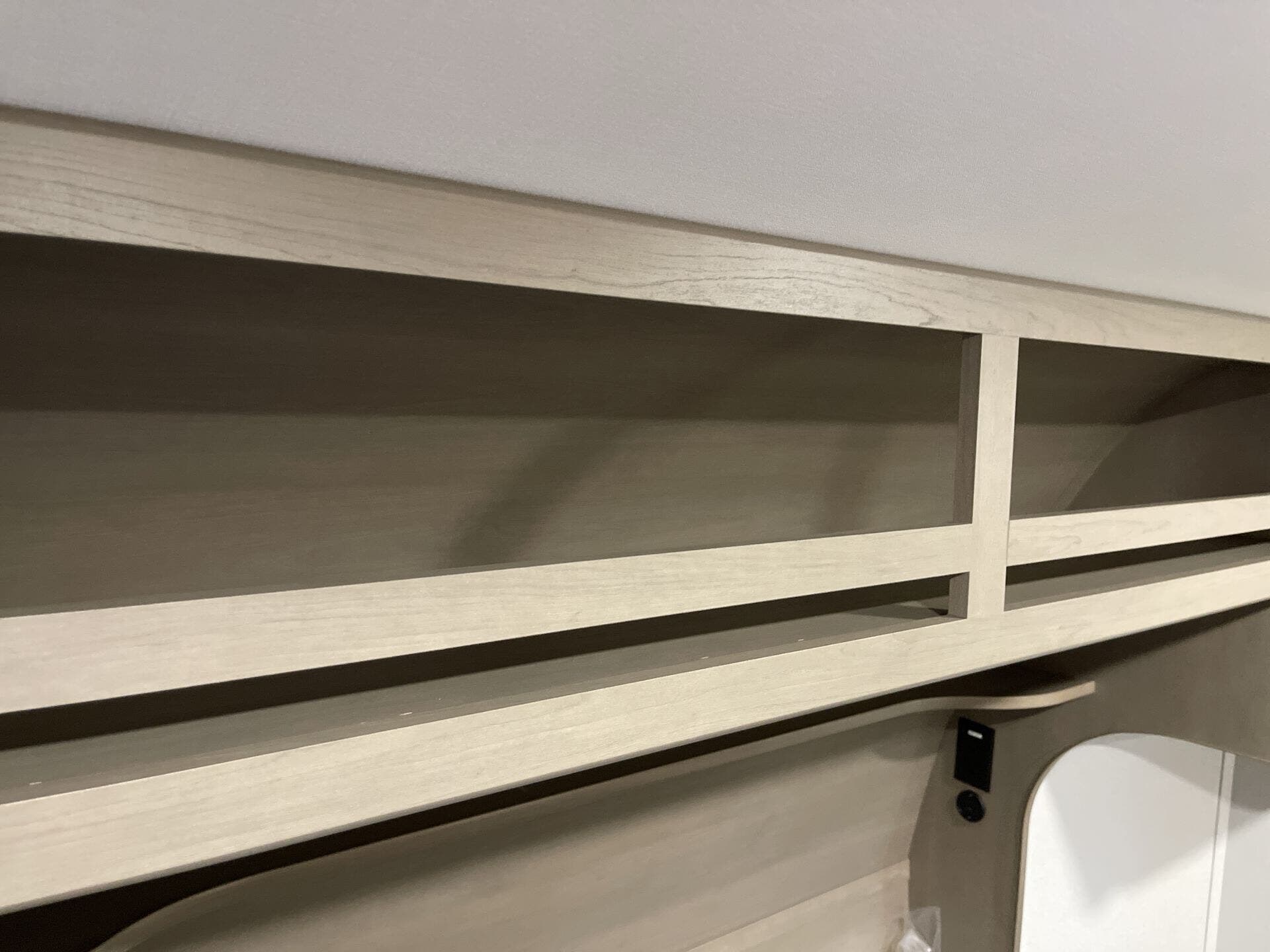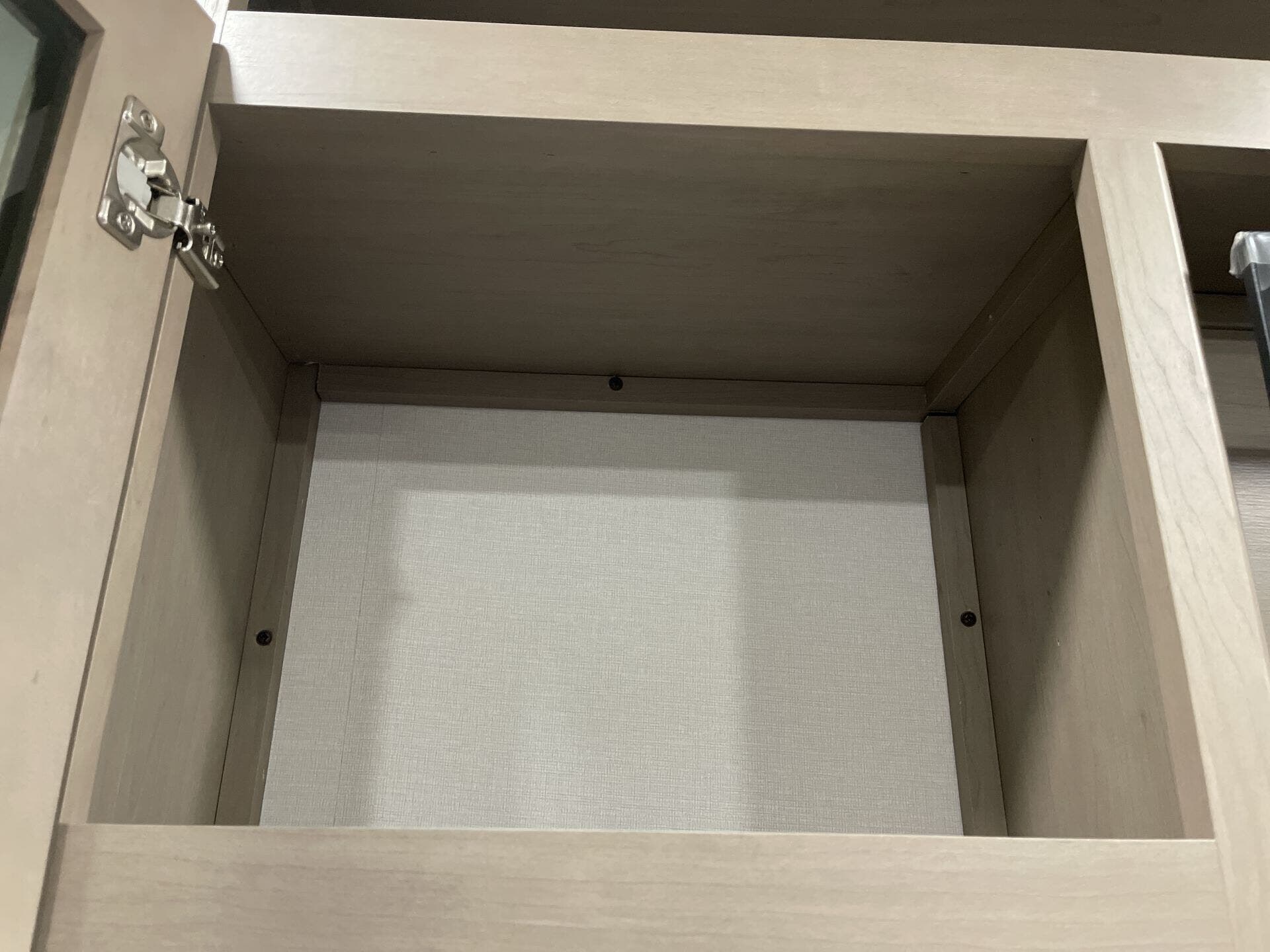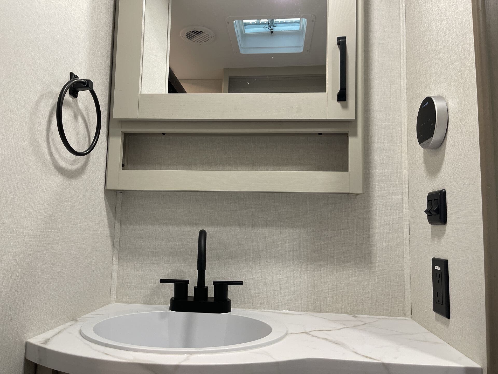 - Storage: Overhead cabinetry and medicine cabinet