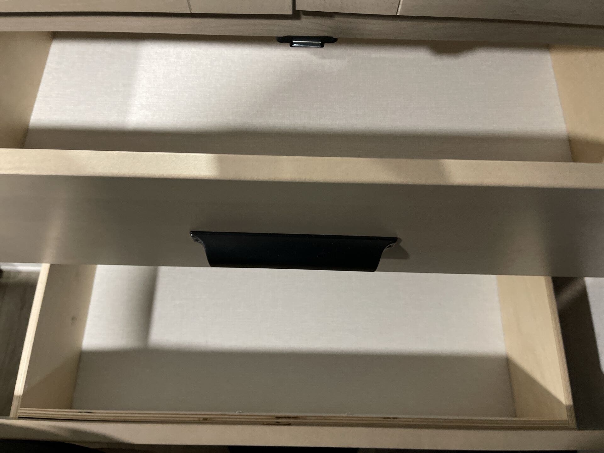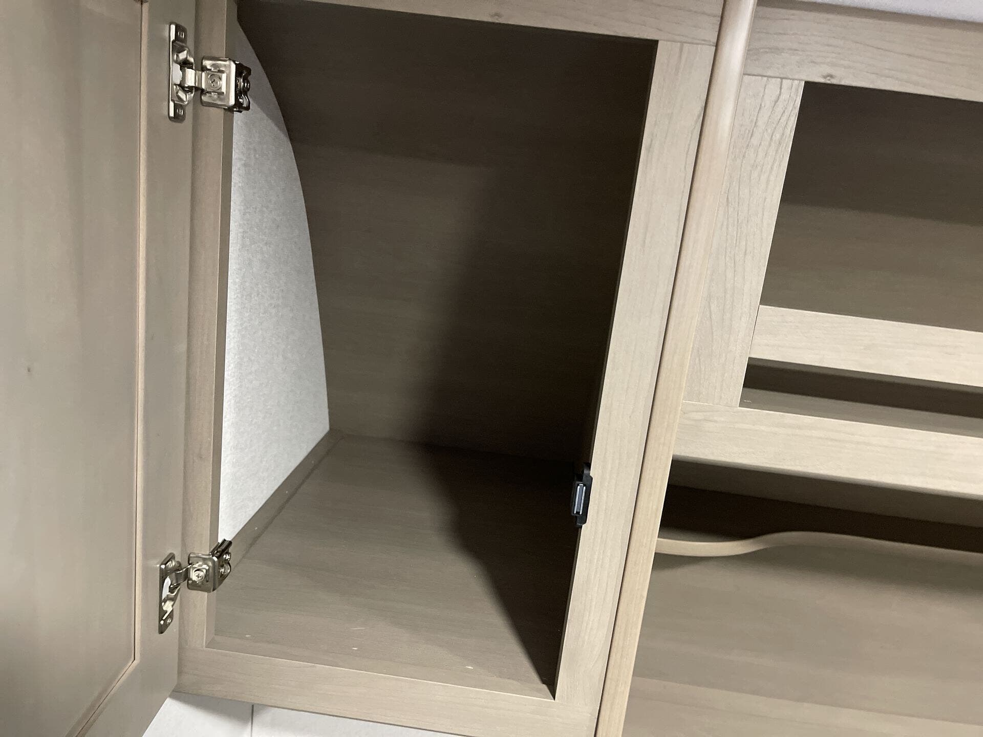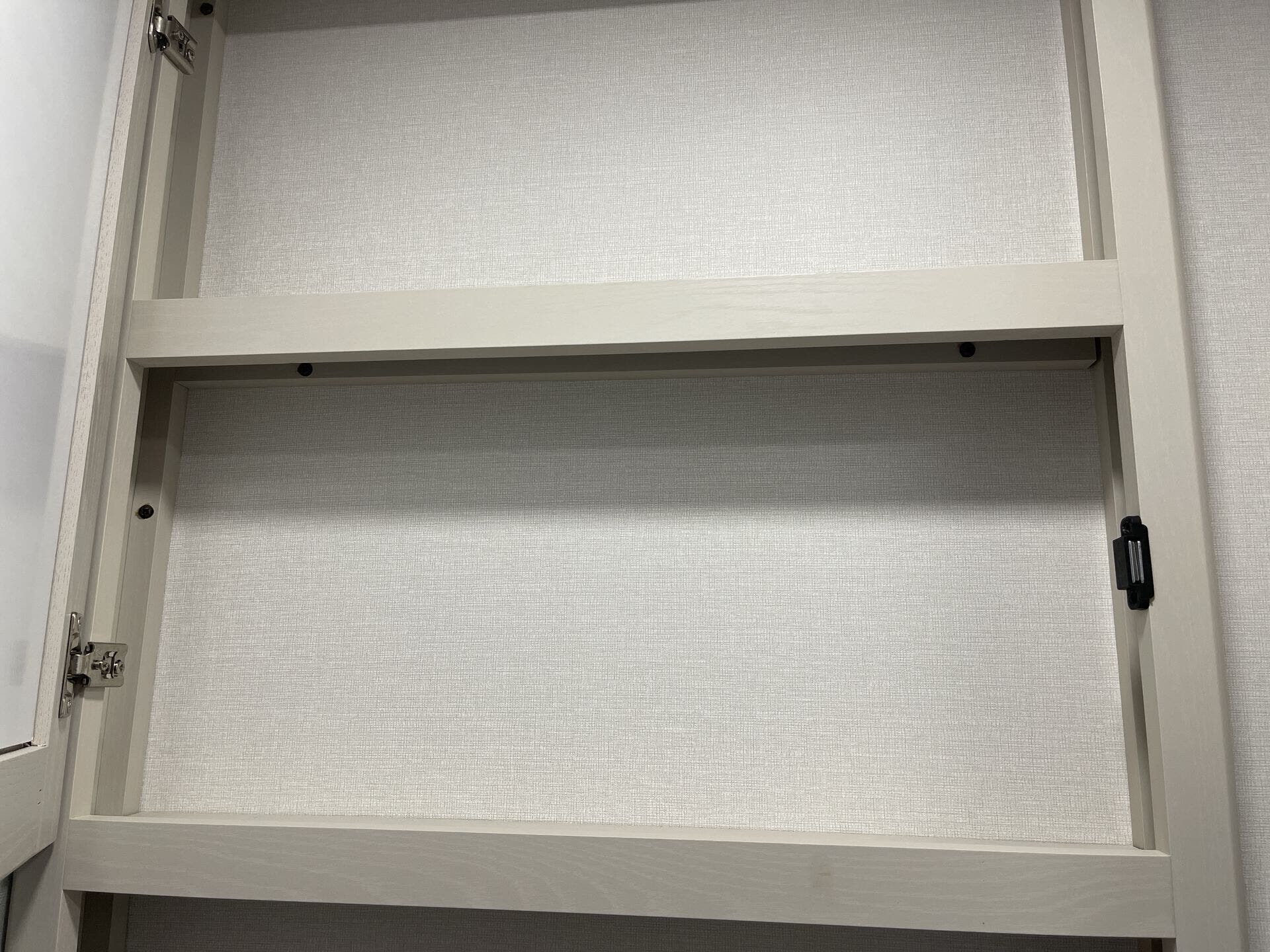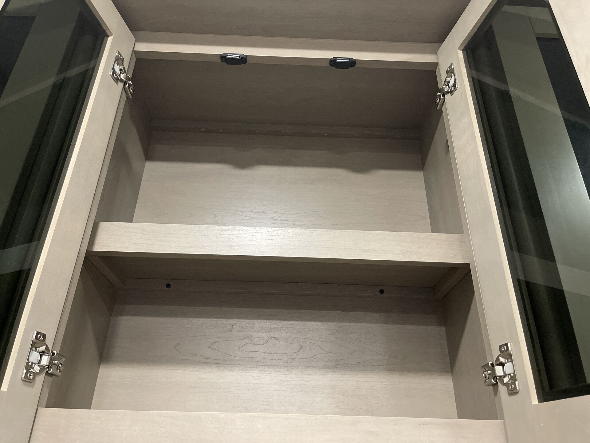 - Storage: Overhead cabinetry and medicine cabinet