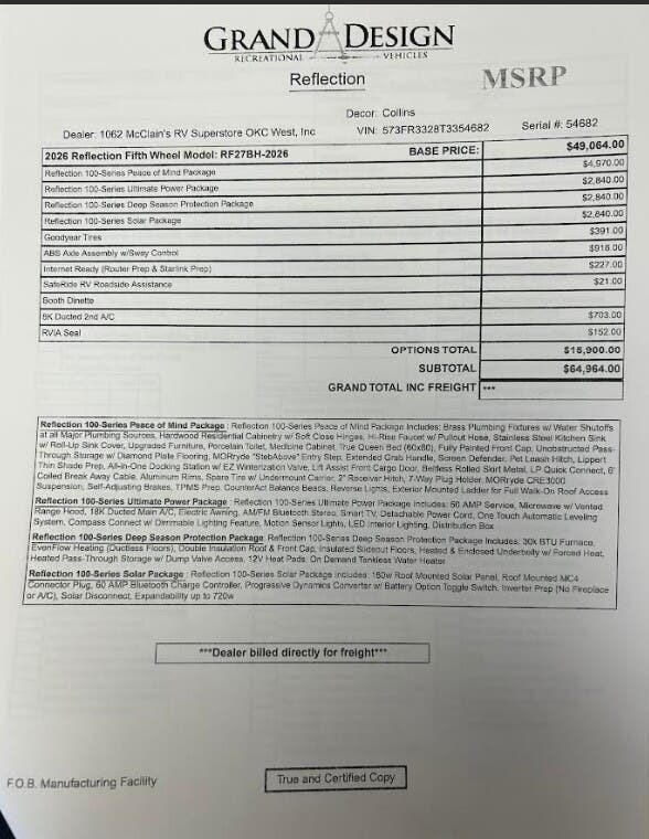 Request More Info on this 2026 Grand Design Reflection 100 27BH Offered for sale by McClain's RV Oklahoma City