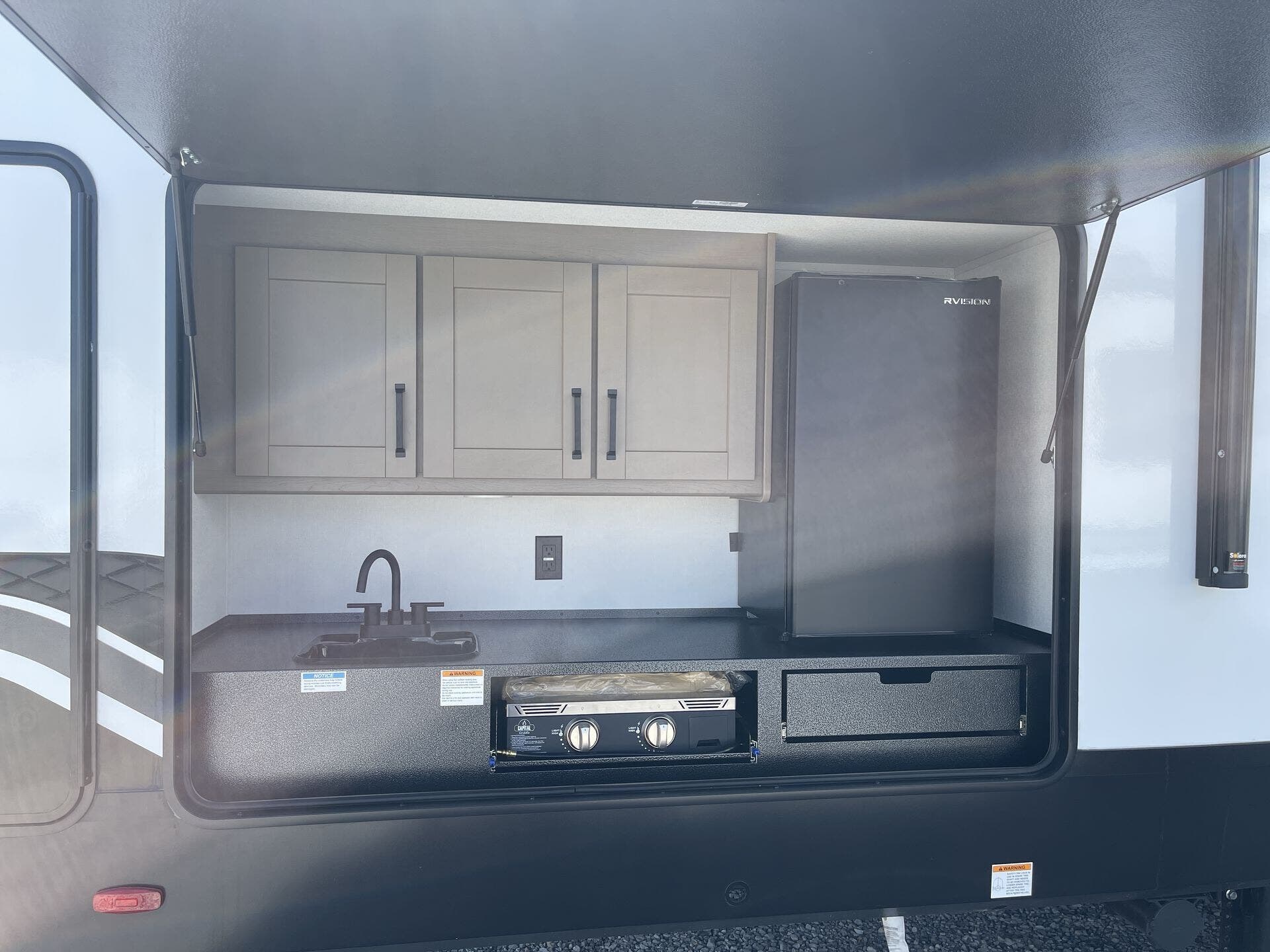 Up front, the master bedroom offers a peaceful retreat with a queen bed, dual wardrobes, and overhead cabinets, while the full bathroom includes a spacious shower, vanity, and linen storage for added convenience. Outside, you’ll find a power awning with LED lighting, an outdoor kitchen, pass-through storage, and a durable build ready for all-season adventures. Combining luxury, functionality, and family-focused design, the 2026 Grand Design Reflection 100 32BH is the perfect fifth wheel for making unforgettable memories on the open road.