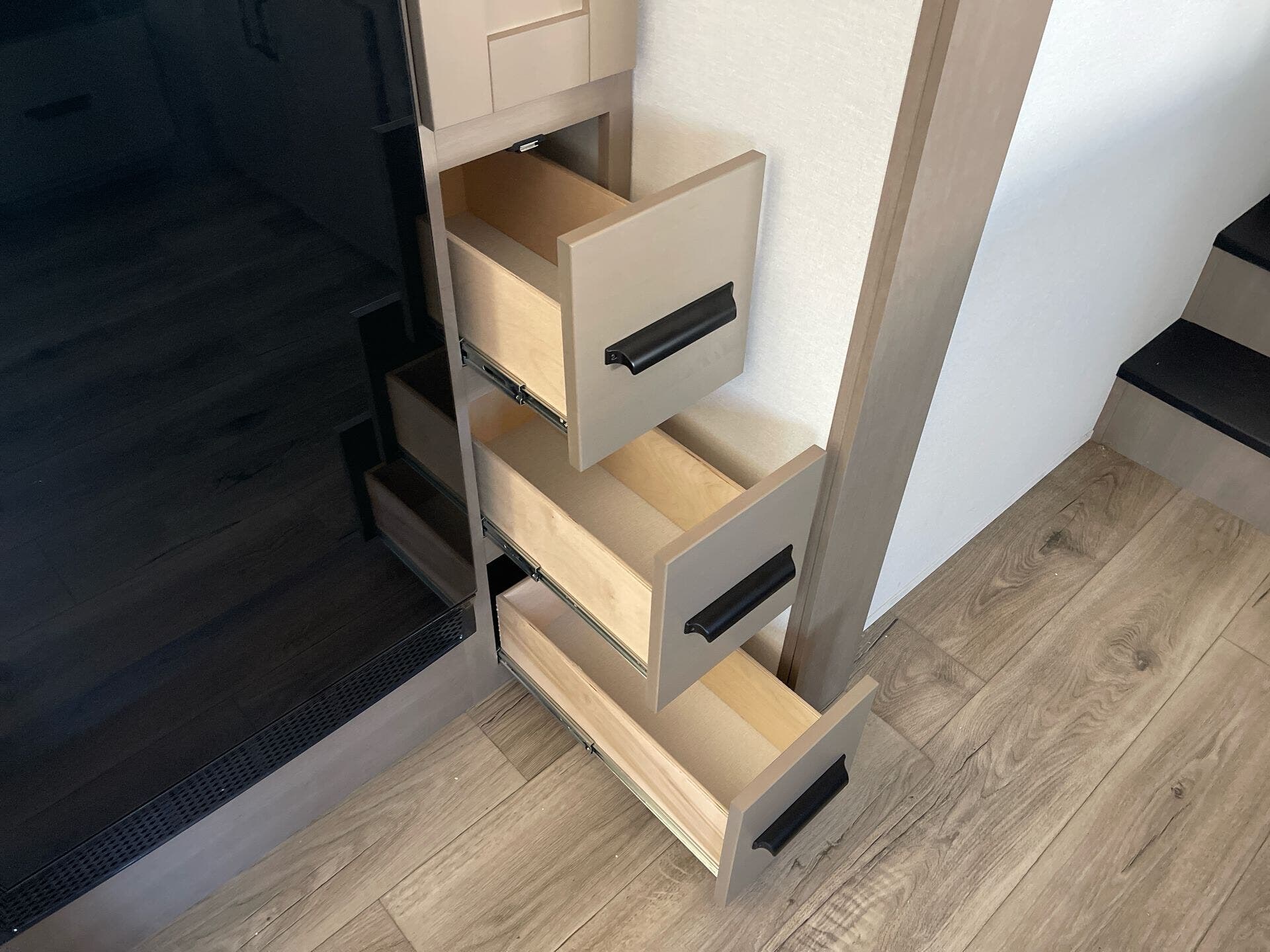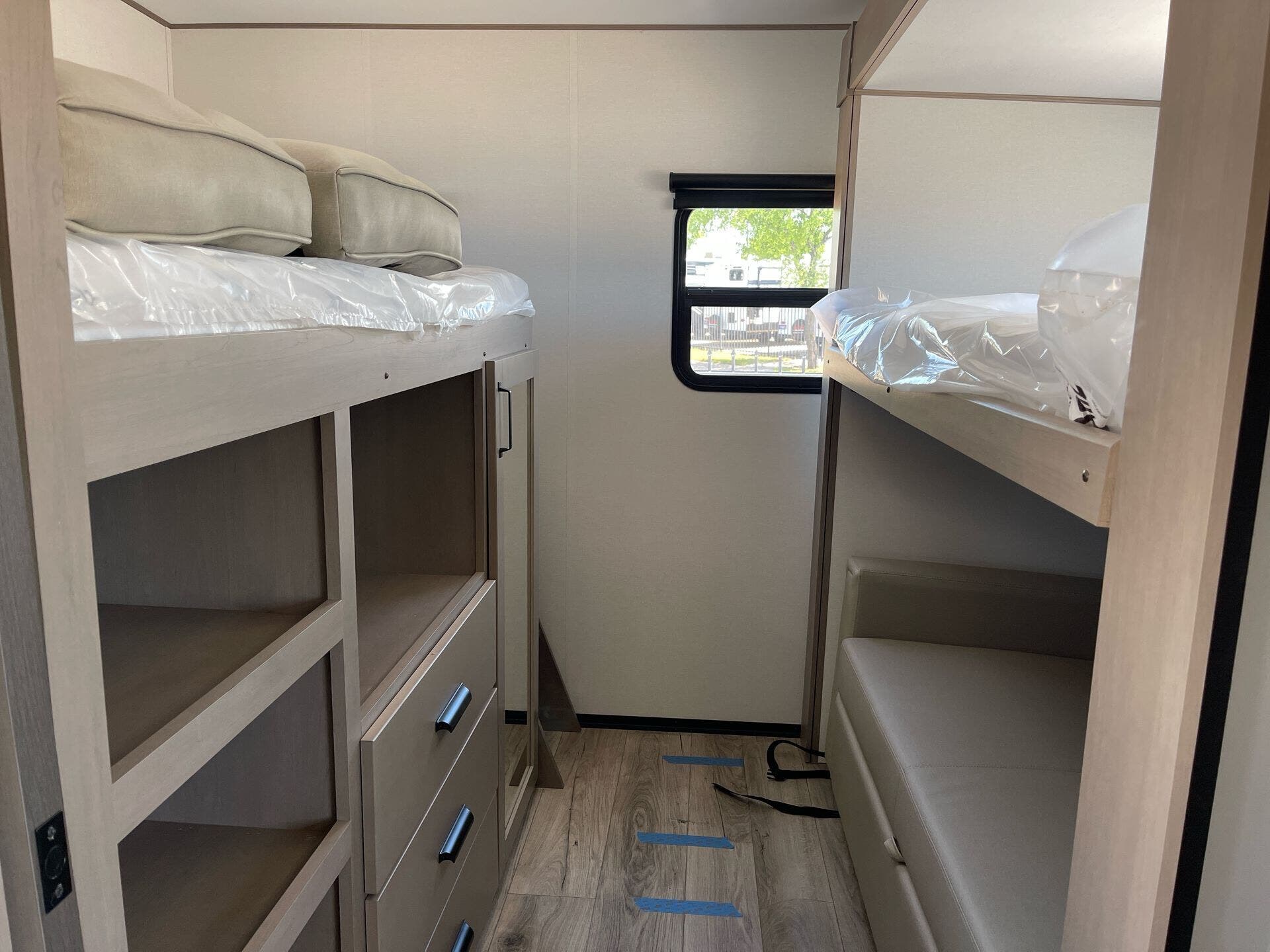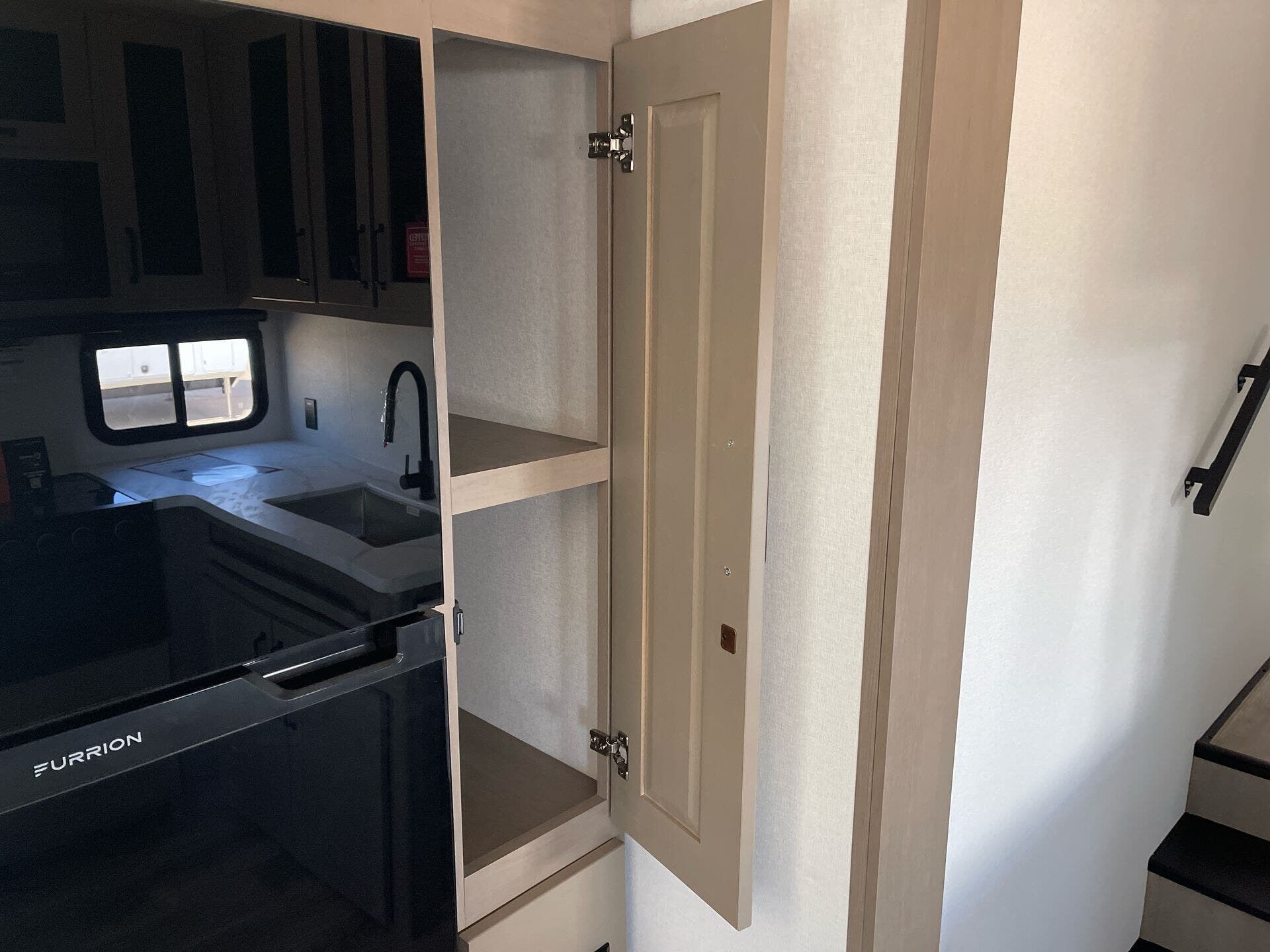 Storage and usability are handled with care. The unit includes pass-thru storage plus a convenient ladder for easy access to the roof deck. Built for convenience, it also offers durable, RV-ready features like hitch support and exterior practicality for travel days.