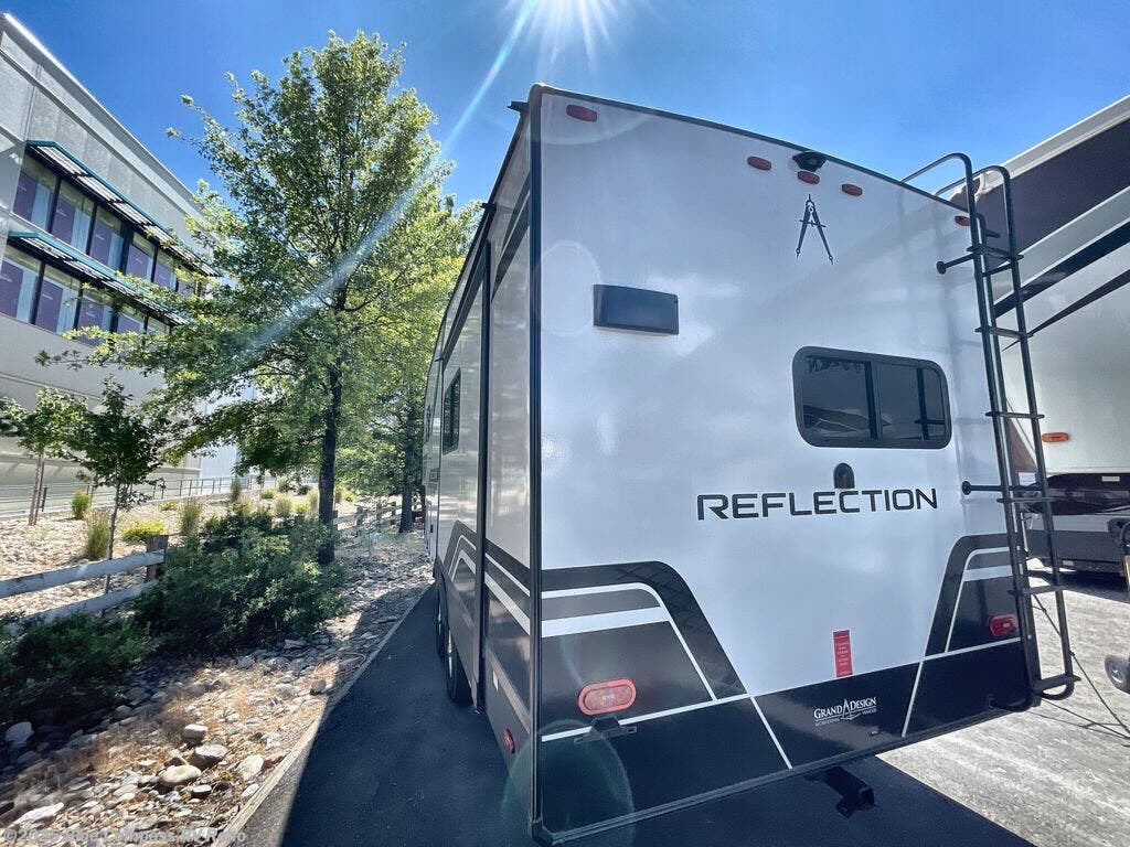Each Reflection 100 Series fifth wheel by Grand Design is affordable and packed with luxury for unforgettable camping memories! The MorRyde CRE3000 suspension system and Goodyear Endurance tires will provide smooth towing from home to campground. And the solar package with a 180W solar panel, 60 Amp charge controller and 12V refrigerator will allow you to camp for longer periods of time and in more locations! A heated and enclosed underbelly with circulating heat is included in the Arctic 4-Seasons Protection Package, along with a double insulated roof and front cap, and thermofoil insulation under the holding tanks so you can camp all year long if you choose. You will appreciate having an on-demand water heater for hot showers after exploring, and the universal all-in-one docking station will let you monitor your RVs tanks levels and functions with ease. These models also include many luxurious interior features, such as premium Congoleum flooring, pleated shades, residential cabinetry, and matte black fixtures and hardware. Don't let the Reflection 100 Series fifth wheels pass you by!