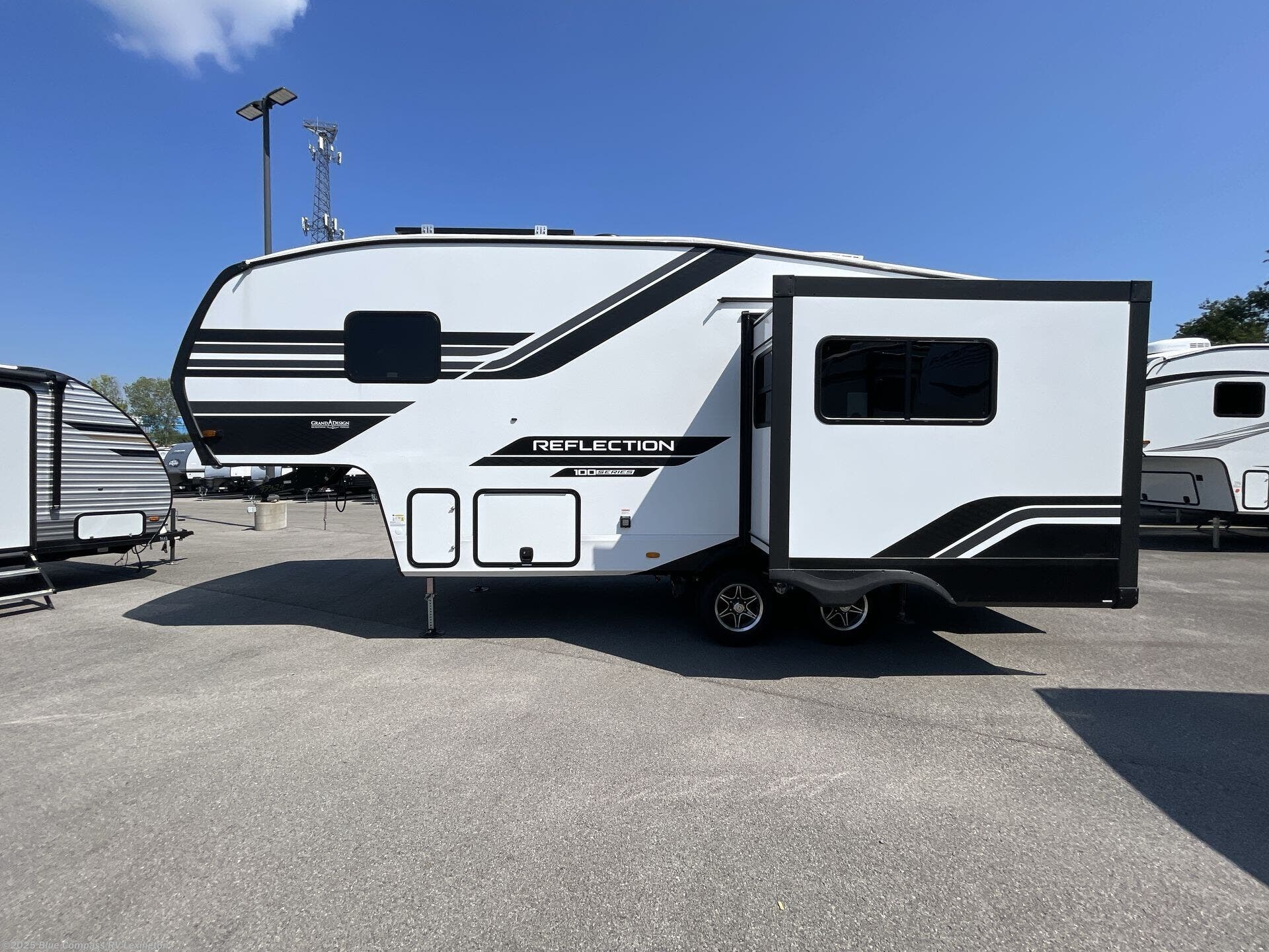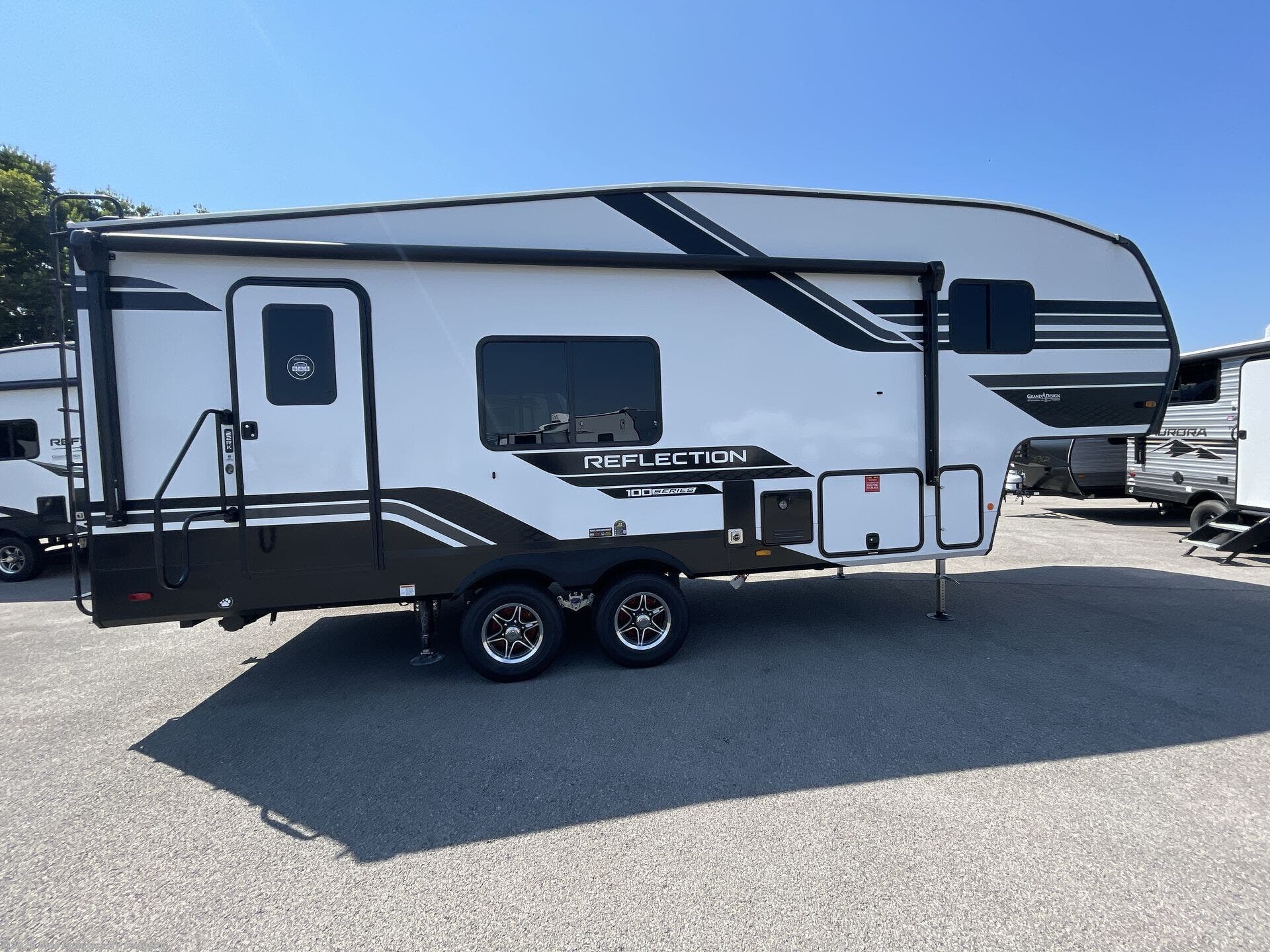 Each Reflection 100 Series fifth wheel by Grand Design is affordable and packed with luxury for unforgettable camping memories! The MorRyde CRE3000 suspension system and Goodyear Endurance tires will provide smooth towing from home to campground. And the solar package with a 180W solar panel, 60 Amp charge controller and 12V refrigerator will allow you to camp for longer periods of time and in more locations! A heated and enclosed underbelly with circulating heat is included in the Arctic 4-Seasons Protection Package, along with a double insulated roof and front cap, and thermofoil insulation under the holding tanks so you can camp all year long if you choose. You will appreciate having an on-demand water heater for hot showers after exploring, and the universal all-in-one docking station will let you monitor your RVs tanks levels and functions with ease. These models also include many luxurious interior features, such as premium Congoleum flooring, pleated shades, residential cabinetry, and matte black fixtures and hardware. Don't let the Reflection 100 Series fifth wheels pass you by!