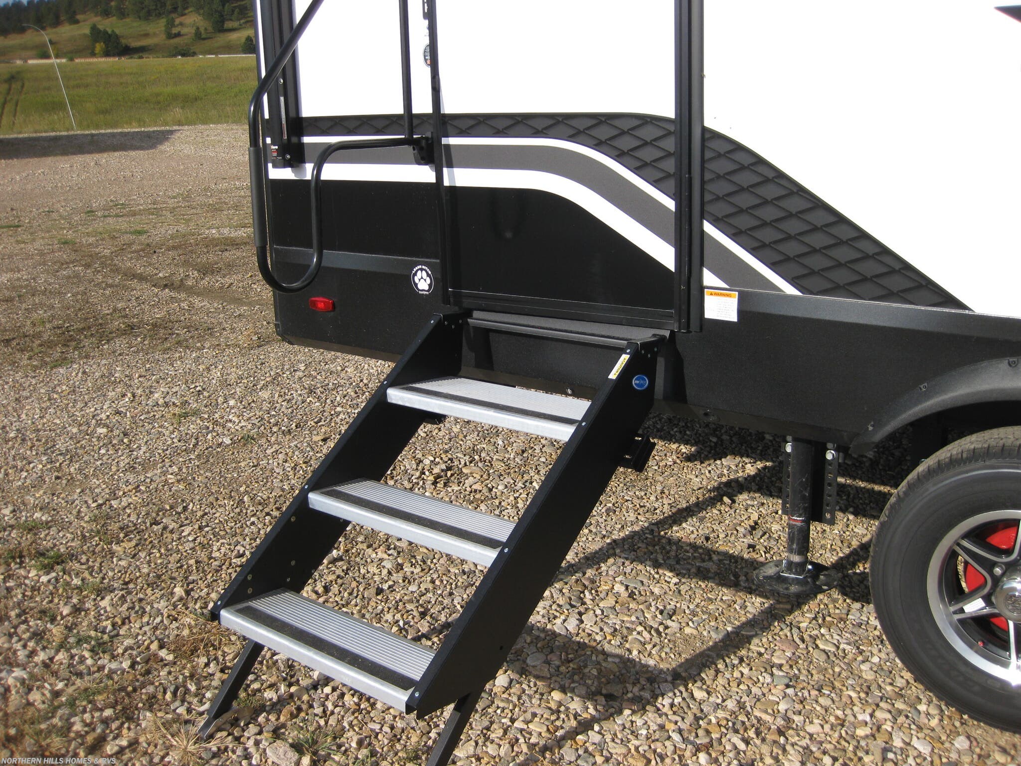 - Hitch and ladder for easy handling and maintenance; Leveling jacks for stable setup