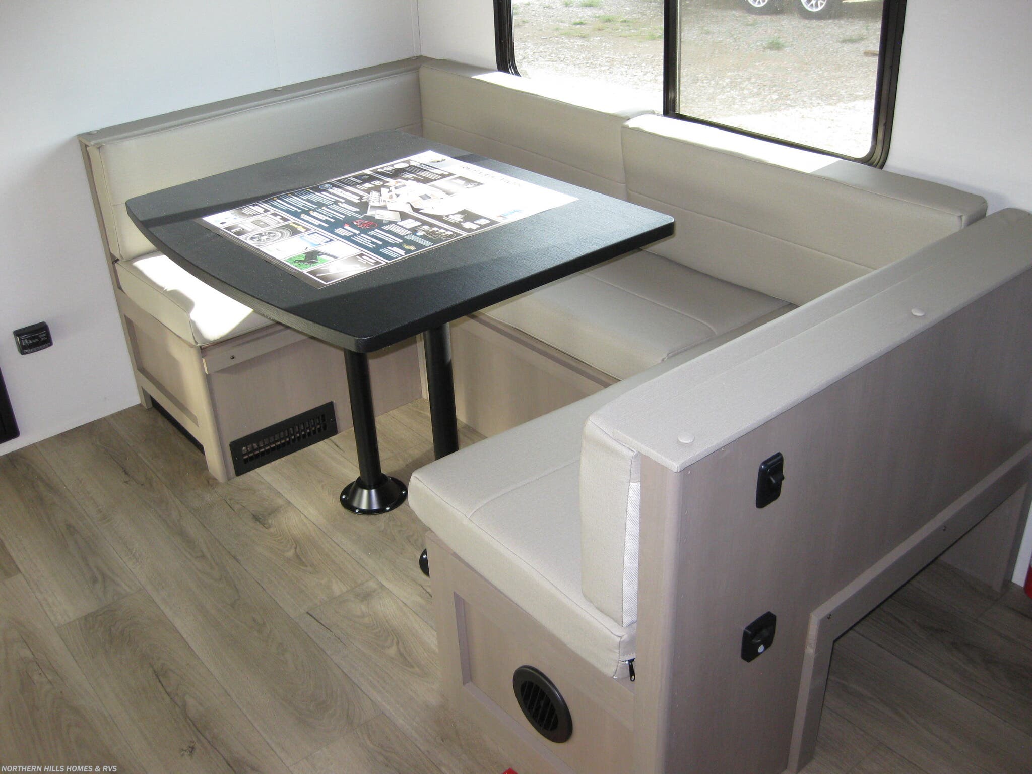 - Booth dinette, Queen bed, and rocker recliner(s) for versatile relaxation
