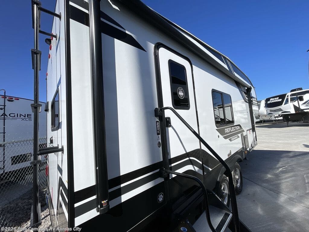 Each Reflection 100 Series fifth wheel by Grand Design is affordable and packed with luxury for unforgettable camping memories! The MorRyde CRE3000 suspension system and Goodyear Endurance tires will provide smooth towing from home to campground. And the solar package with a 180W solar panel, 60 Amp charge controller and 12V refrigerator will allow you to camp for longer periods of time and in more locations! A heated and enclosed underbelly with circulating heat is included in the Arctic 4-Seasons Protection Package, along with a double insulated roof and front cap, and thermofoil insulation under the holding tanks so you can camp all year long if you choose. You will appreciate having an on-demand water heater for hot showers after exploring, and the universal all-in-one docking station will let you monitor your RVs tanks levels and functions with ease. These models also include many luxurious interior features, such as premium Congoleum flooring, pleated shades, residential cabinetry, and matte black fixtures and hardware. Don't let the Reflection 100 Series fifth wheels pass you by!