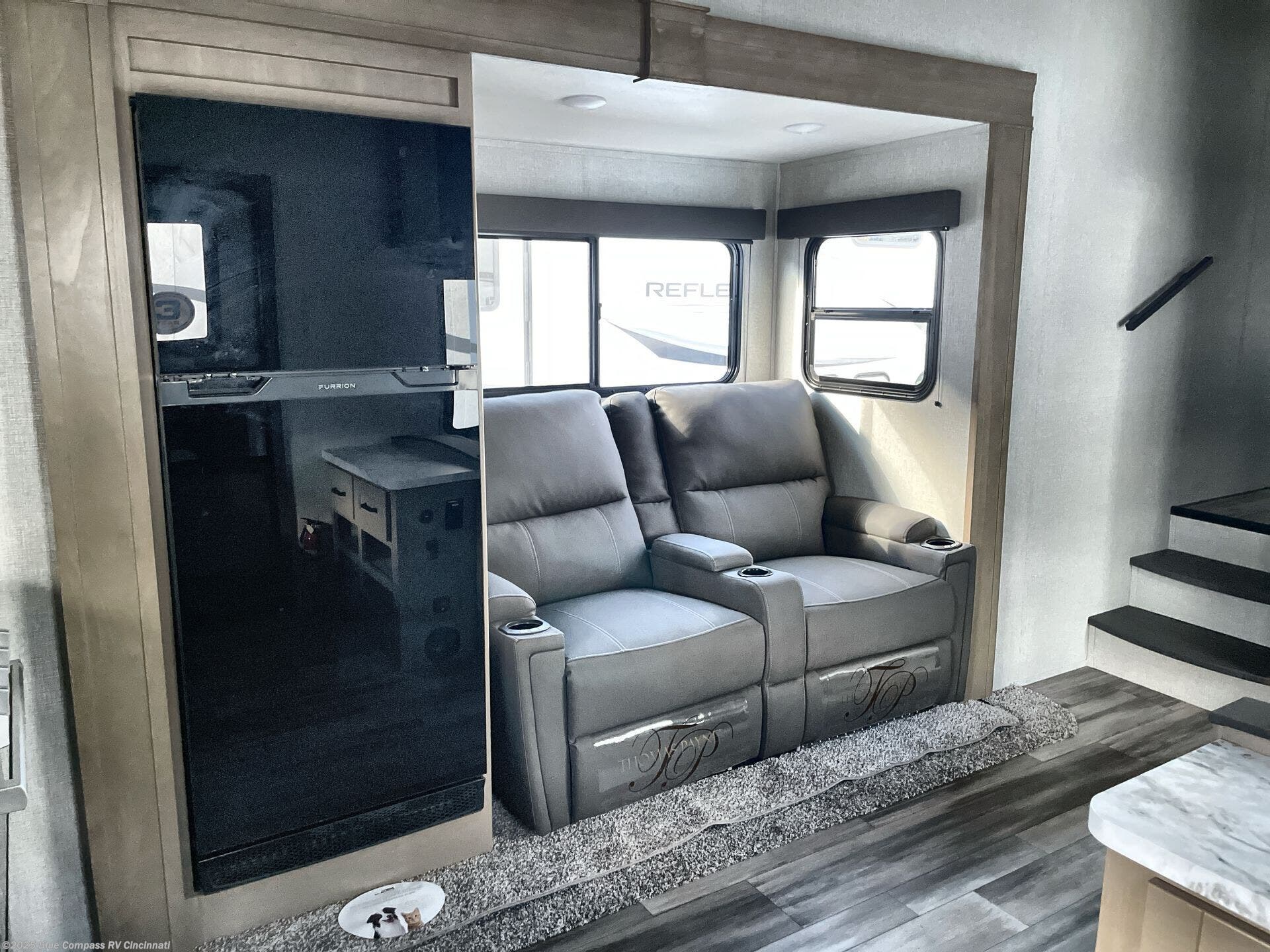 Each Reflection 100 Series fifth wheel by Grand Design is affordable and packed with luxury for unforgettable camping memories! The MorRyde CRE3000 suspension system and Goodyear Endurance tires will provide smooth towing from home to campground. And the solar package with a 180W solar panel, 60 Amp charge controller and 12V refrigerator will allow you to camp for longer periods of time and in more locations! A heated and enclosed underbelly with circulating heat is included in the Arctic 4-Seasons Protection Package, along with a double insulated roof and front cap, and thermofoil insulation under the holding tanks so you can camp all year long if you choose. You will appreciate having an on-demand water heater for hot showers after exploring, and the universal all-in-one docking station will let you monitor your RVs tanks levels and functions with ease. These models also include many luxurious interior features, such as premium Congoleum flooring, pleated shades, residential cabinetry, and matte black fixtures and hardware. Don't let the Reflection 100 Series fifth wheels pass you by!