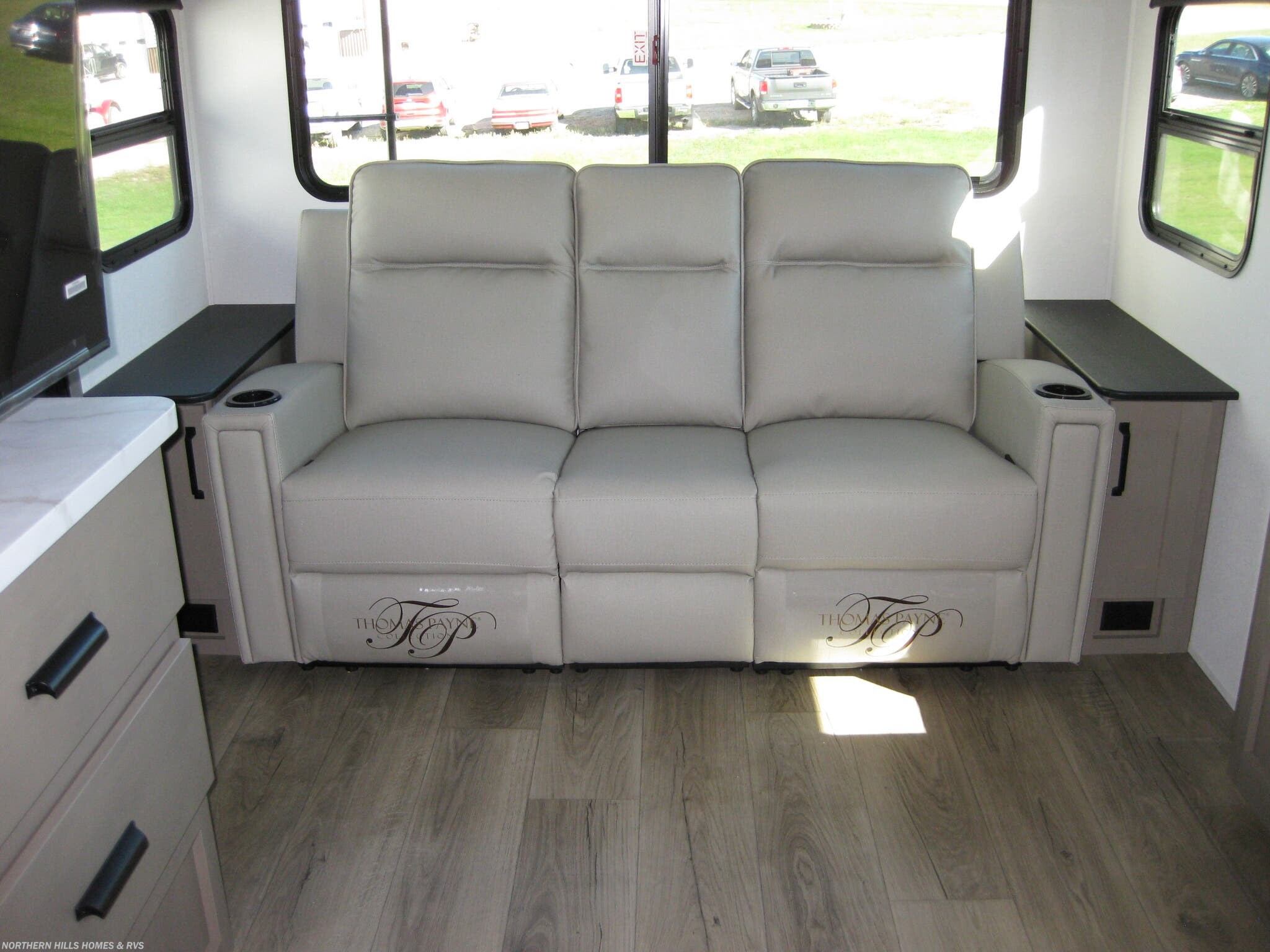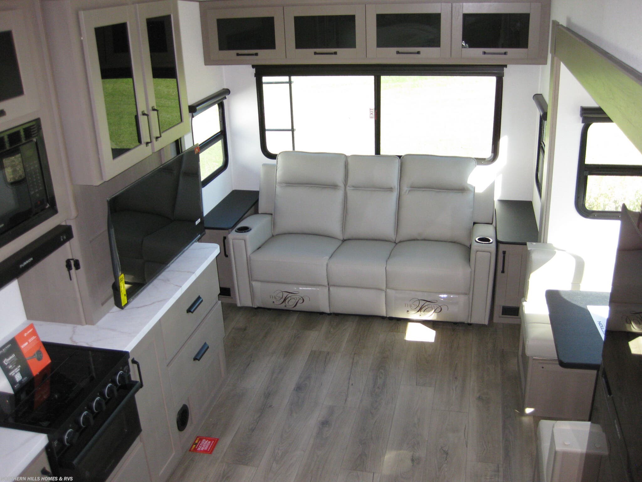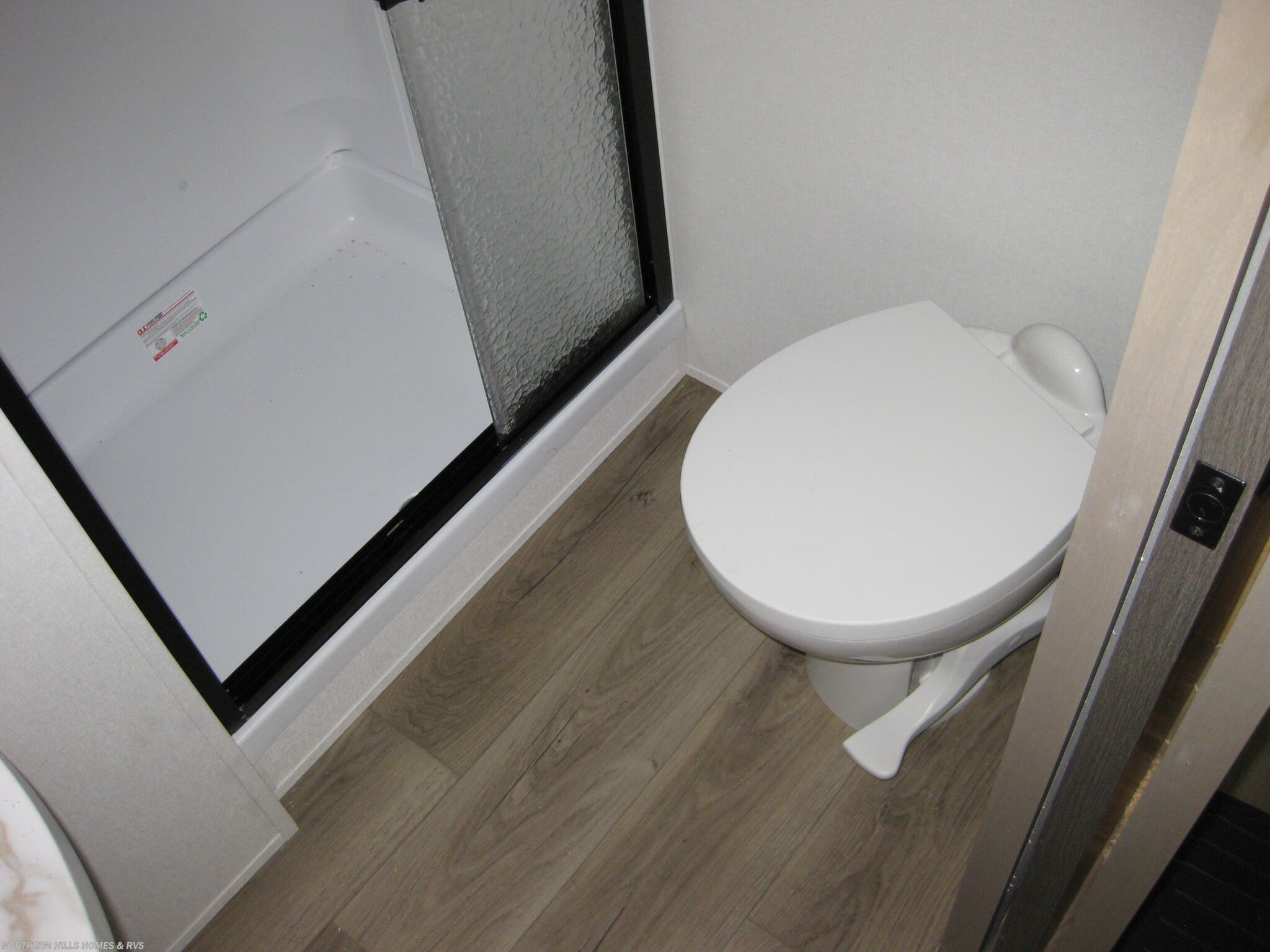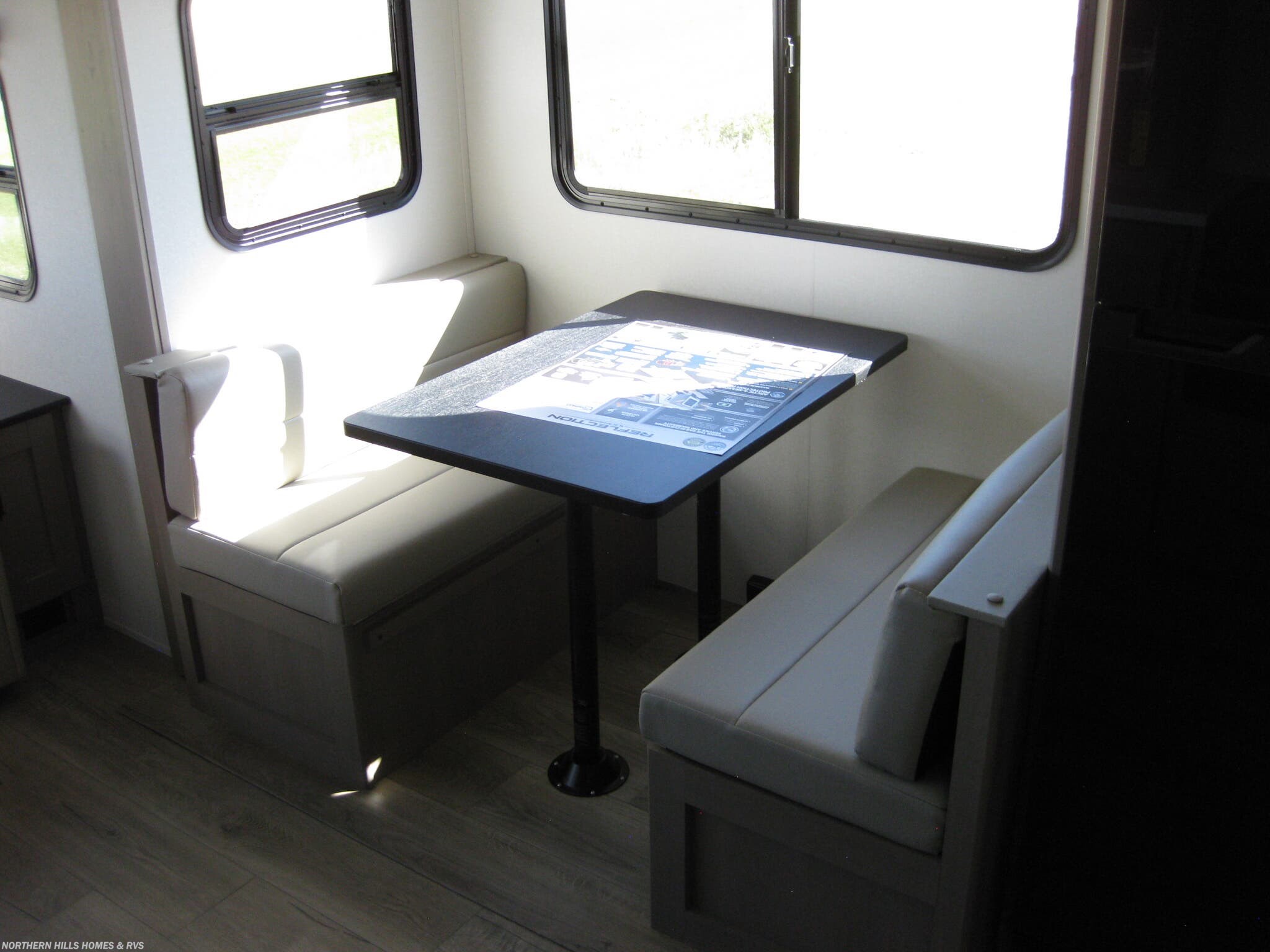 The 24RL floorplan centers on a welcoming rear living area with thoughtful seating and abundant natural light. Inside, you’ll find a queen bed for restful nights, a rocke? recliner, and a free-standing dinette with chairs that add a touch of residential elegance. A well-appointed kitchen includes a microwave, oven, stove top burner, and a full refrigerator to handle family meals on the go. Plenty of storage options and medicine cabinet space keep essentials organized, while the shower and toilet create a convenient full bathroom setup for extended trips.