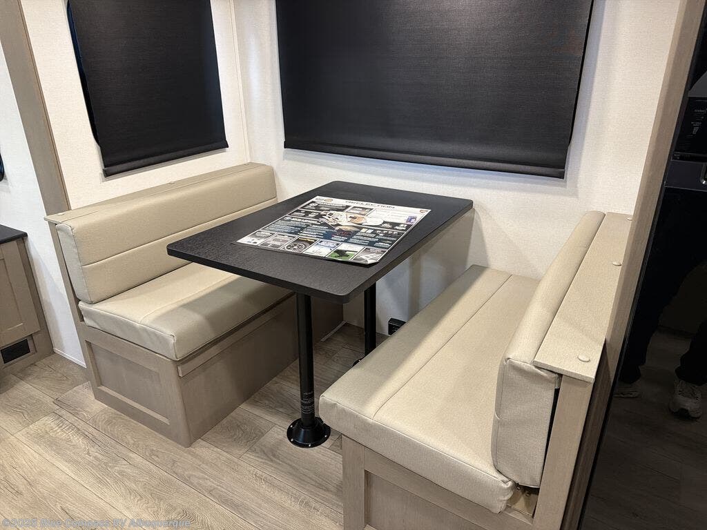 This is the perfect couple's trailer with a space for an overnight guest or two little ones on the booth dinette. You can switch out this dinette for an optional swivel dinette as well, and the standard theater seating can be replaced by an optional trundle bed if you need more sleeping space. A 40" HDTV will keep you entertained when the weather isn't cooperating, and you can whip up your best meals in the full kitchen. And a 19' power awning will provide shade if you choose to take your plate outdoors! The spacious full bath will let you clean up each day, and you'll feel right at home in the front private bedroom with a queen bed!