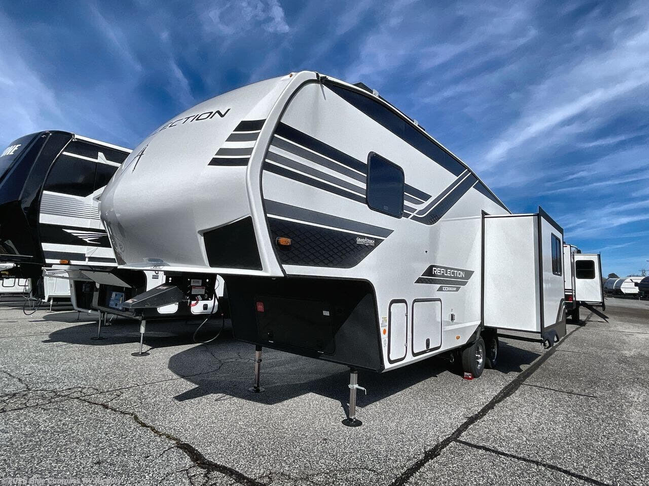 Each Reflection 100 Series fifth wheel by Grand Design is affordable and packed with luxury for unforgettable camping memories! The MorRyde CRE3000 suspension system and Goodyear Endurance tires will provide smooth towing from home to campground. And the solar package with a 180W solar panel, 60 Amp charge controller and 12V refrigerator will allow you to camp for longer periods of time and in more locations! A heated and enclosed underbelly with circulating heat is included in the Arctic 4-Seasons Protection Package, along with a double insulated roof and front cap, and thermofoil insulation under the holding tanks so you can camp all year long if you choose. You will appreciate having an on-demand water heater for hot showers after exploring, and the universal all-in-one docking station will let you monitor your RVs tanks levels and functions with ease. These models also include many luxurious interior features, such as premium Congoleum flooring, pleated shades, residential cabinetry, and matte black fixtures and hardware. Don't let the Reflection 100 Series fifth wheels pass you by!