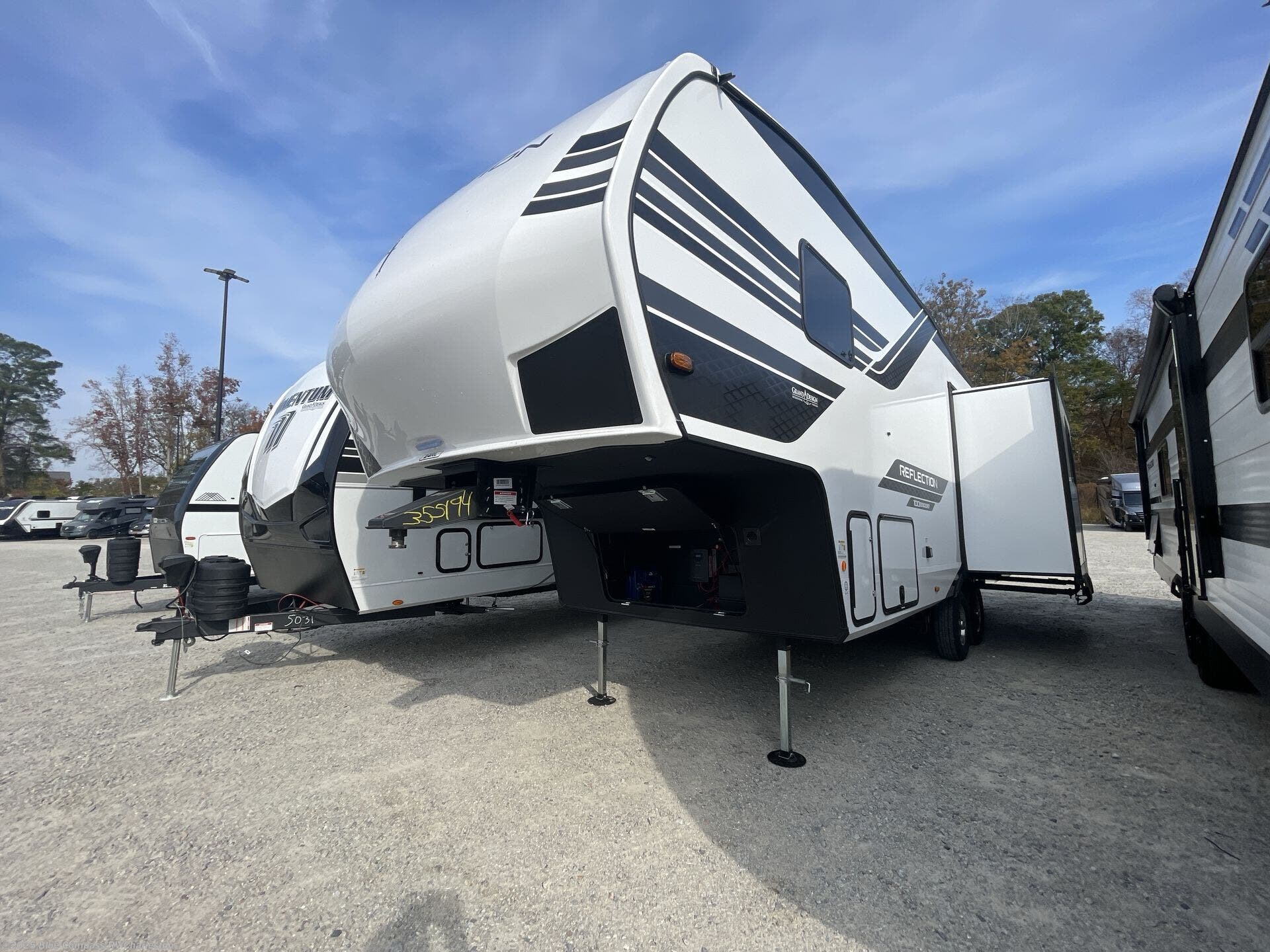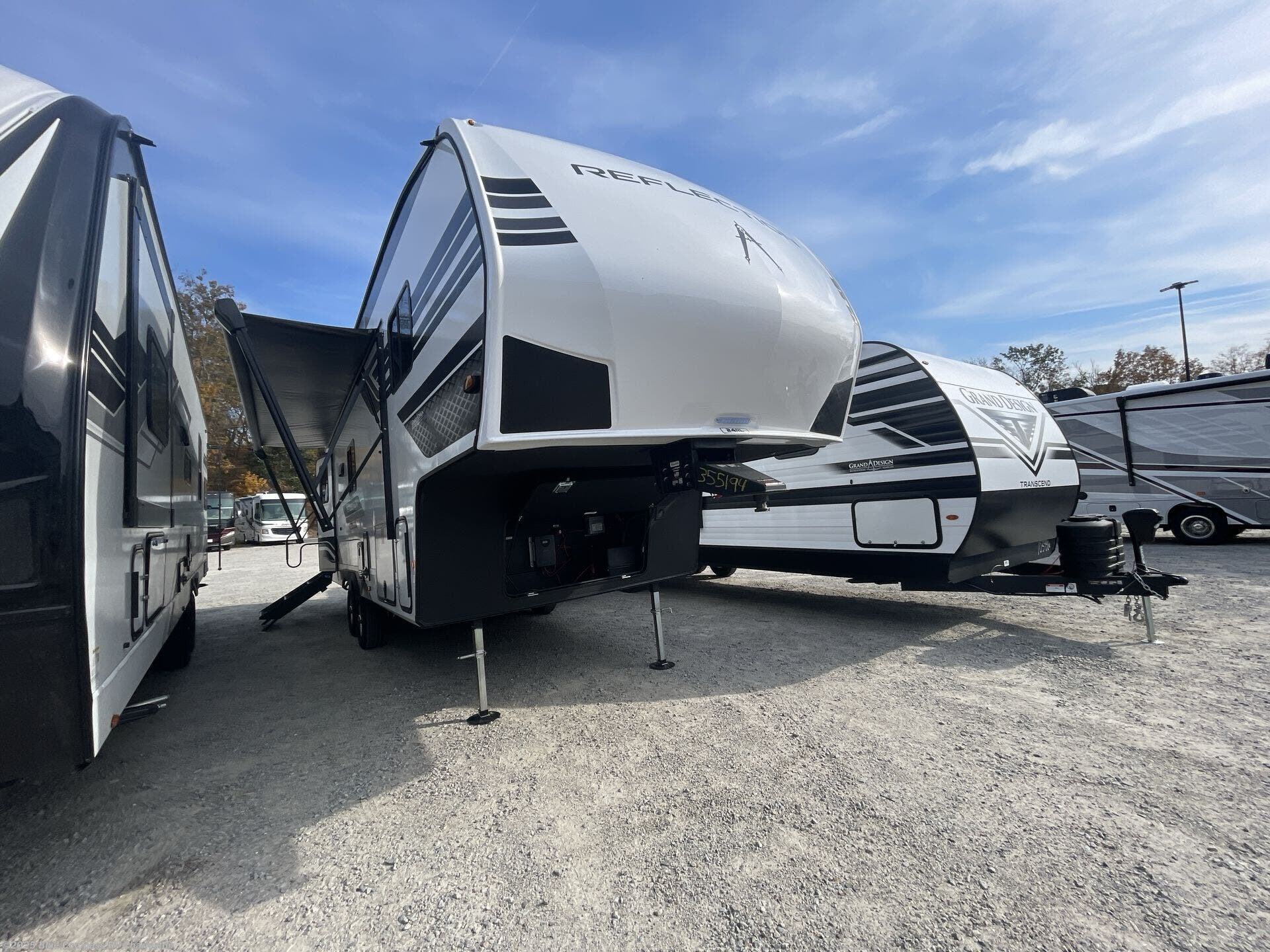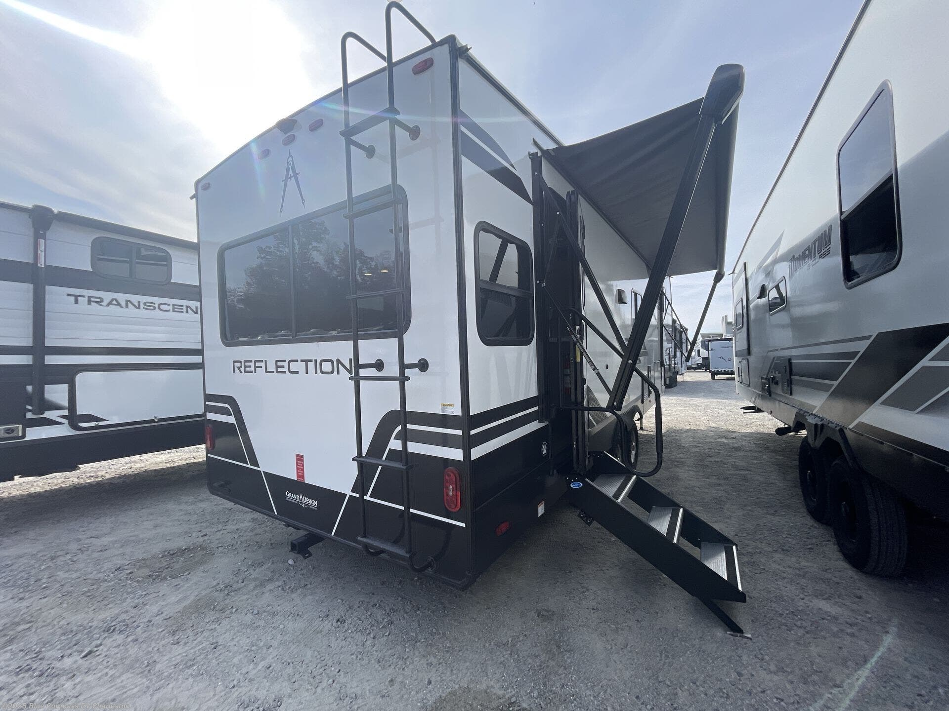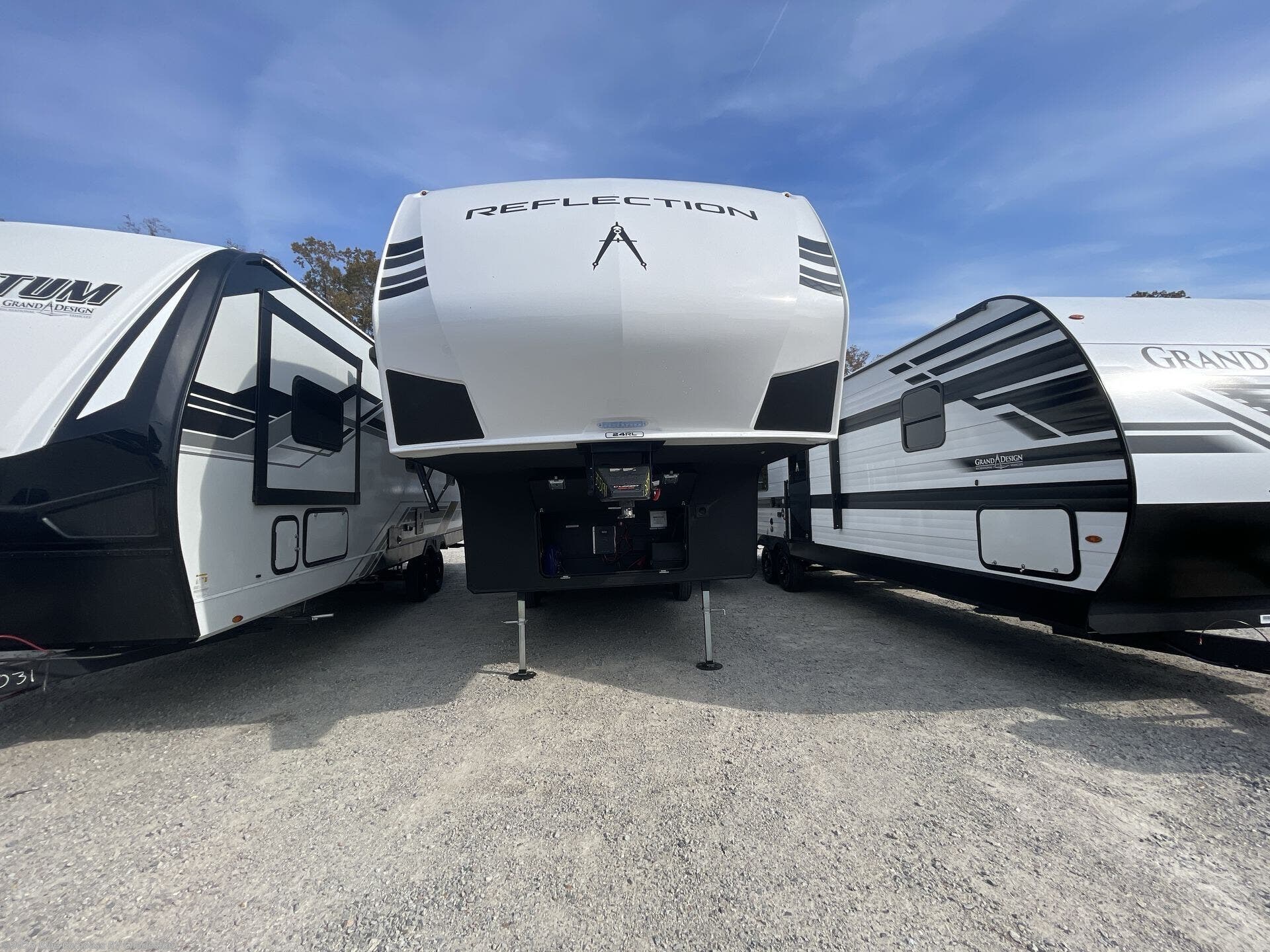 Each Reflection 100 Series fifth wheel by Grand Design is affordable and packed with luxury for unforgettable camping memories! The MorRyde CRE3000 suspension system and Goodyear Endurance tires will provide smooth towing from home to campground. And the solar package with a 180W solar panel, 60 Amp charge controller and 12V refrigerator will allow you to camp for longer periods of time and in more locations! A heated and enclosed underbelly with circulating heat is included in the Arctic 4-Seasons Protection Package, along with a double insulated roof and front cap, and thermofoil insulation under the holding tanks so you can camp all year long if you choose. You will appreciate having an on-demand water heater for hot showers after exploring, and the universal all-in-one docking station will let you monitor your RVs tanks levels and functions with ease. These models also include many luxurious interior features, such as premium Congoleum flooring, pleated shades, residential cabinetry, and matte black fixtures and hardware. Don't let the Reflection 100 Series fifth wheels pass you by!